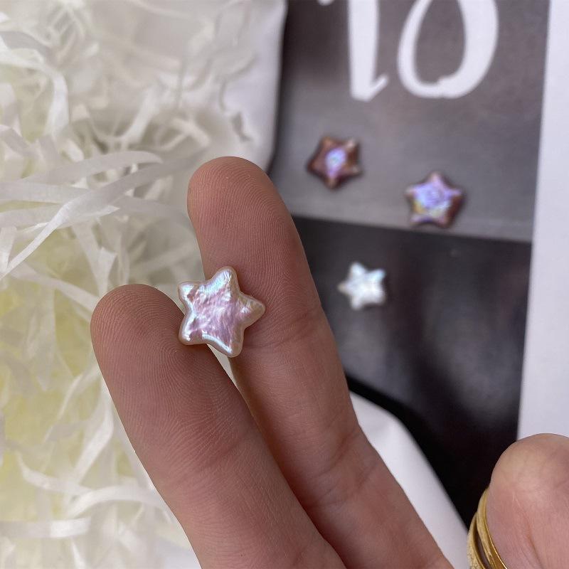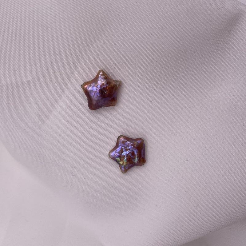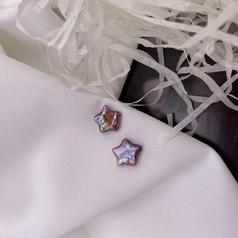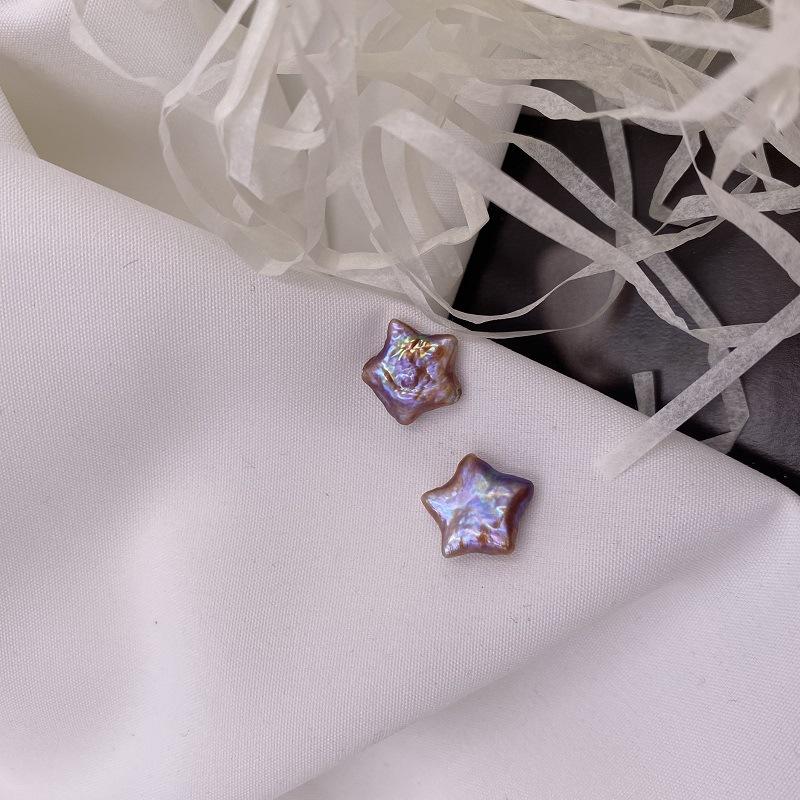 Baroque star earrings-White, Baroque Pentagram earrings-purple