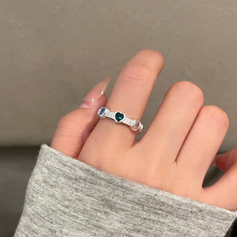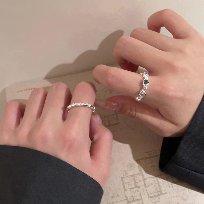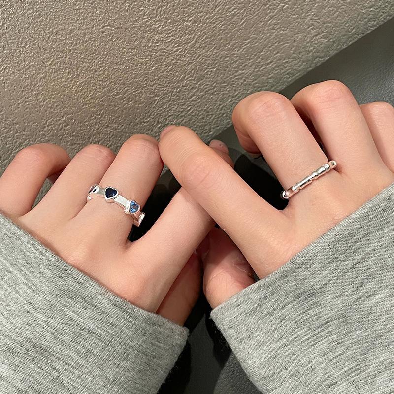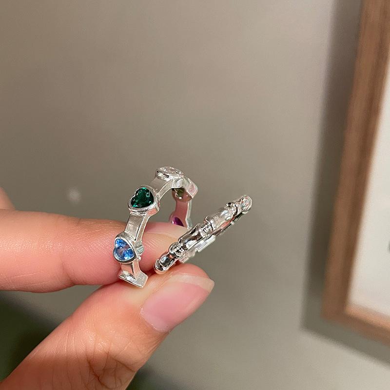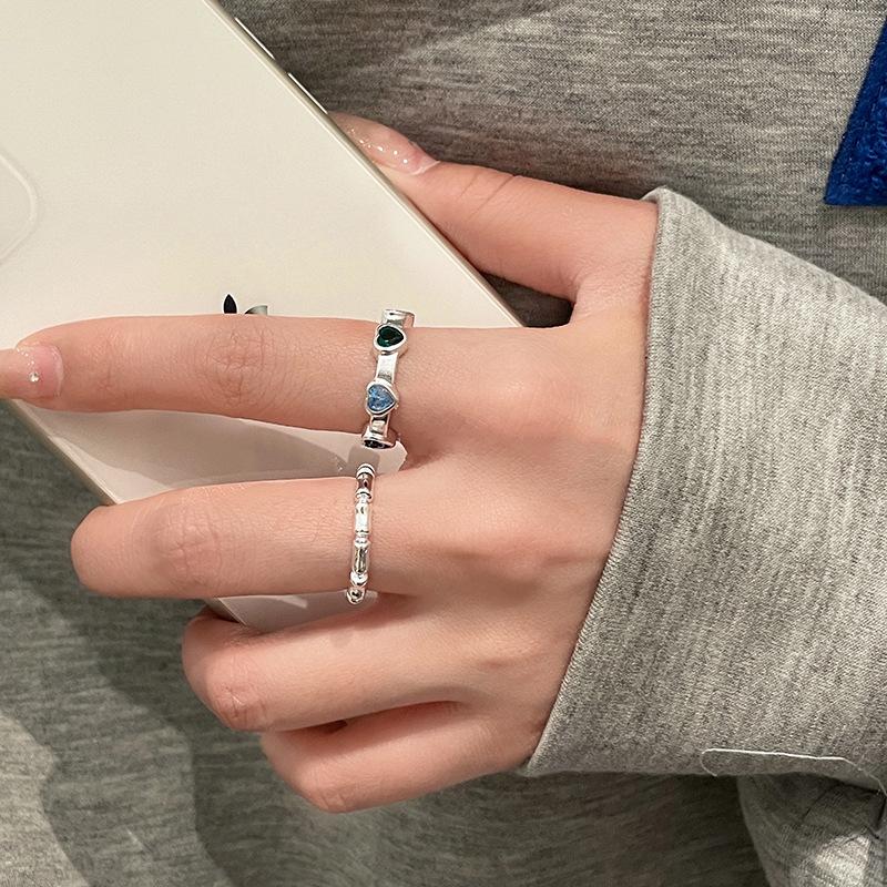 Set de Anillos de Bambú con Zircón de Corazón de Lujo Ligero para Mujer, Anillo Abierto para el Dedo Índice con Diseño de Nicho Minimalista Moderno y Único