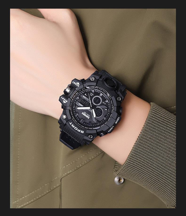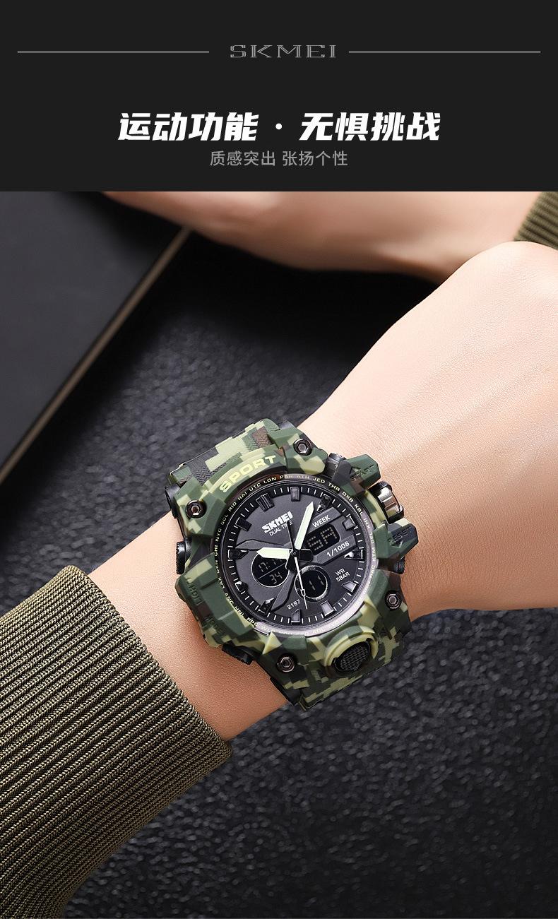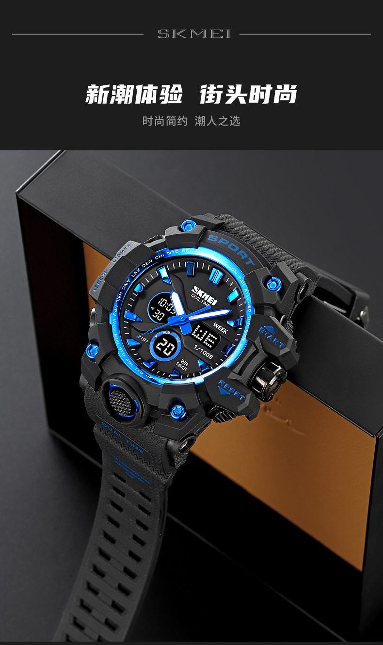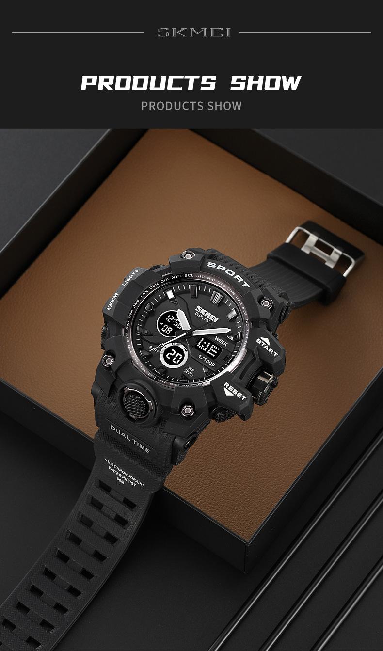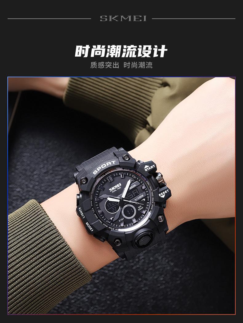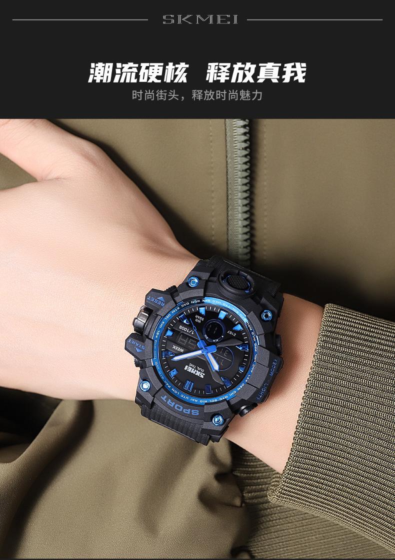 Reloj electrónico Skmei de doble movimiento y doble pantalla, para deportes al aire libre, resistente al agua, para hombre.