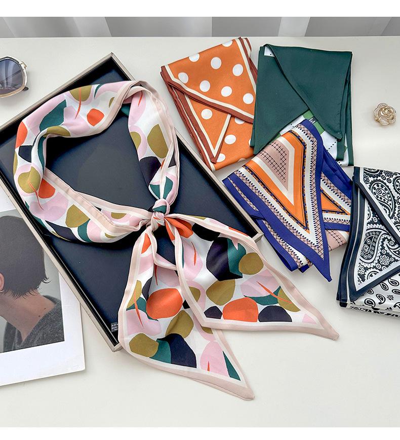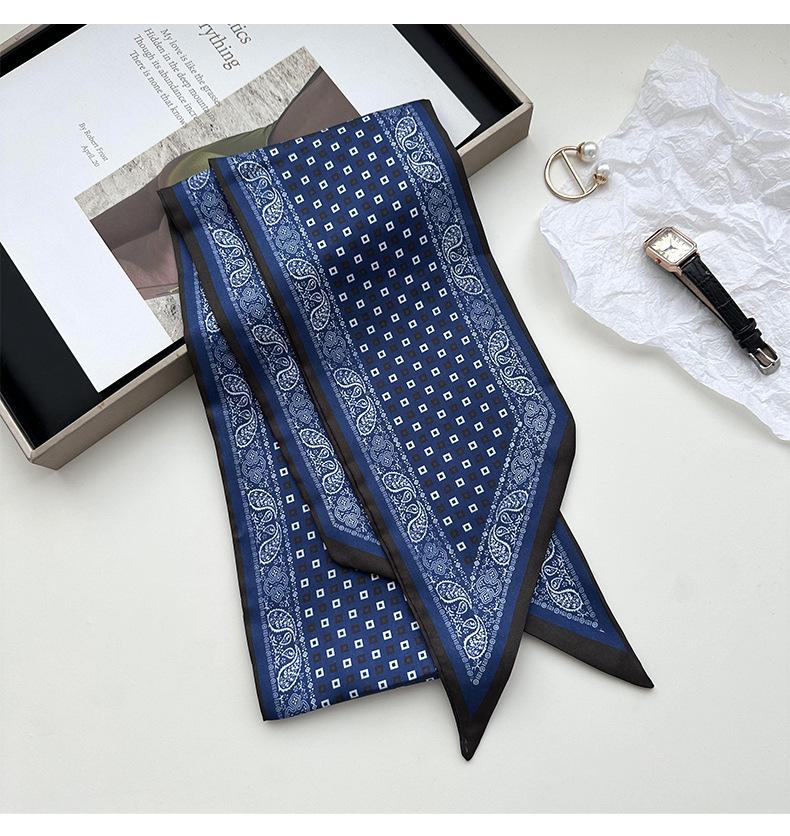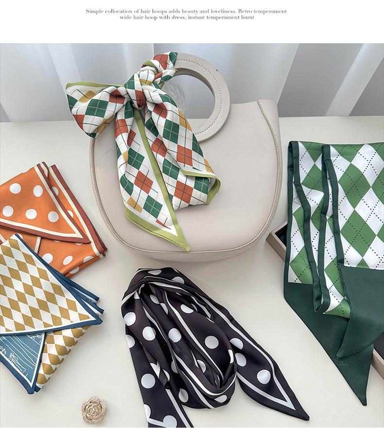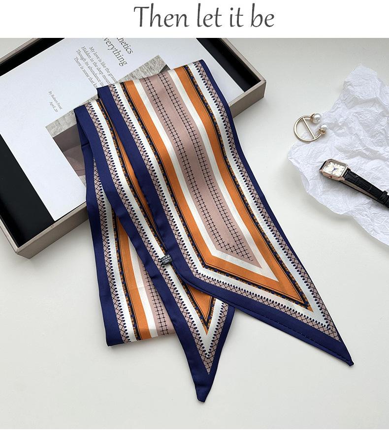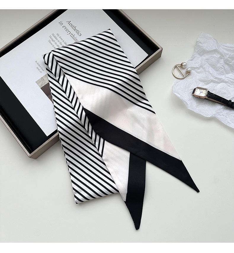 Pañuelo de seda pequeño estilo coreano para mujer, con cinta decorativa que combina con todo, para atar el pelo, pañuelo largo de seda de doble cara.