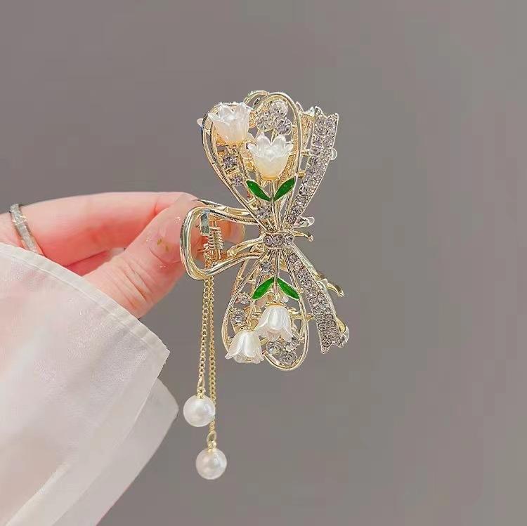 2023 Nuevo clip de borla de lazo de lirio elegante horquilla de cabeza trasera femenina tocado de alta calidad accesorios para el cabello