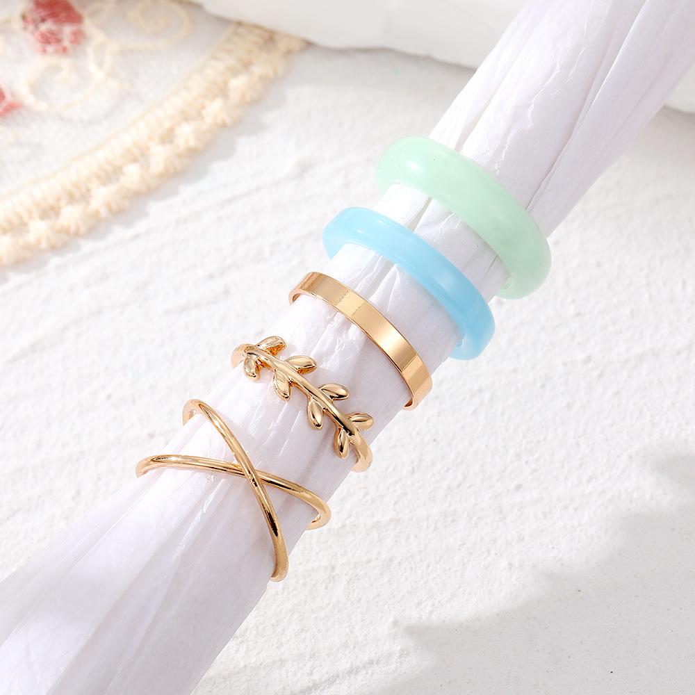 Conjunto de anillos de resina nuevos transfronterizos de Mu Shang Europa y Estados Unidos, conjunto de anillos geométricos de lujo de nicho retro para mujer, conjunto de 7 piezas al por mayor