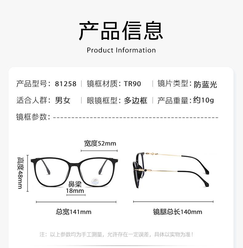 Gafas artesanales para mujer, montura TR90, antiluz azul, lisas, para miopía, venta al por mayor, 2024