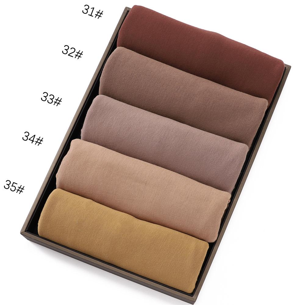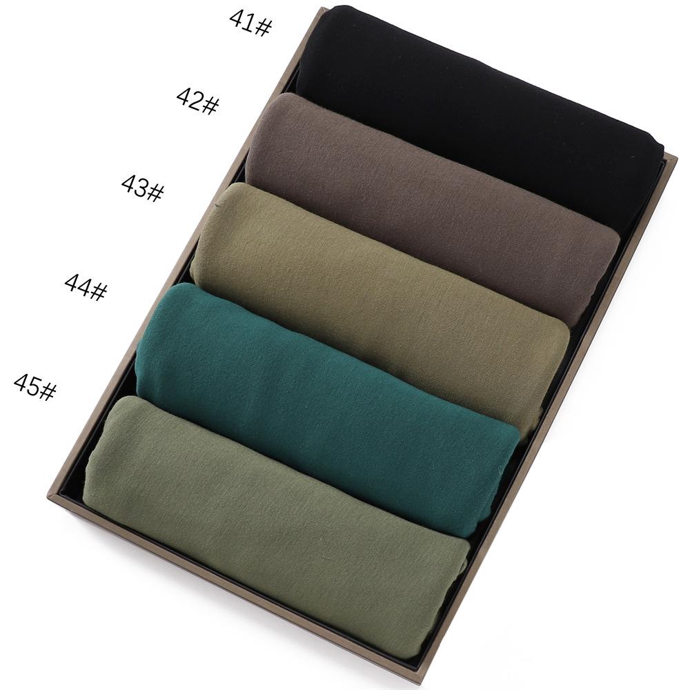 Jersey Transfronterizo Color Puro Bufanda de Algodón Mercerizado Modal Bufanda Larga Jersey Monocromático Hijab Turbante 56 Colores en Stock