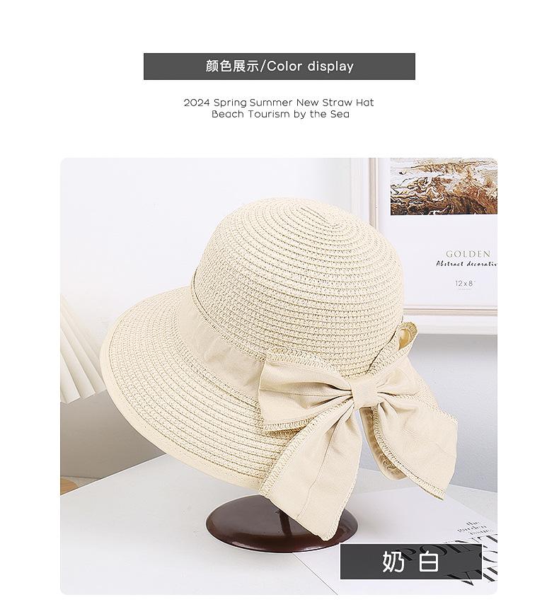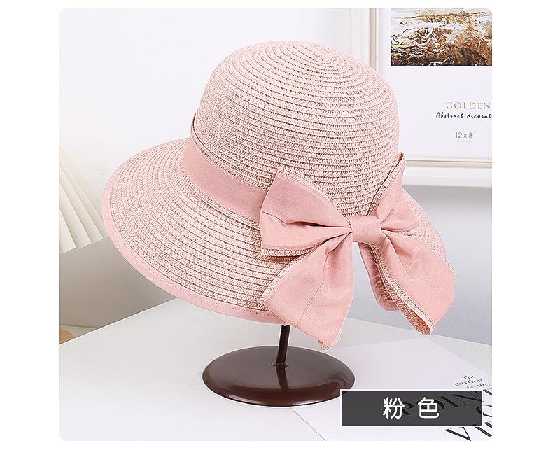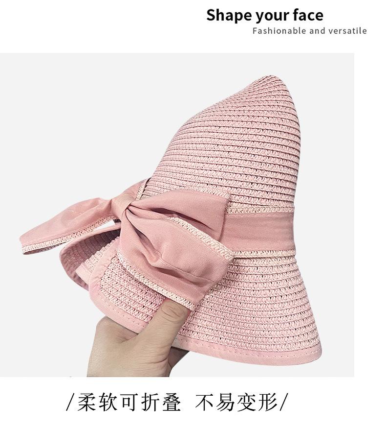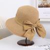 Nuevo sombrero de paja de ala dividida con lazo para mujer, sombrero de sol de primavera y verano para la playa, protección solar, casual, combina con todo, sombrero de paja de cúpula
