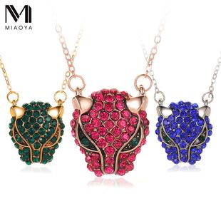 Collar retro de personalidad europea y americana con animal, moda, cristal, colgante genial de cabeza de leopardo, diamantes completos, cadena de clavícula de Batman