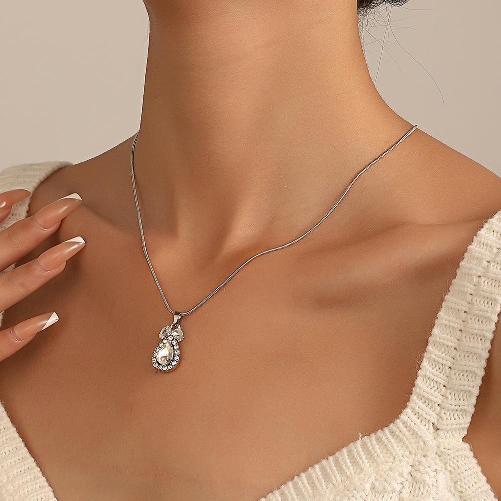 Collar de gota de agua con diamantes sencillos de moda transfronteriza, colgante de corazón de circonita de amor de lujo ligero de Europa y Estados Unidos, fabricantes al por mayor de cadena de clavícula