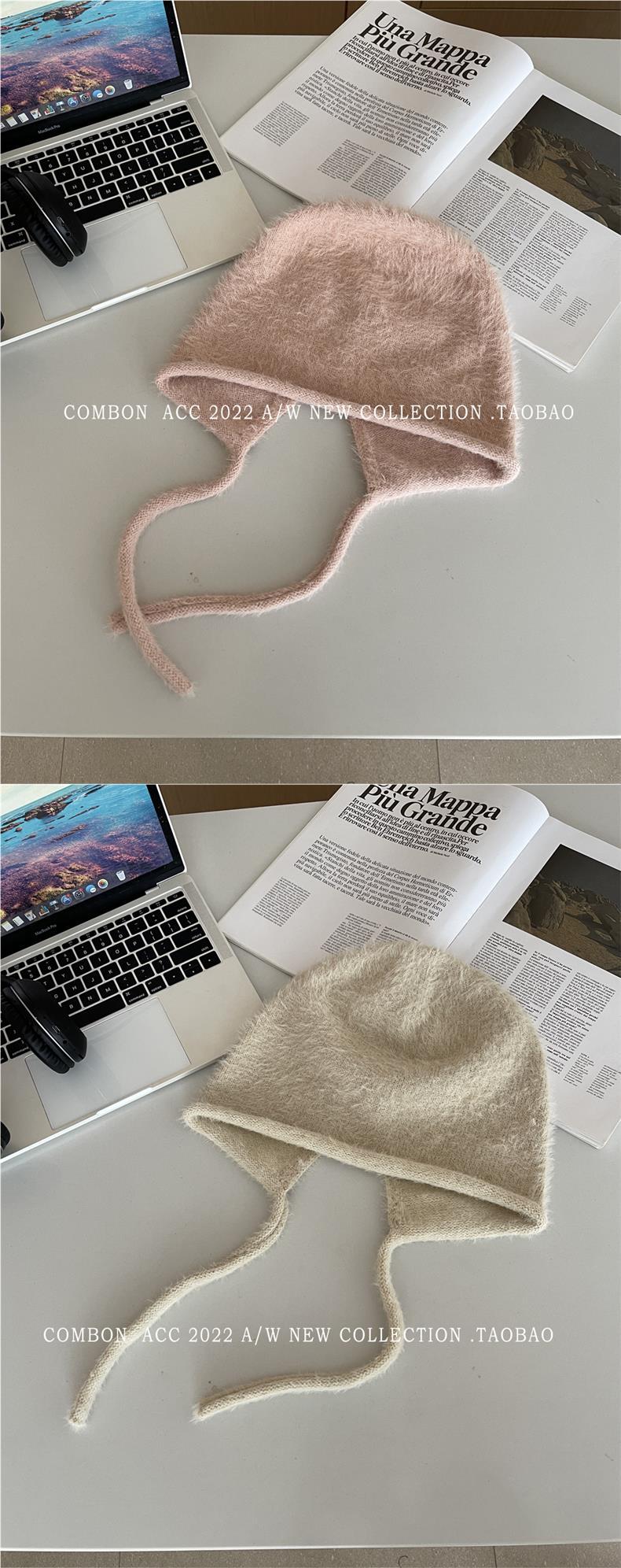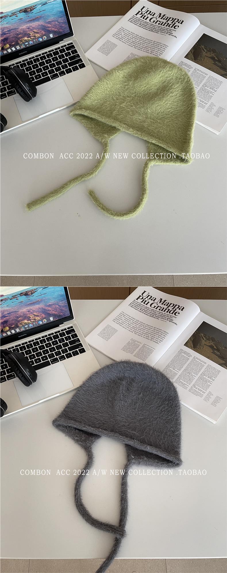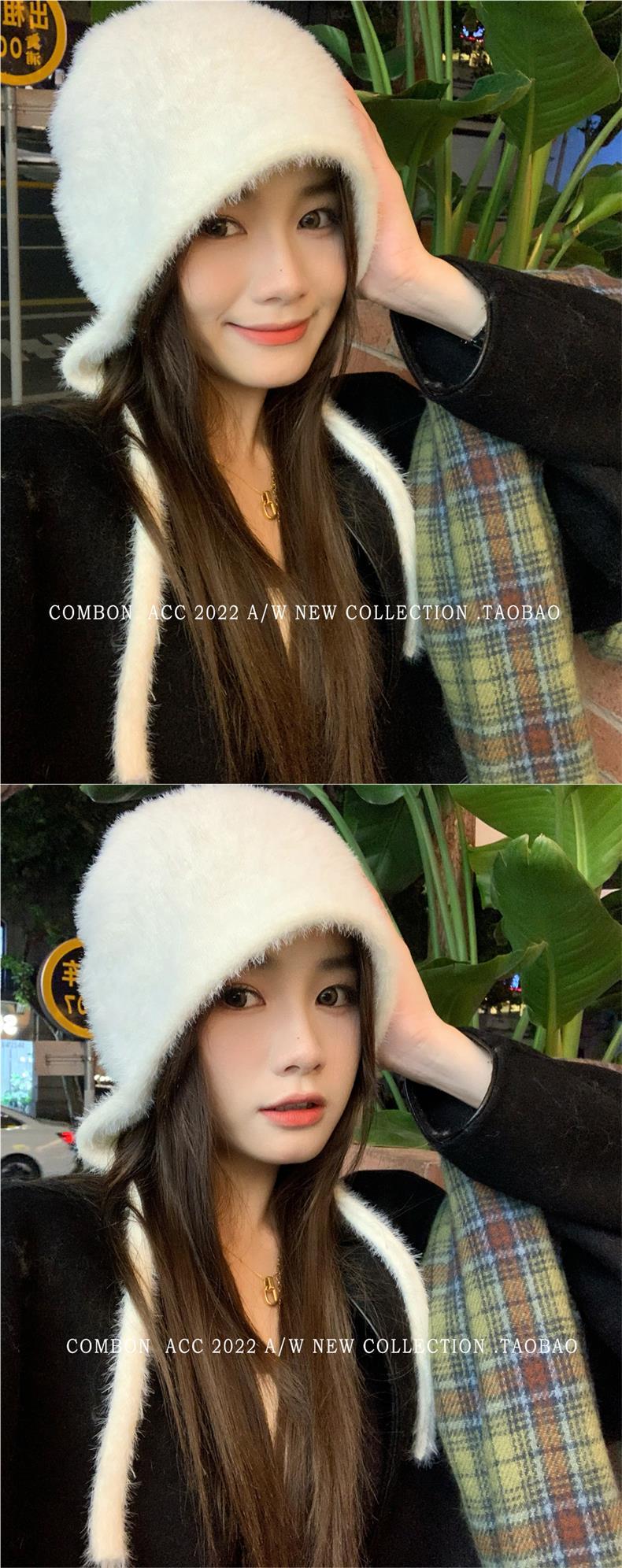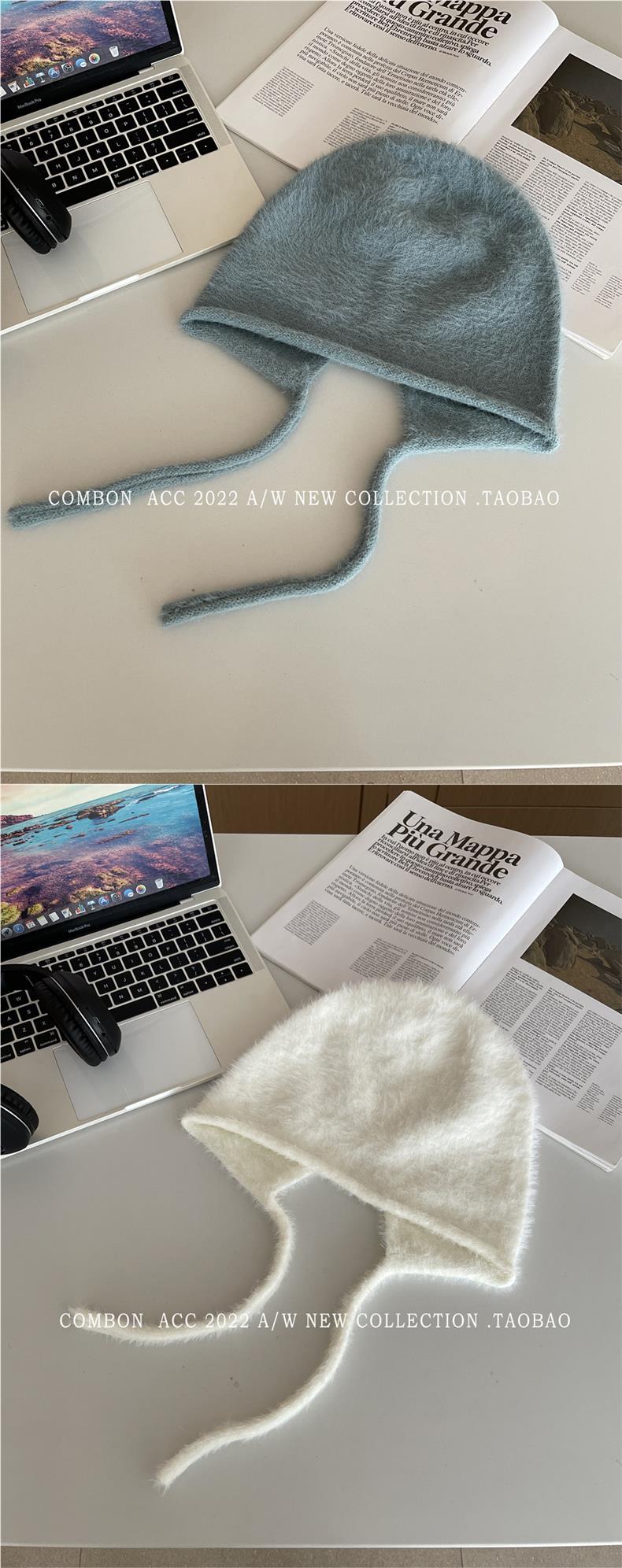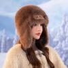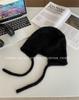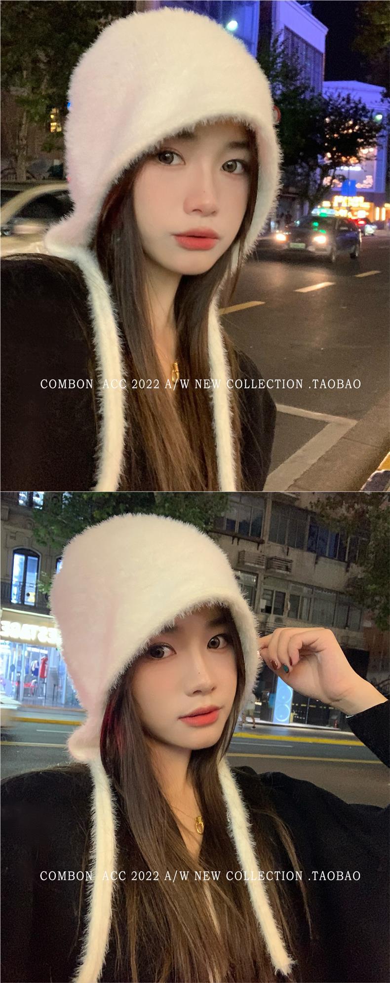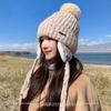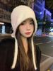 Gorro Lei Feng de felpa blanca para mujer, invierno, protección para las orejas, cálido, tejido de punto, combina con todo, gorro de lana, hace que la cara se vea pequeña, para montar.
