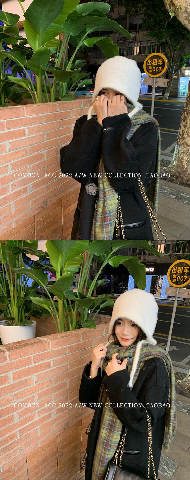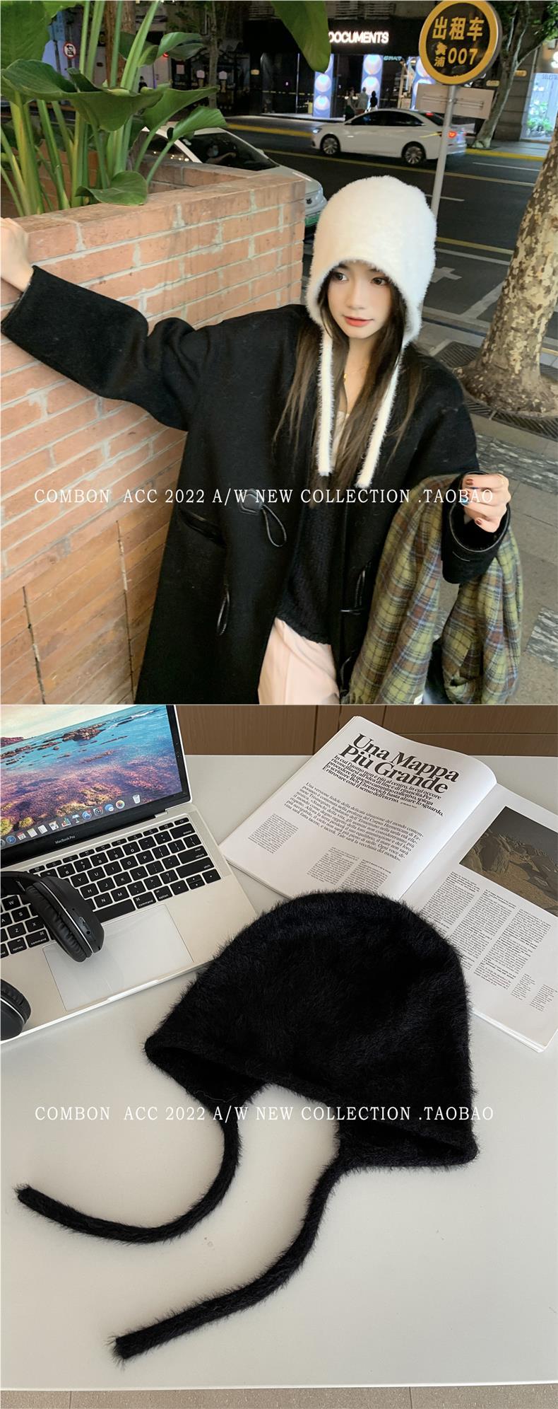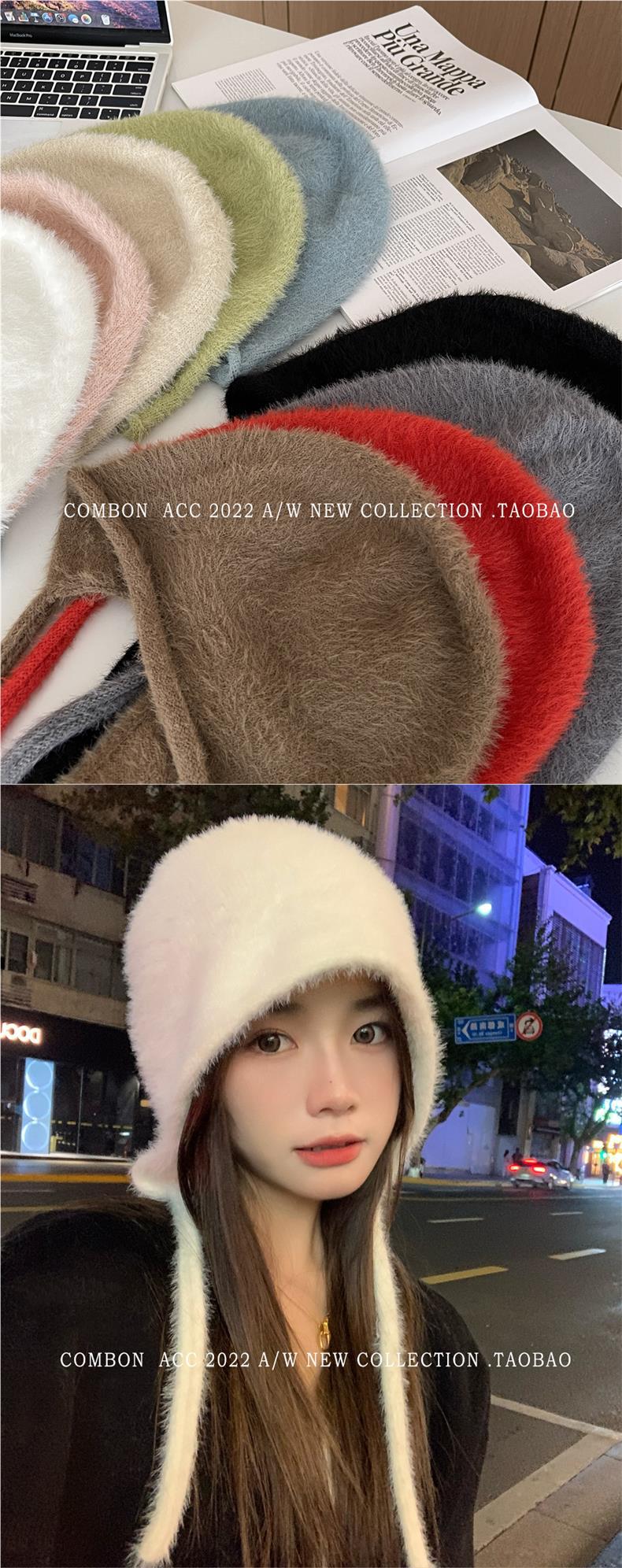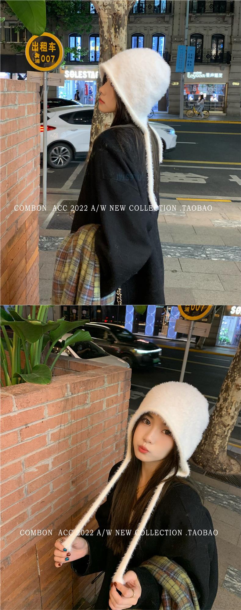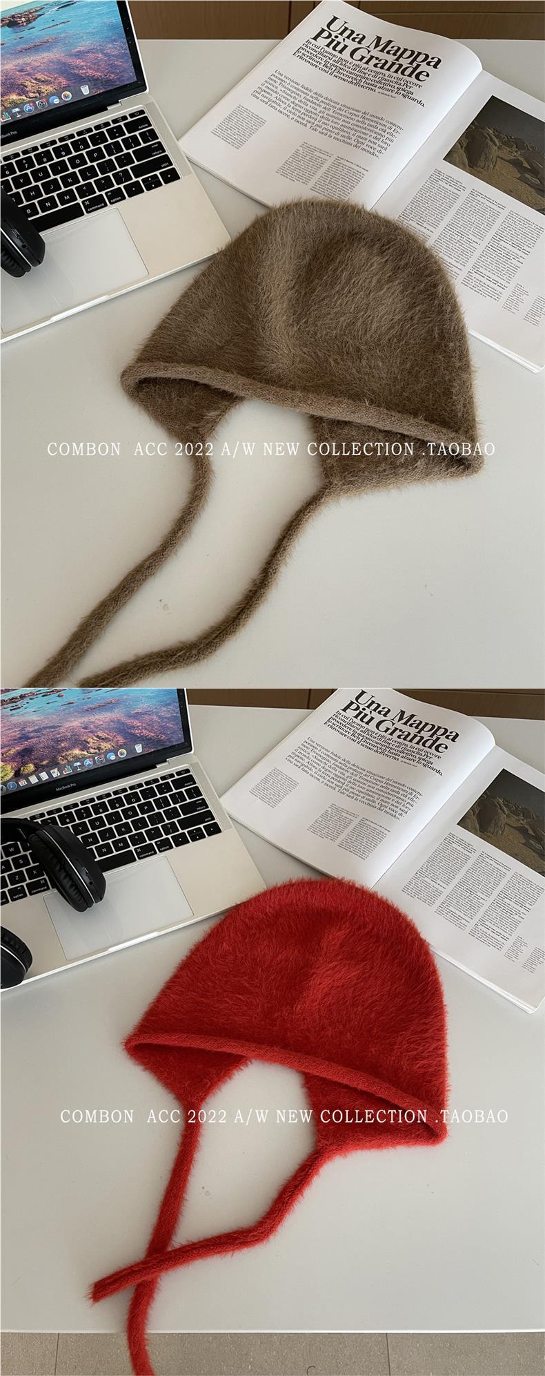 Gorro Lei Feng de felpa blanca para mujer, invierno, protección para las orejas, cálido, tejido de punto, combina con todo, gorro de lana, hace que la cara se vea pequeña, para montar.