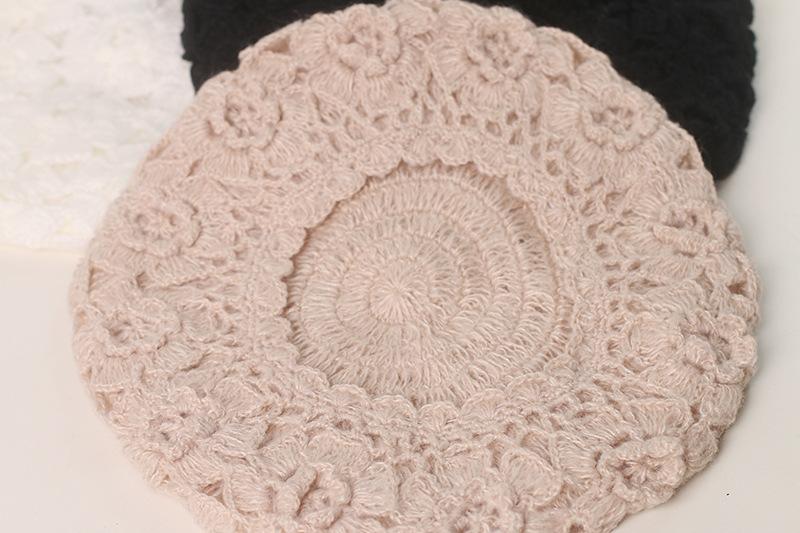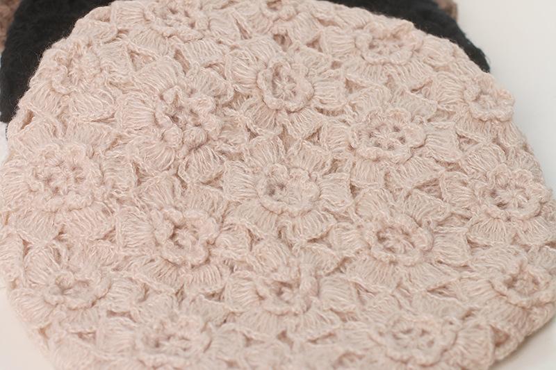 Boina de punto con flores tridimensionales de ganchillo hecha a mano para otoño e invierno, gorro de pintor de lana dulce retro japonés para mujer, gorro de calabaza