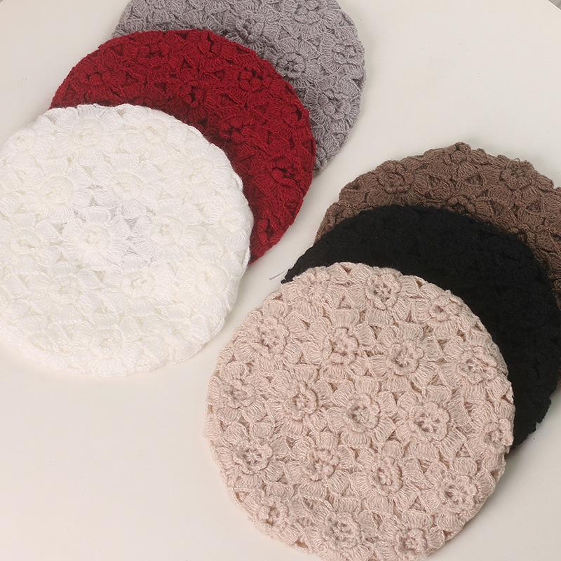 Gorro para mujer, otoño e invierno, nuevo, boina de punto con flores tridimensionales, estilo japonés, diseño de nicho, gorro de pintor de lana retro