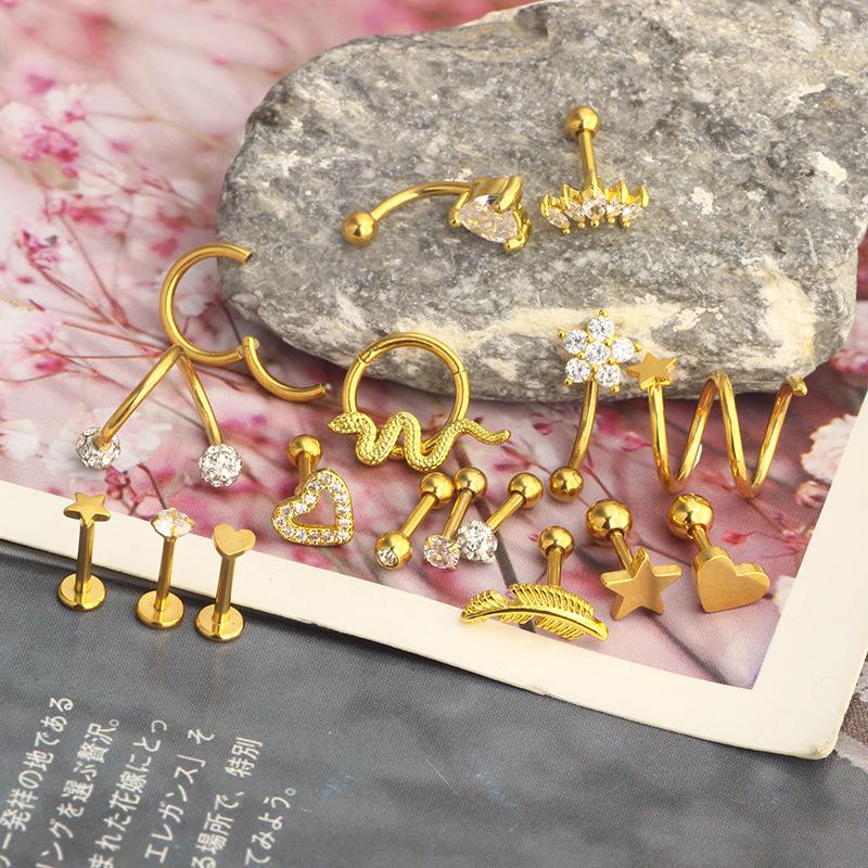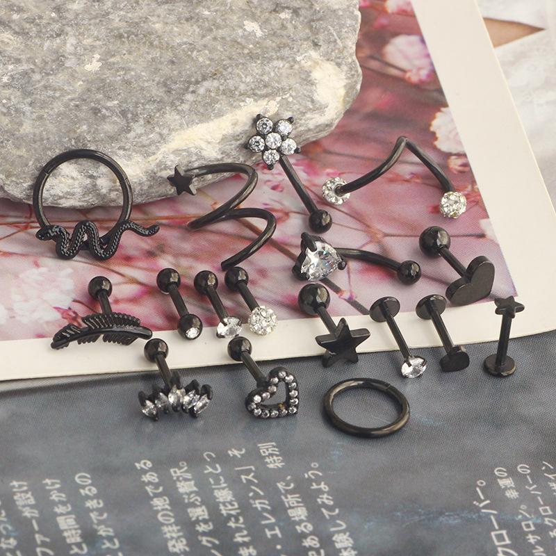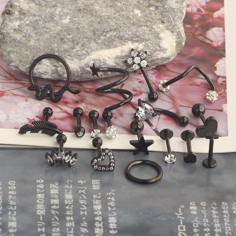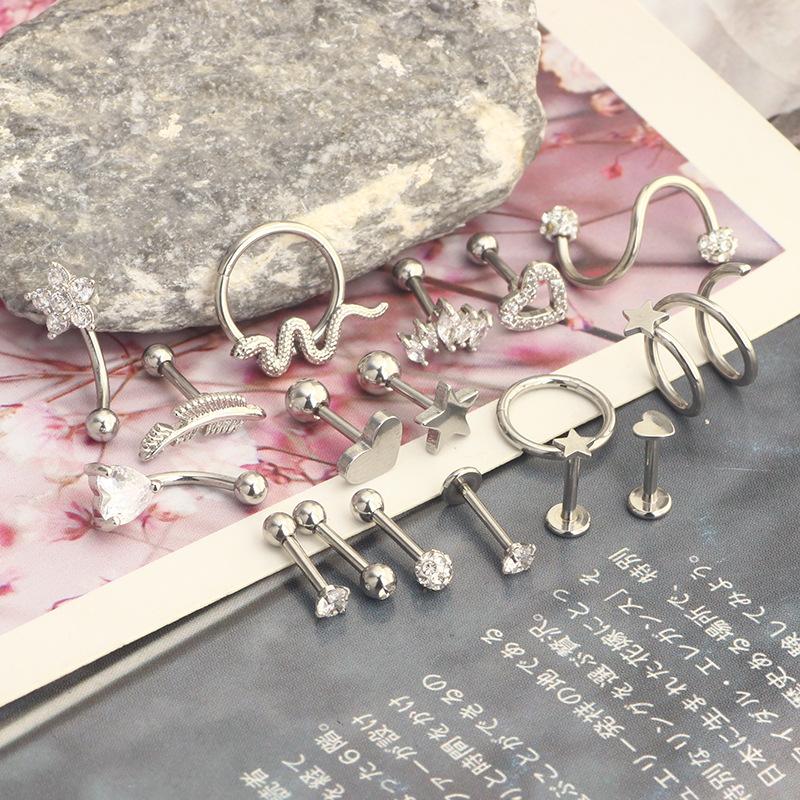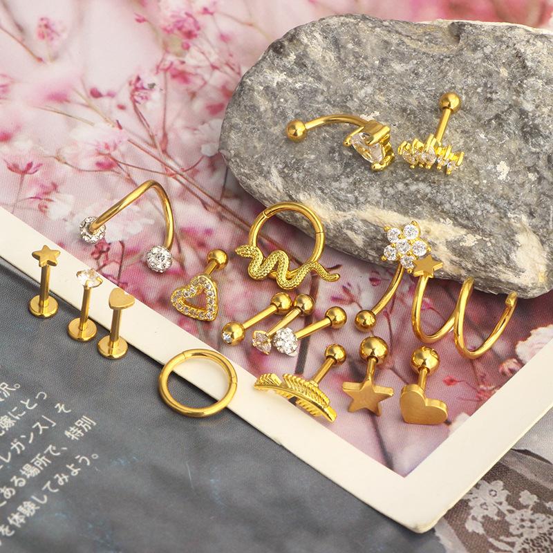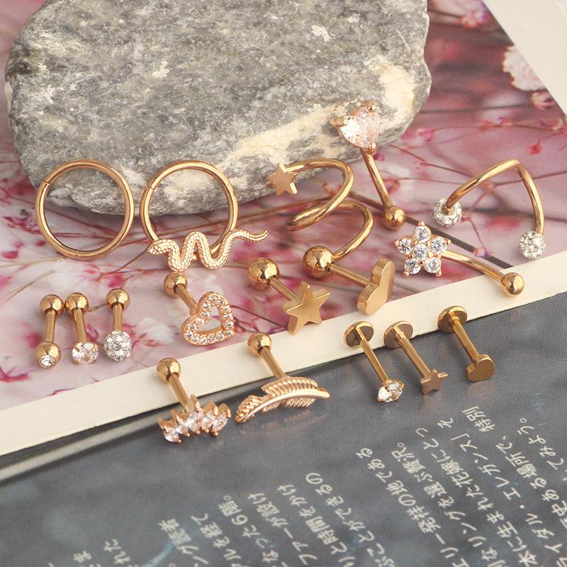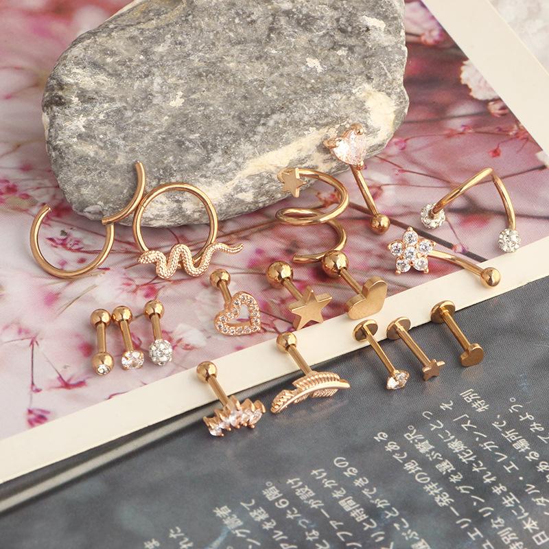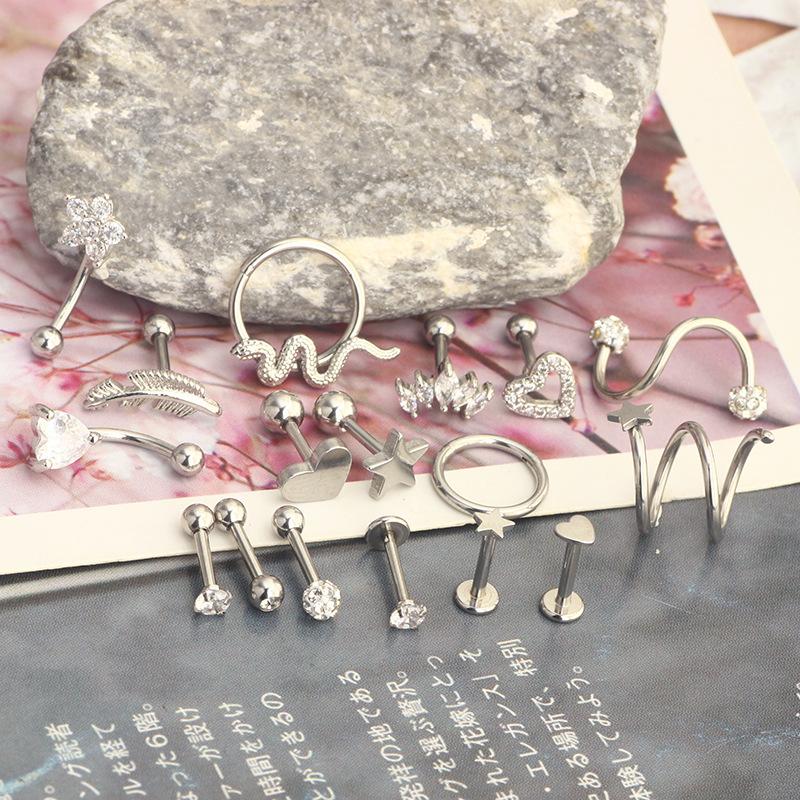 Comercio electrónico transfronterizo: nuevos pendientes de circonita para hueso de oreja, joyería para piercings, juego de 17 pendientes de cartílago.