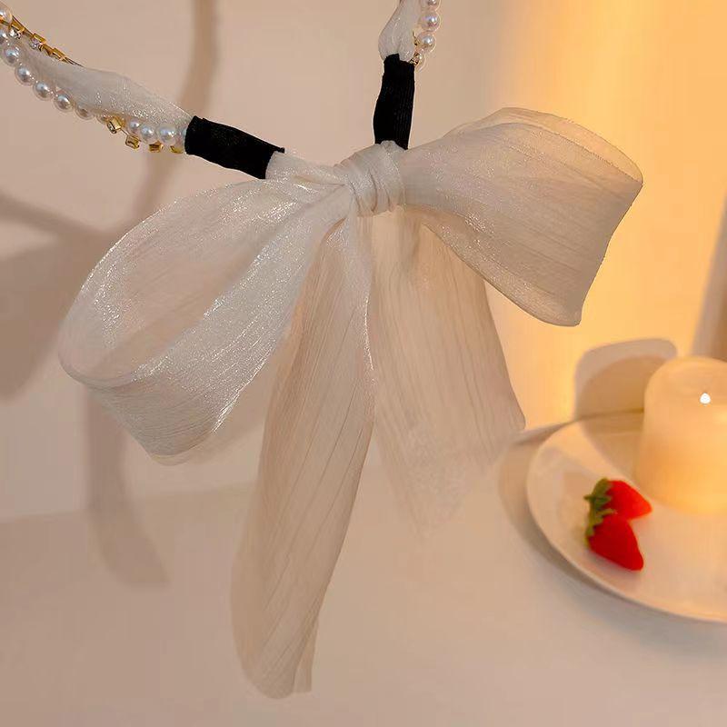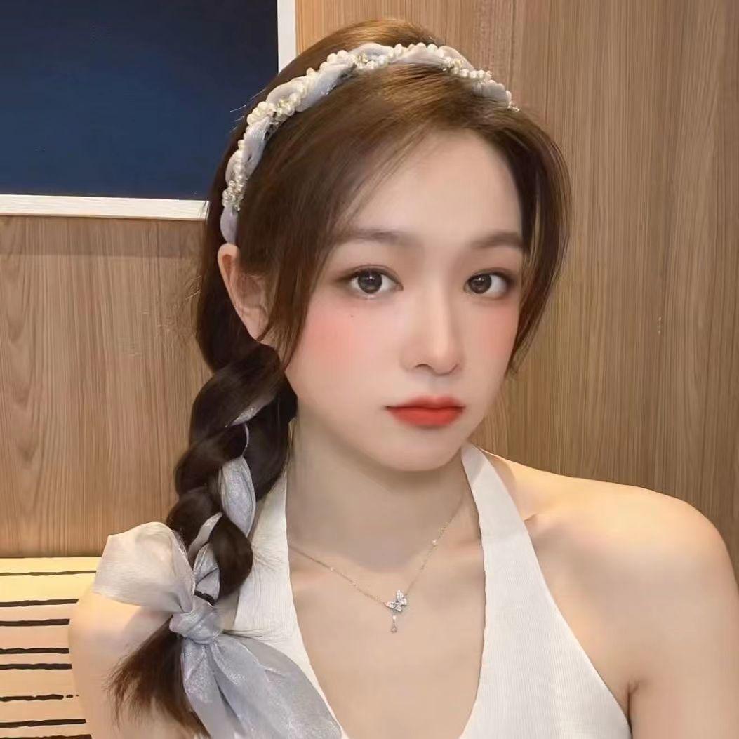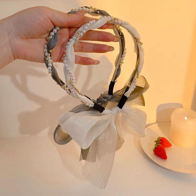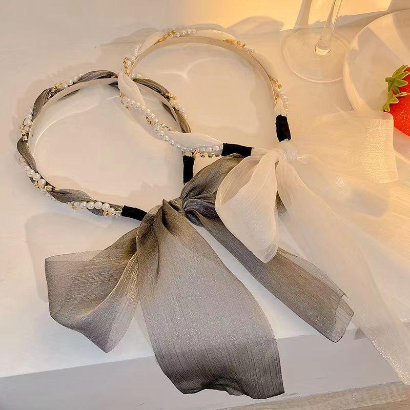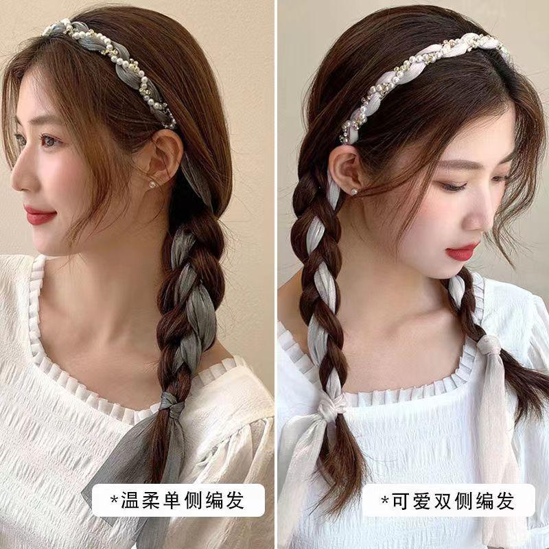 Banda para el cabello con perlas para mujer, estilo coreano, lazo de súper hada, accesorios para el cabello, cinta para el cabello trenzada, diadema de una pieza, pañuelo de seda para el cabello, cinturón para el cabello