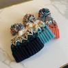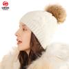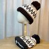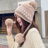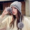 Gorro de punto con bola de pelo a juego para mujer, gorro de lana gruesa y cálida con protección para las orejas, estilo coreano, informal, para invierno