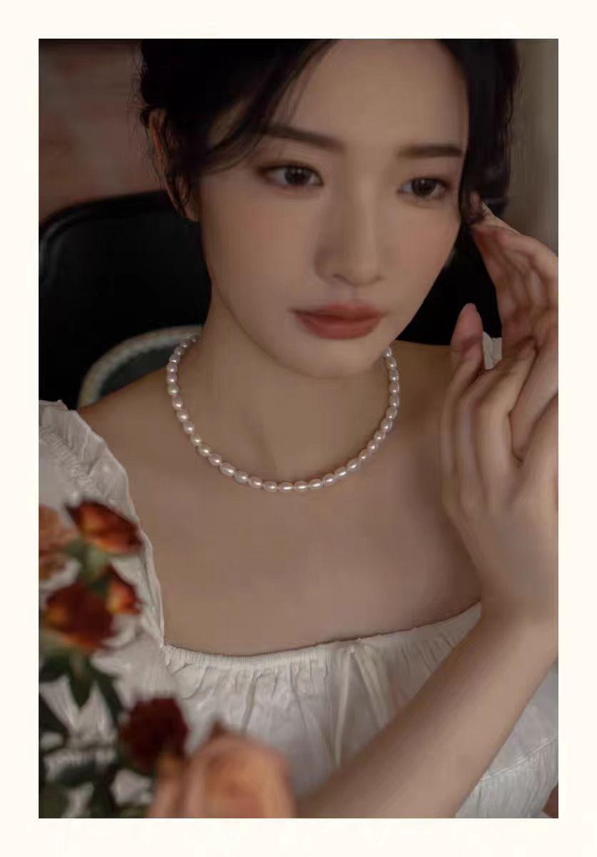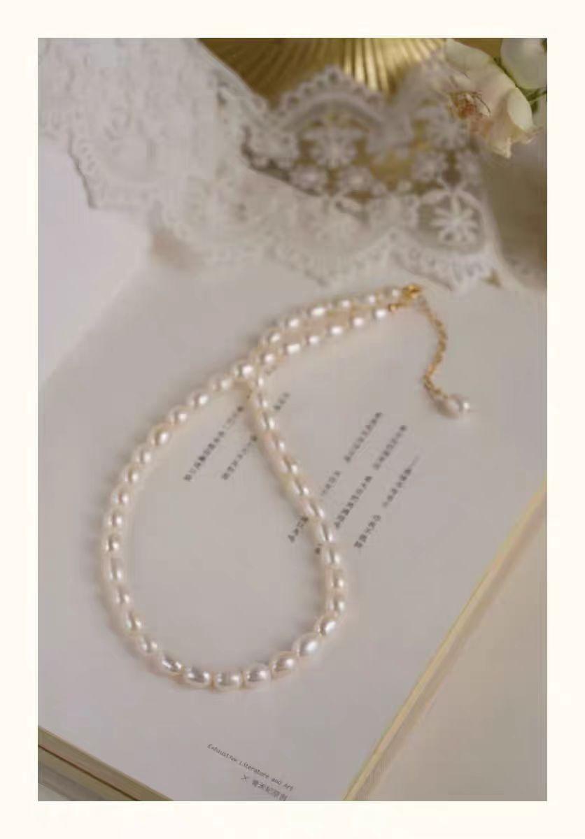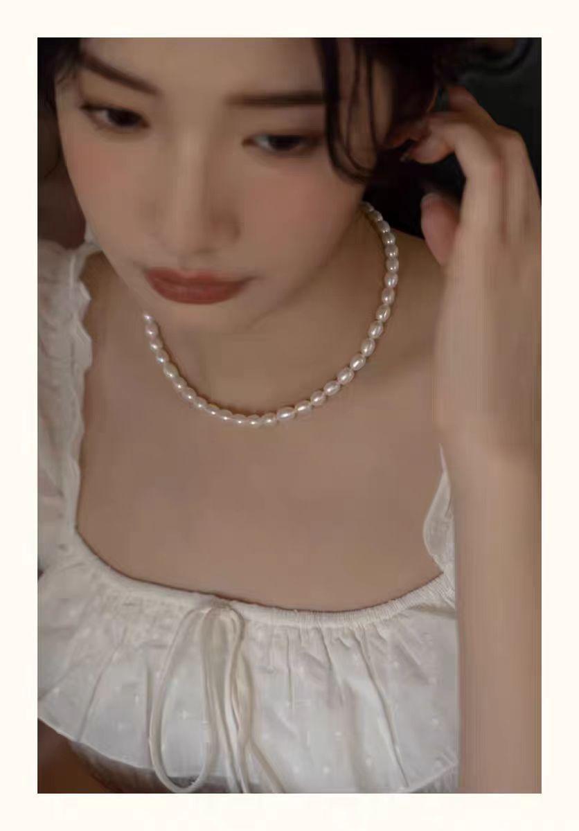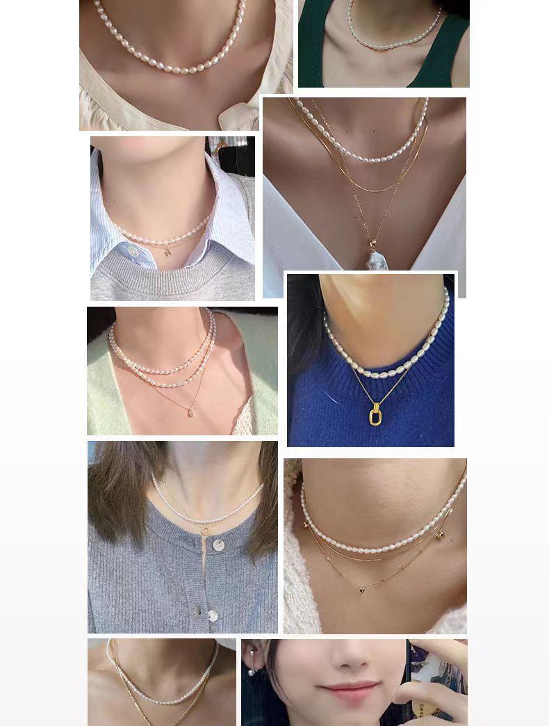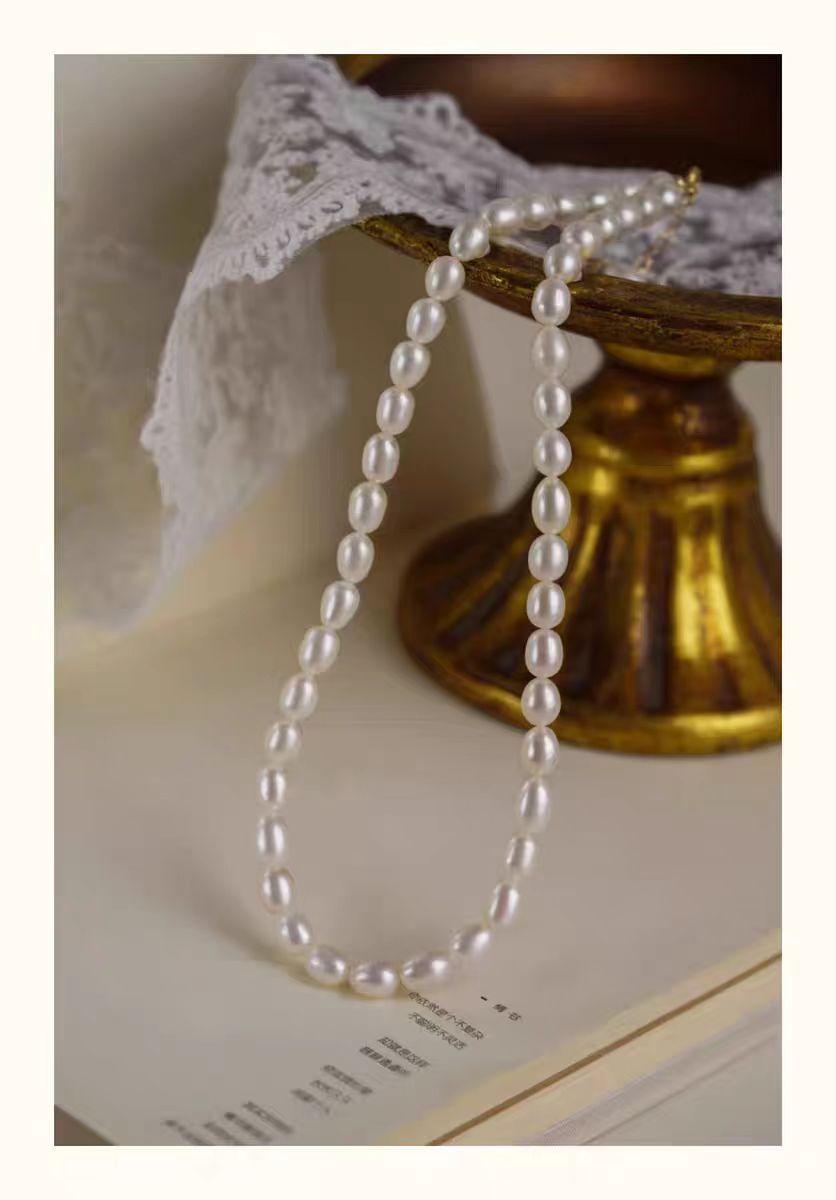 Collar de perlas de mijo de agua dulce para bebé, moderno, ligero, de lujo, elegante, cadena de clavícula sencilla y moderna para madre.