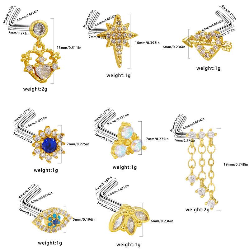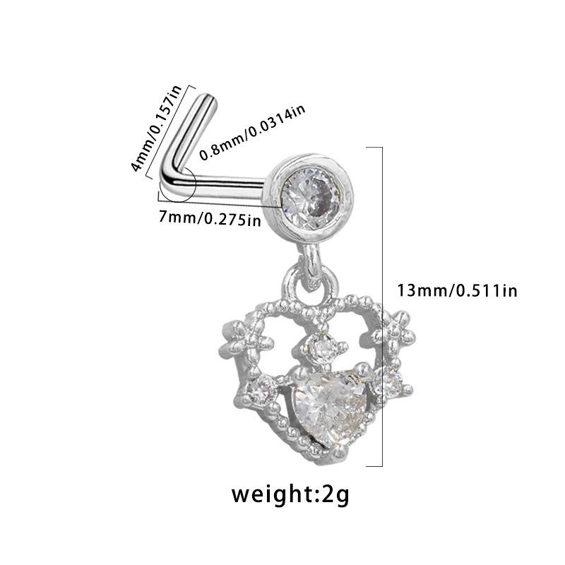 Gabe Europa y Estados Unidos colgante de corazón transfronterizo circonita perforación clavo para la nariz abeja anillo para la nariz barra L clavo para la nariz perforación outlet de fábrica