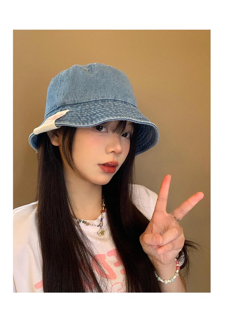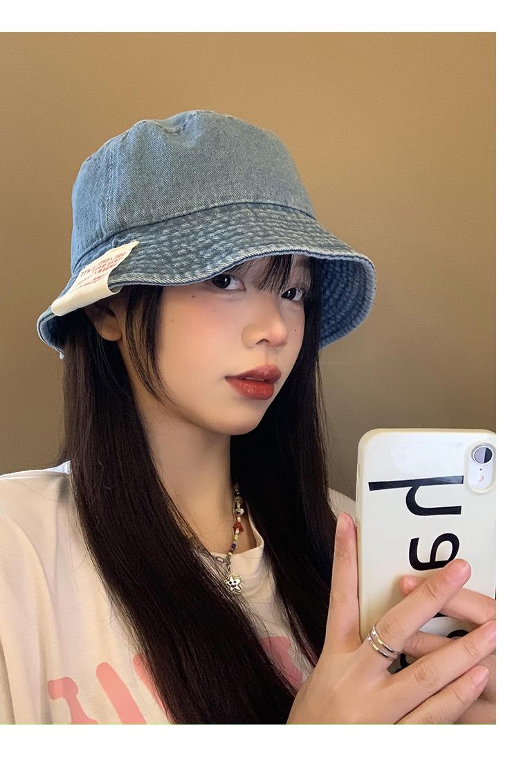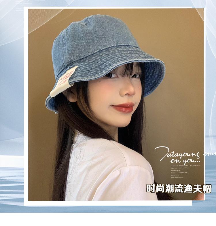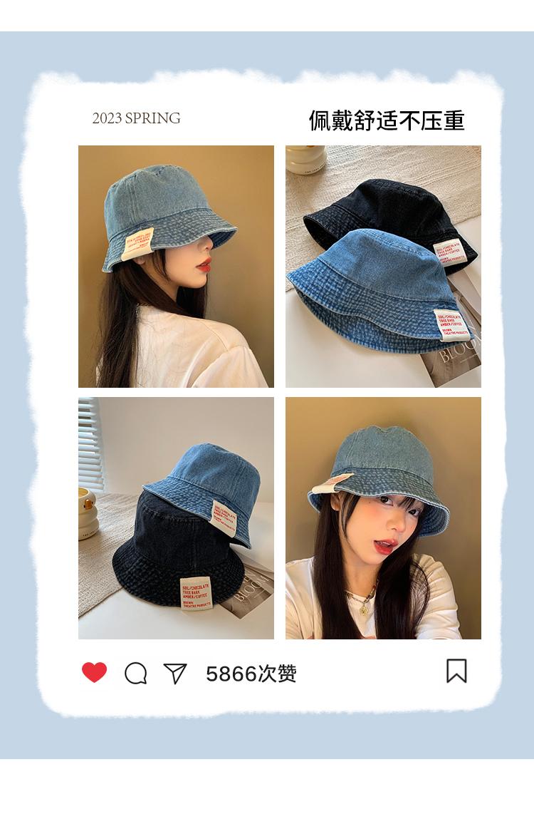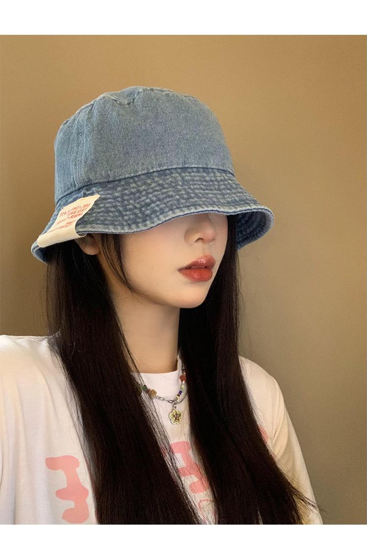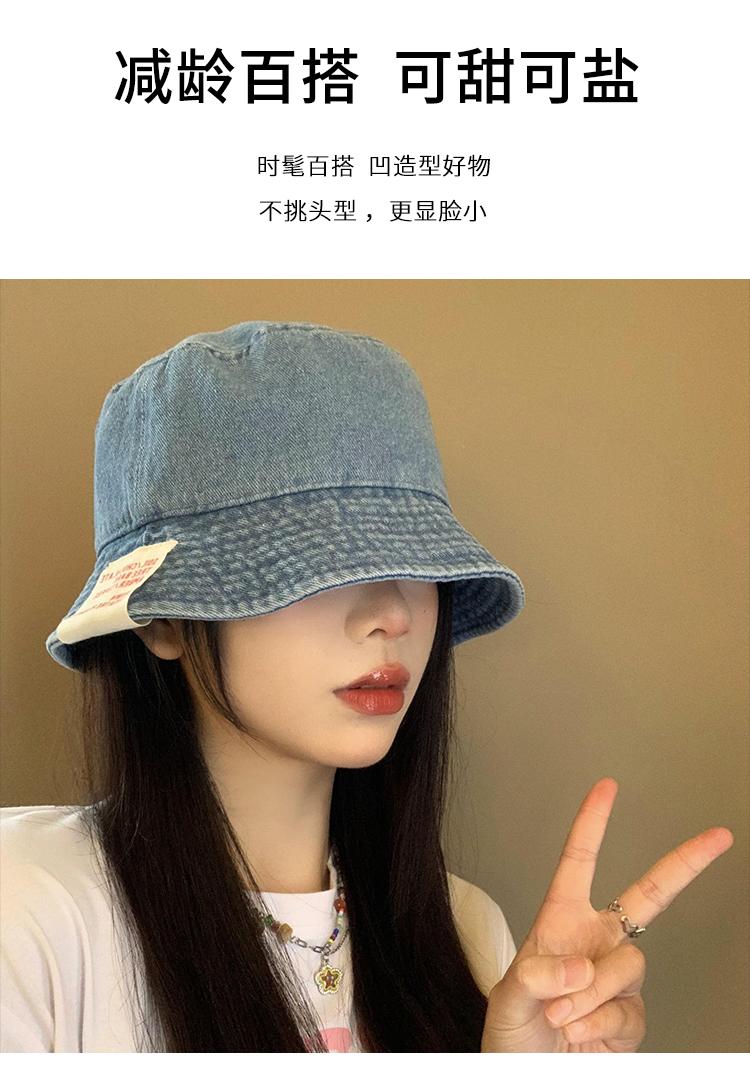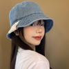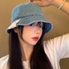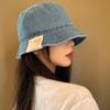 Sombrero de pescador de mezclilla para mujer, primavera y verano, estilo japonés, retro, cabeza grande, cara visible, pequeño sombrero de cubo, sombrilla, protector solar, sombrero de olla, moderno