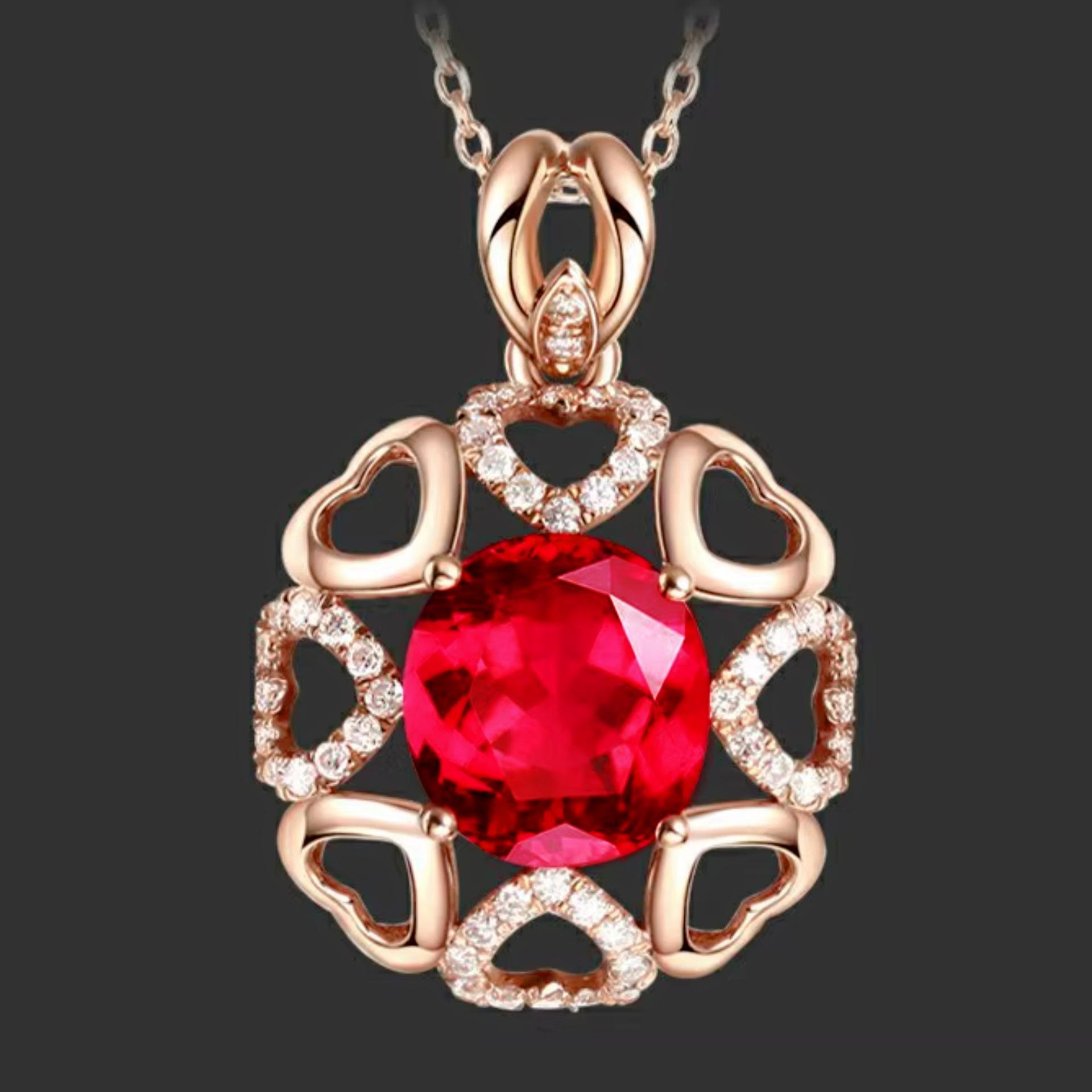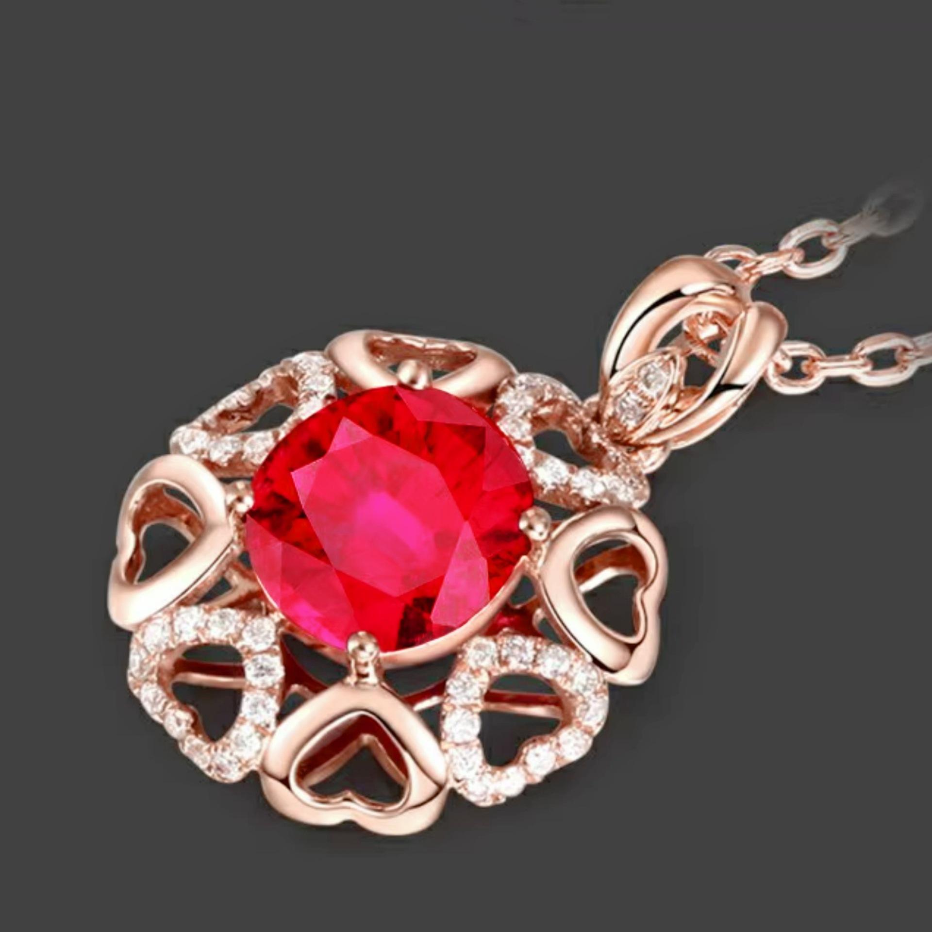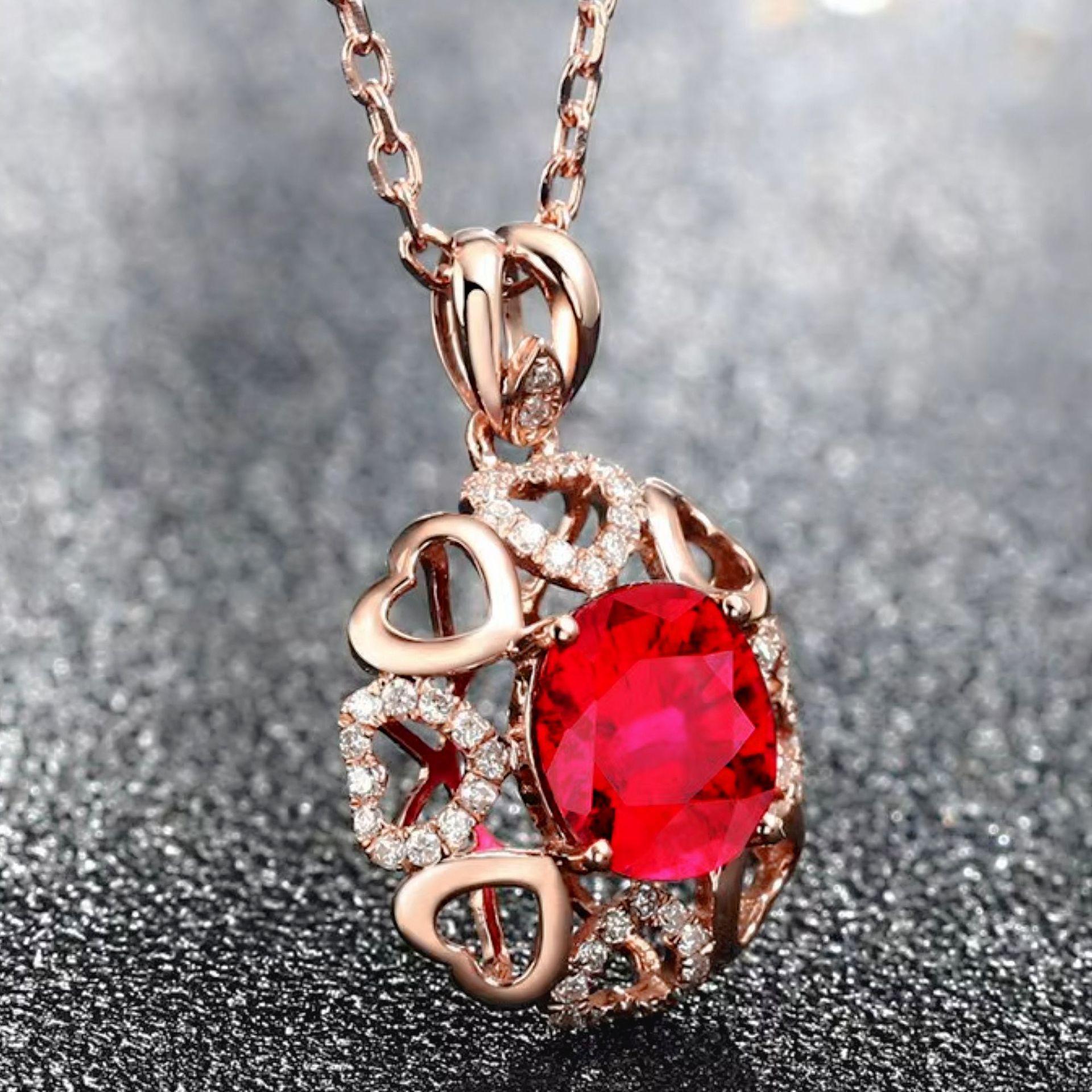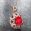 Collar con colgante de flor de amor hueca con diamantes rojos y cristales rojos, cadena de suéter, tesoro de color, joyería para mujer
