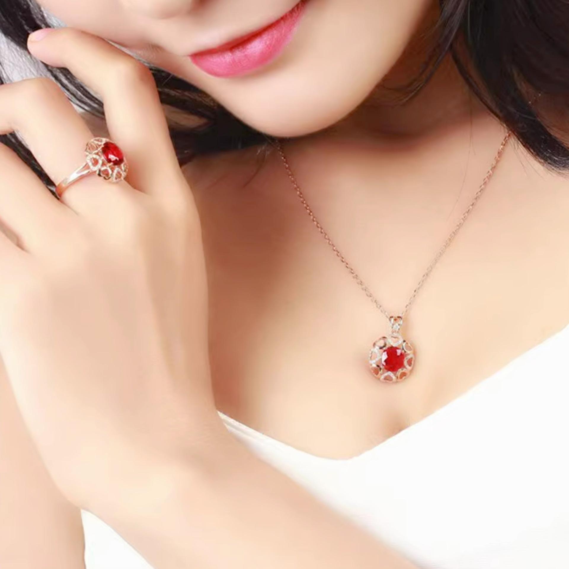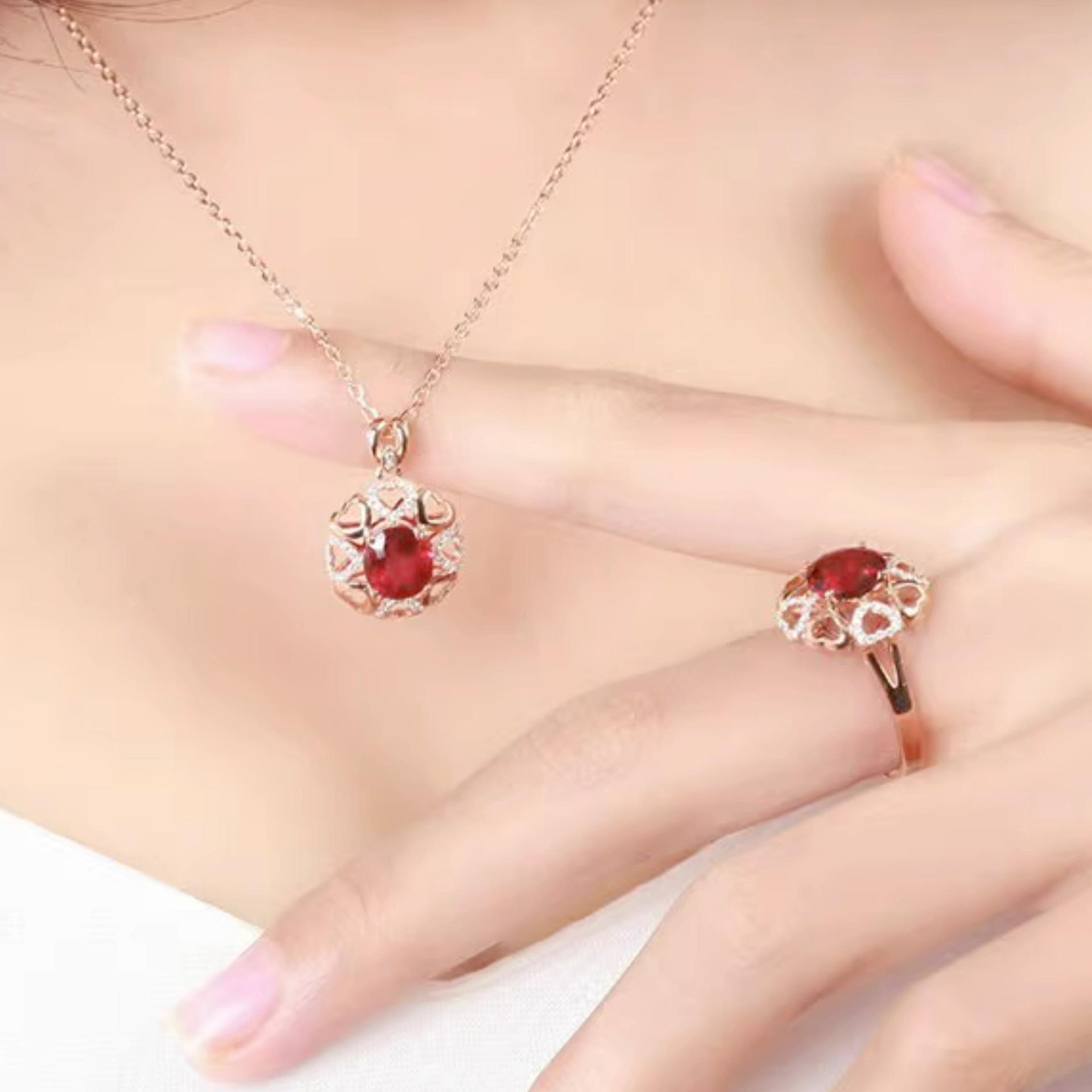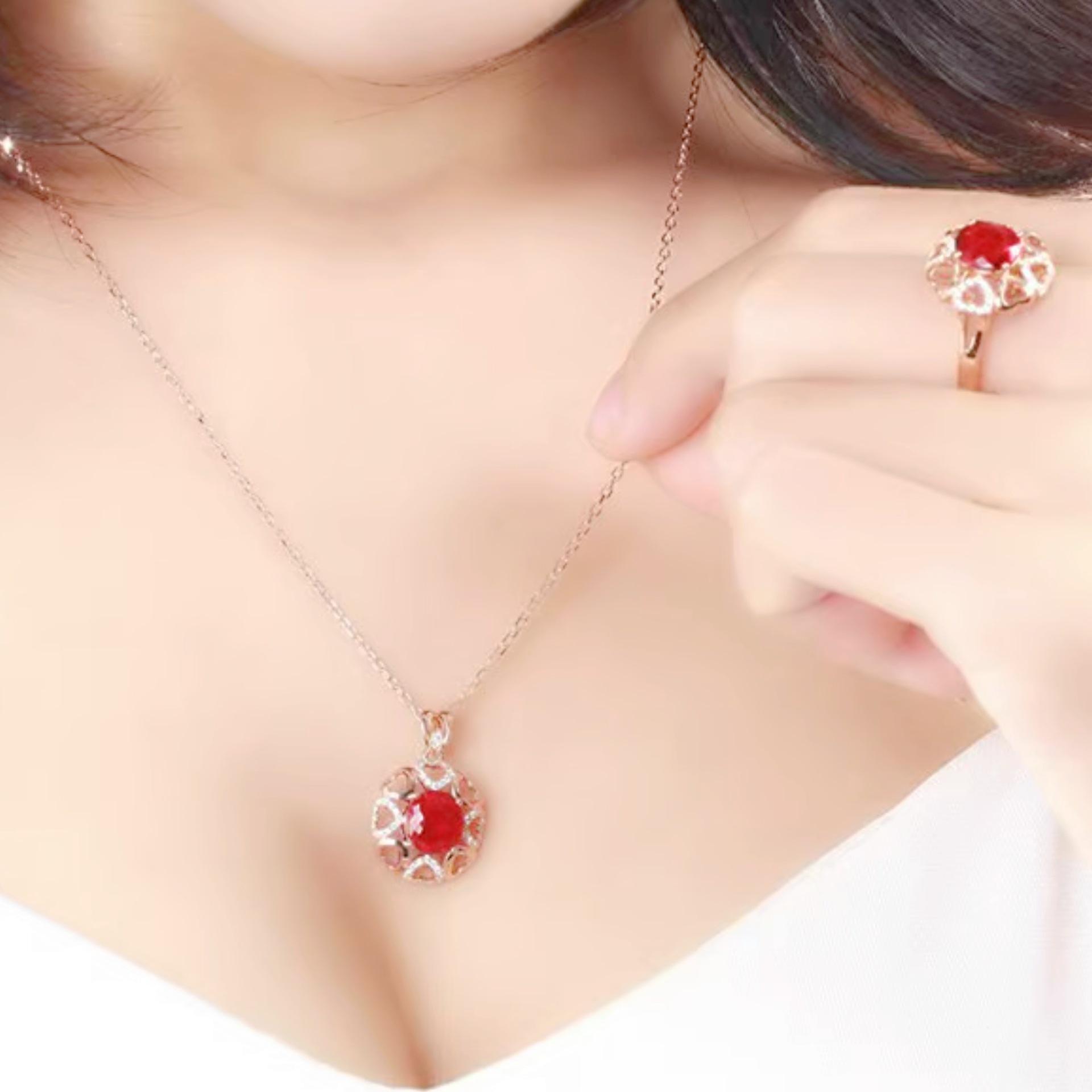 Collar con colgante de flor de amor hueca con diamantes rojos y cristales rojos, cadena de suéter, tesoro de color, joyería para mujer