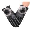 Guantes de cuero para mujer, de otoño e invierno, con bola de pelo de conejo, de piel sintética, para pantalla táctil, bonitos y cálidos, para ciclismo, con protección contra el frío. |