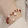 Pulsera de amor con flor de cristal de fresa estilo princesa súper hada, pulsera de novia con gancho en forma de corazón para niña dulce y flor de durazno