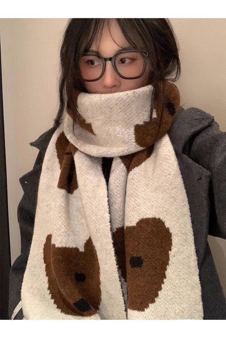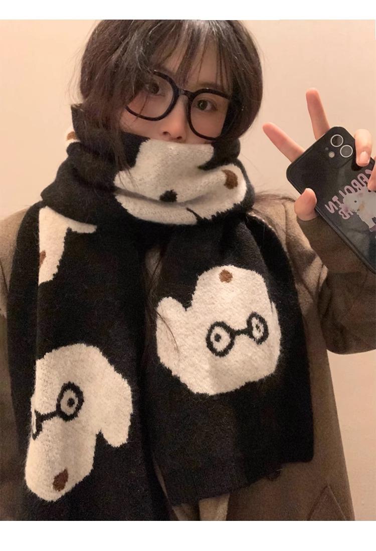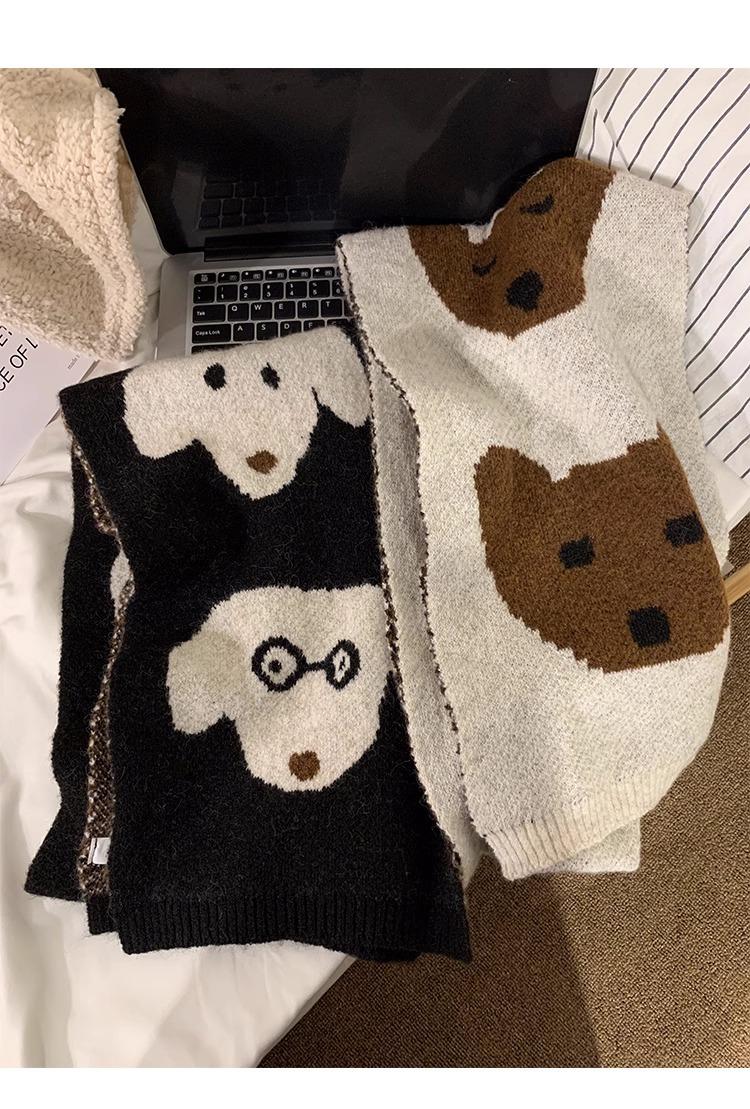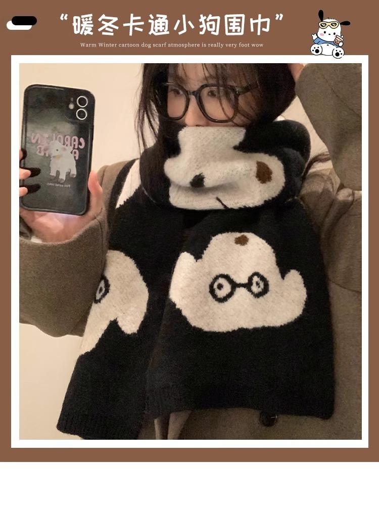 Bufanda tejida de cachorro japonés lindo para mujer invierno 2023 nueva a prueba de frío cálida bufanda de pareja de estudiantes con lana