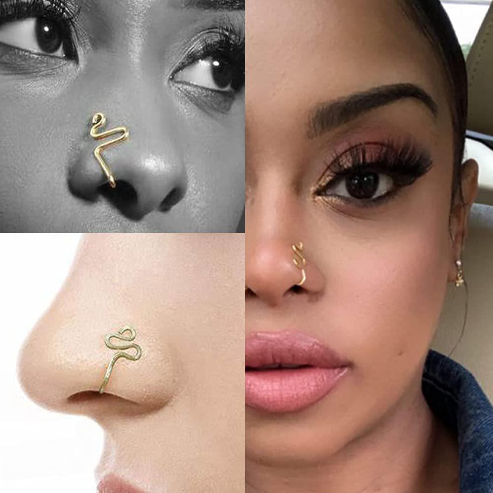 Anillos de Nariz de Pedrería Europeos y Americanos Transfronterizos Sin Perforación Estilo Africano Joyería para Piercing Clip Espiral para Nariz en Forma de U Estilo Simple Europeo y Americano