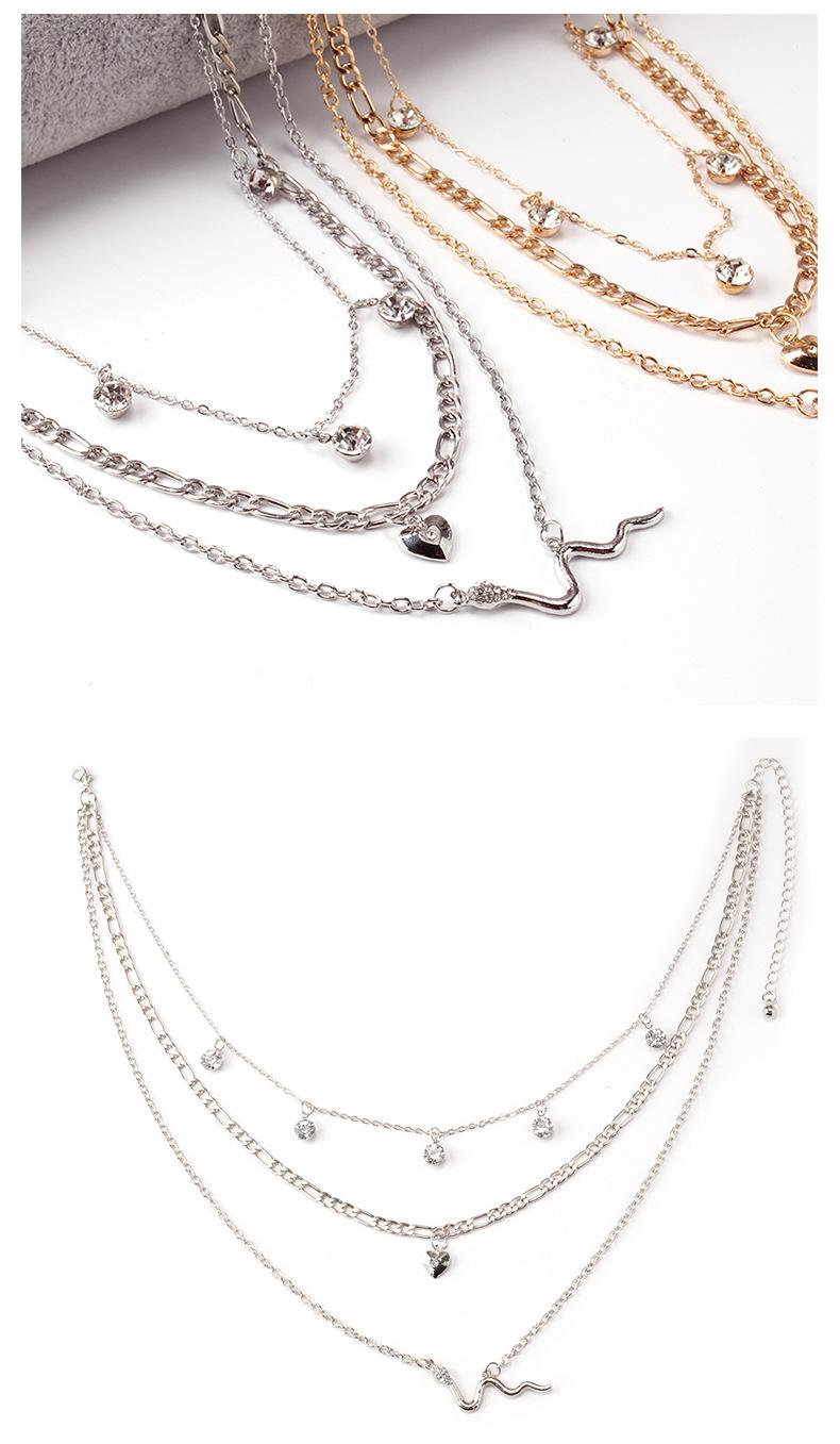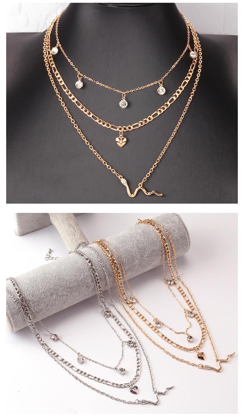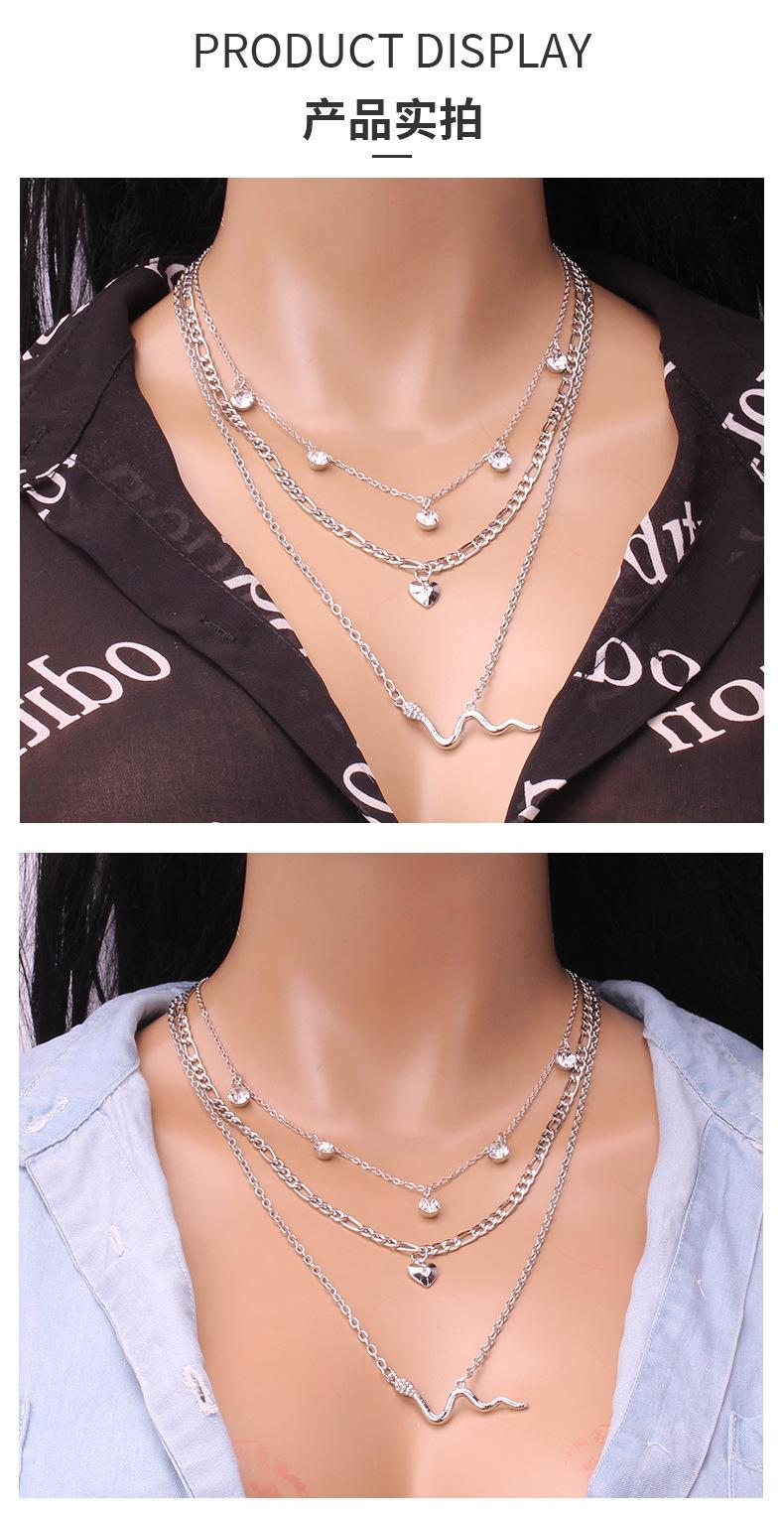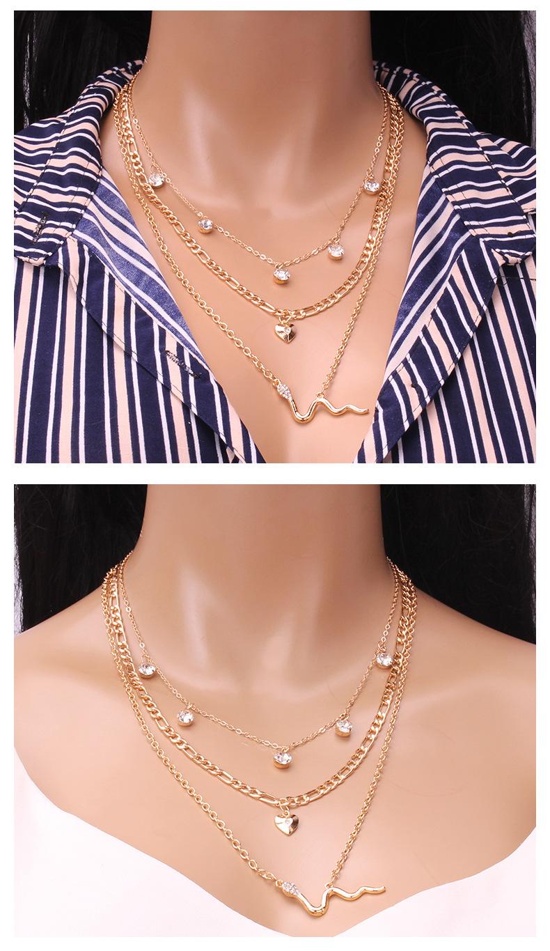 Collar de serpiente personalizado, estilo europeo y americano, con cadena de clavícula exagerada, accesorios de diamantes con forma de corazón de melocotón que combinan con todo, collar multicapa
