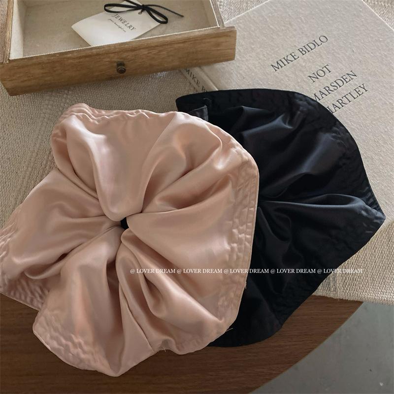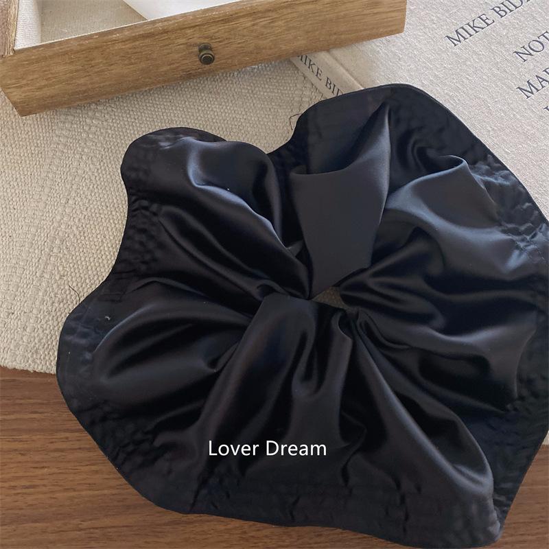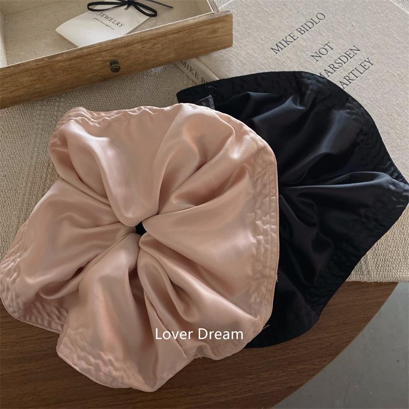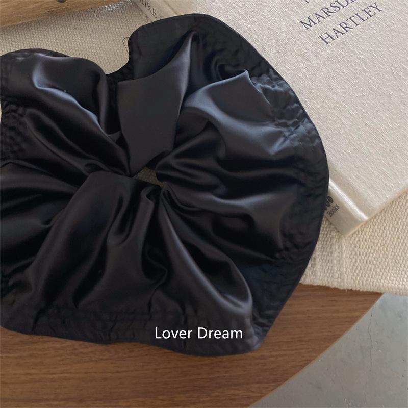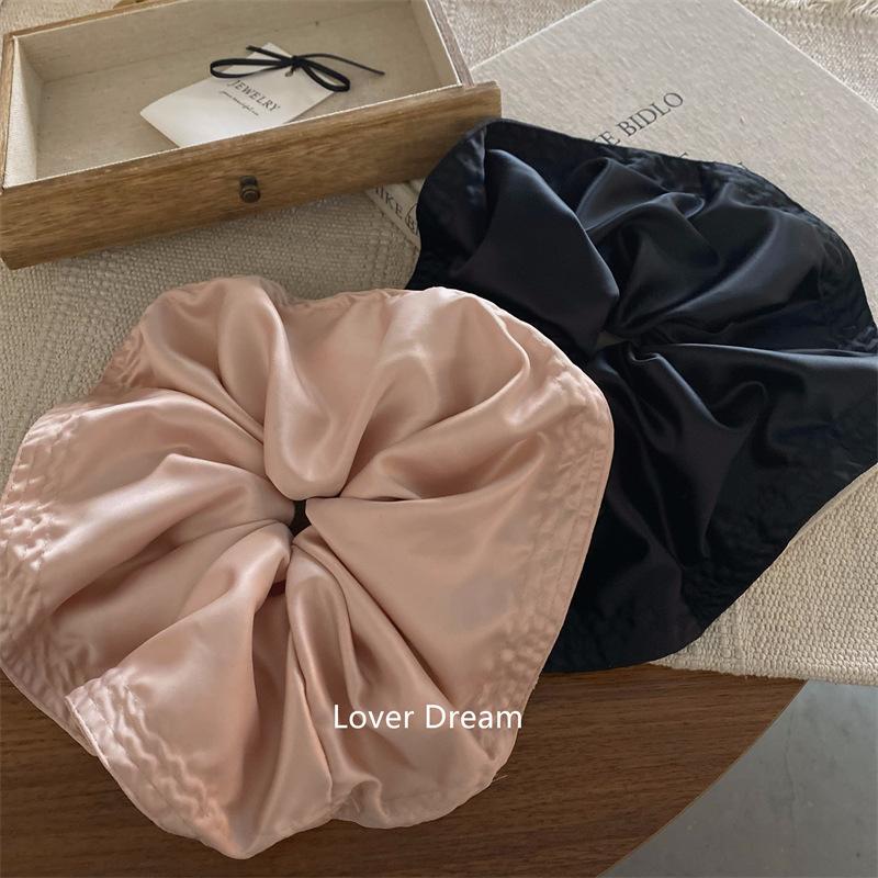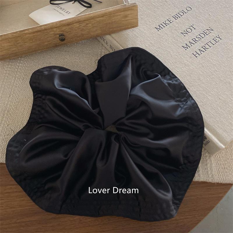 Corea del Sur - Nuevo anillo para el cabello de tela satinada rosa y negra súper grande, dulce accesorio para el cabello con cola de caballo alta a la moda para mujer