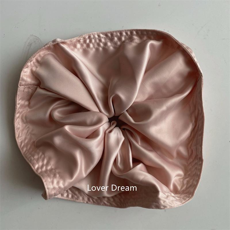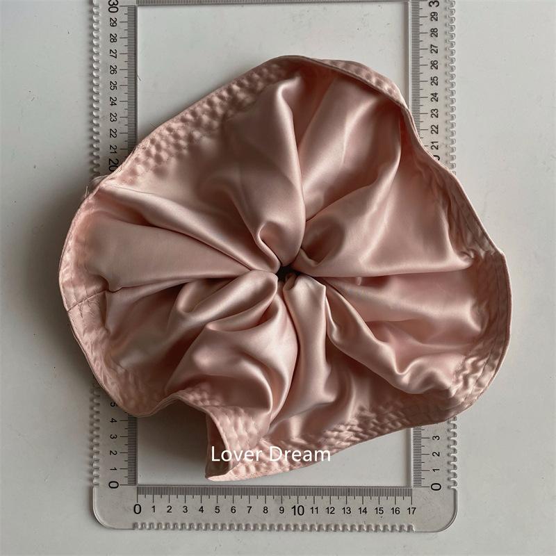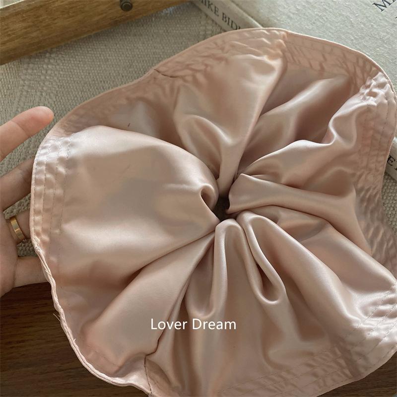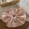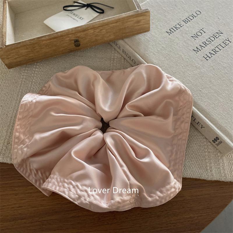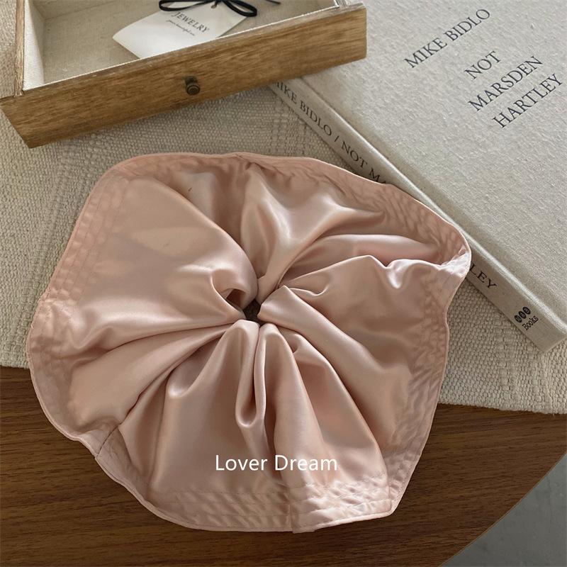 Corea del Sur - Nuevo anillo para el cabello de tela satinada rosa y negra súper grande, dulce accesorio para el cabello con cola de caballo alta a la moda para mujer