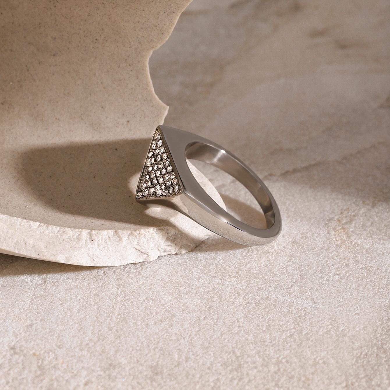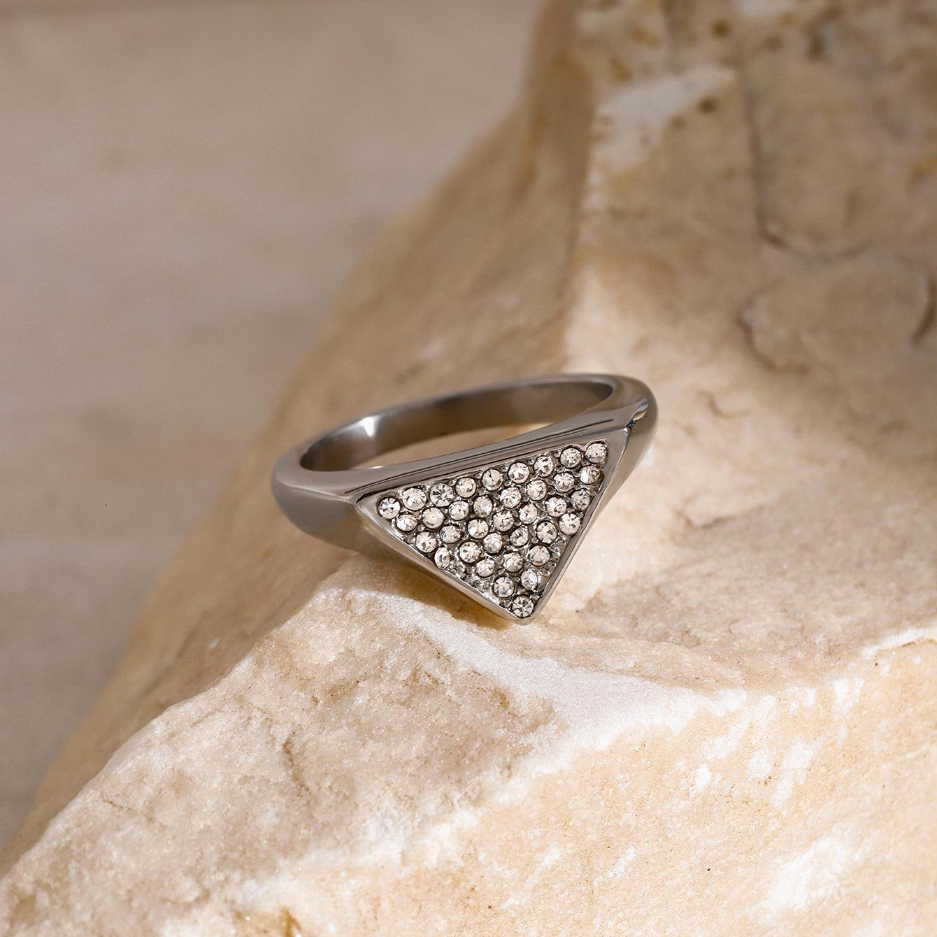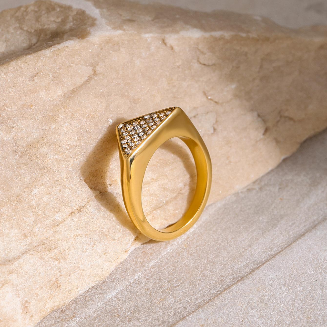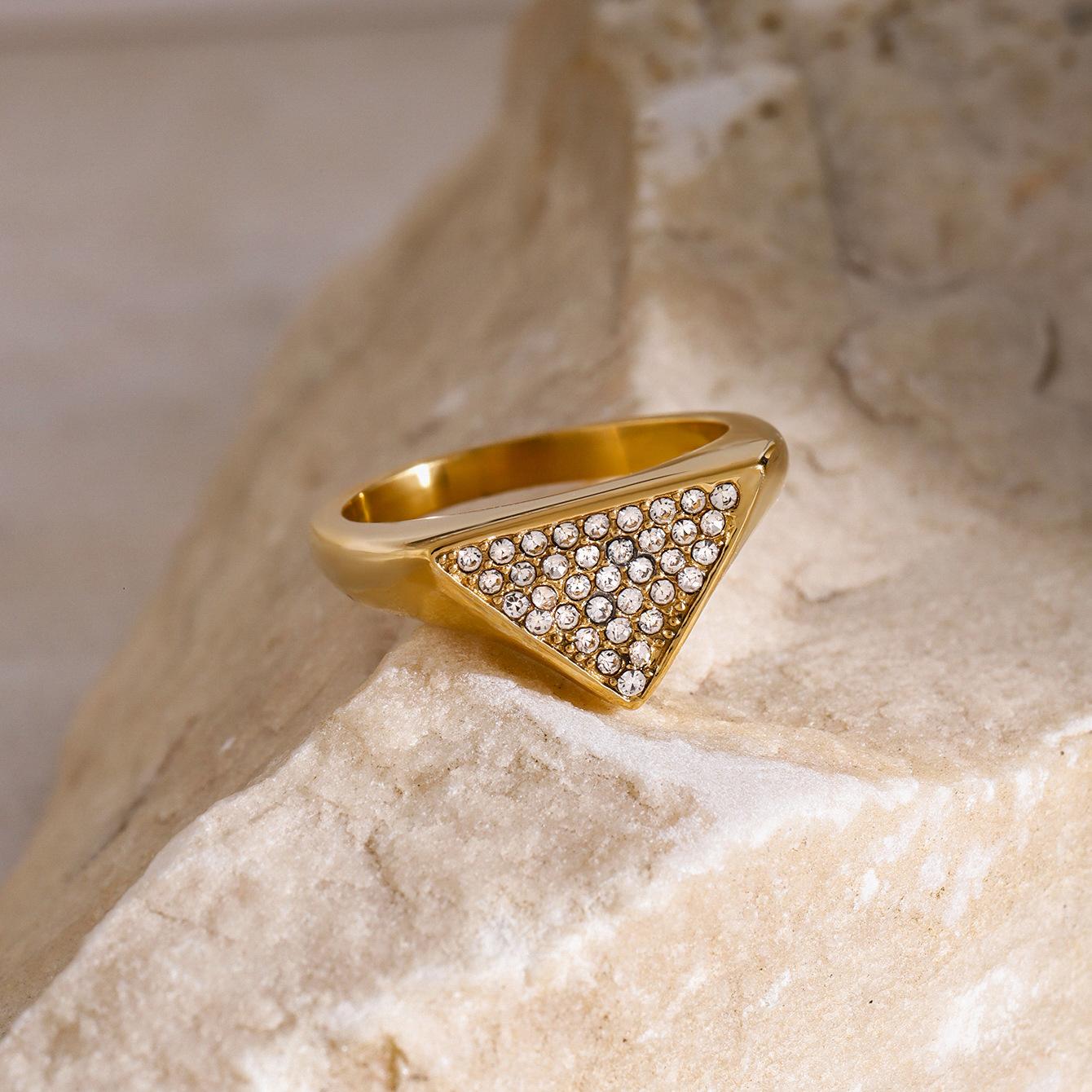 Anillo de acero de titanio con diseño geométrico simple, estilo transfronterizo europeo y americano, de acero inoxidable en oro de 18 quilates y diamantes de imitación triangulares para mujer.
