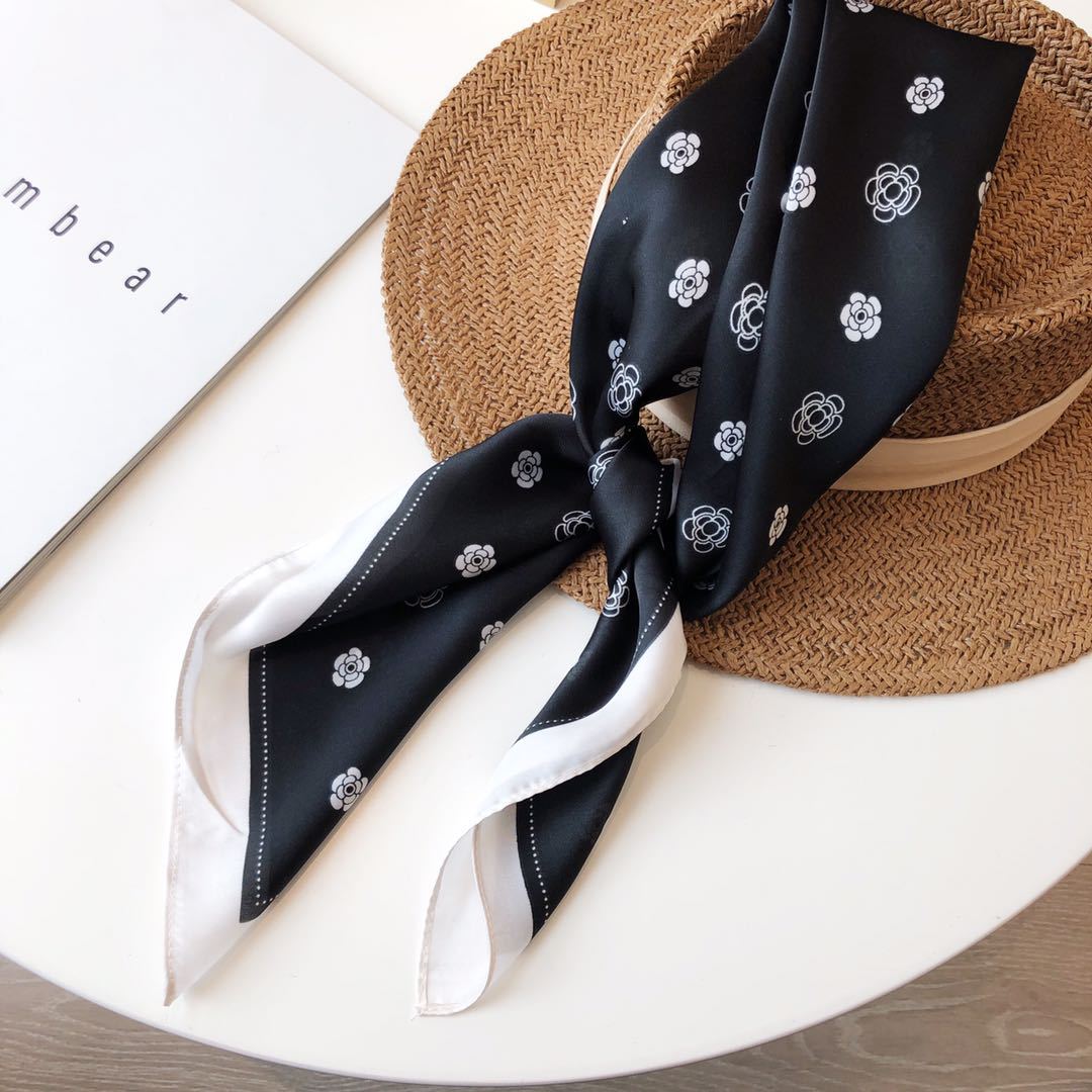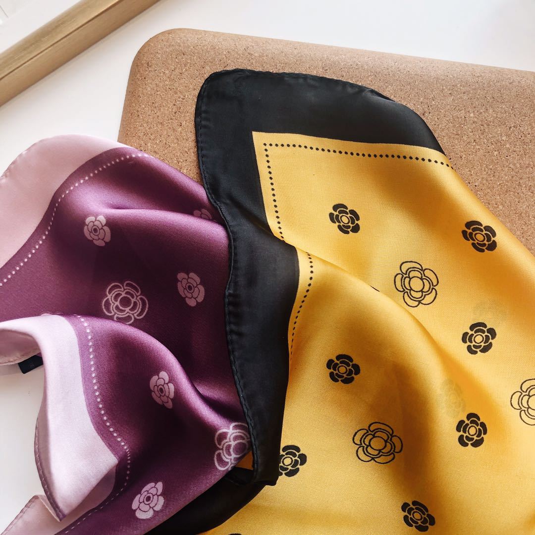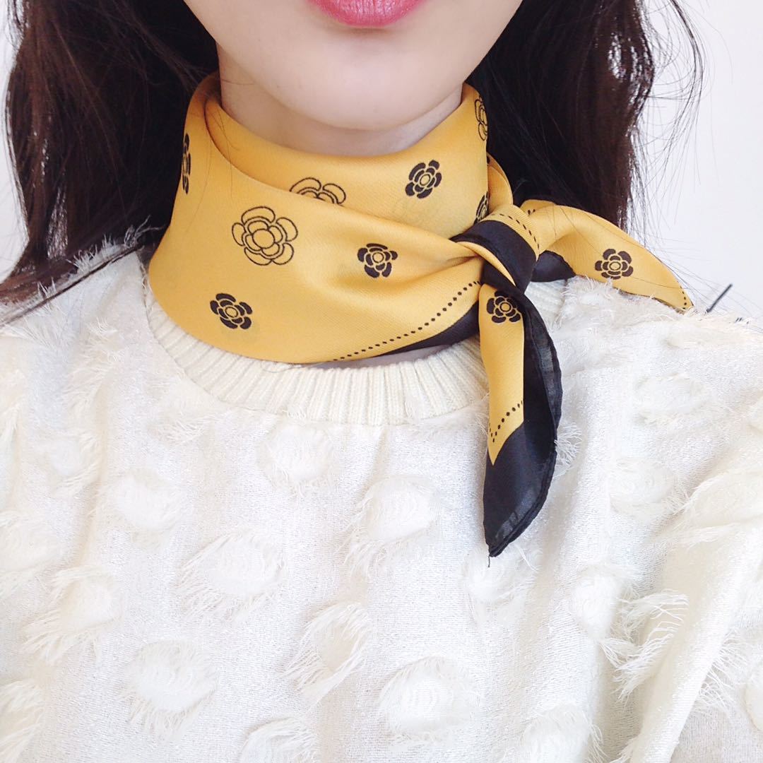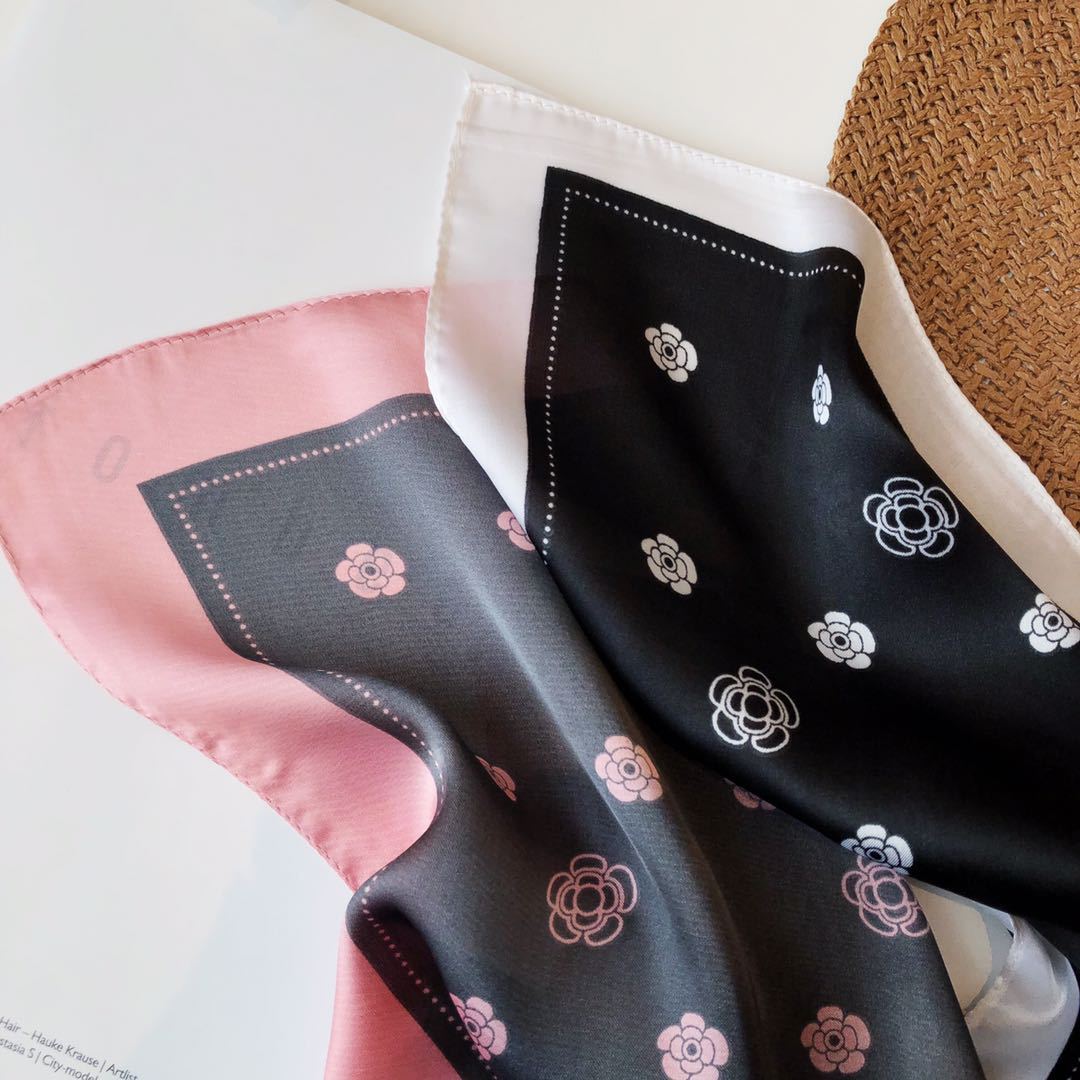 Bufanda de seda estilo coreano retro de camelia para primavera y otoño, decorativa, combinable, pequeña, bonita y cuadrada para mujer.