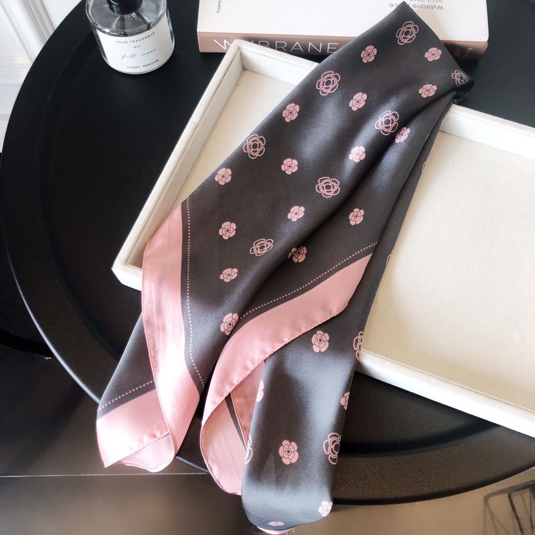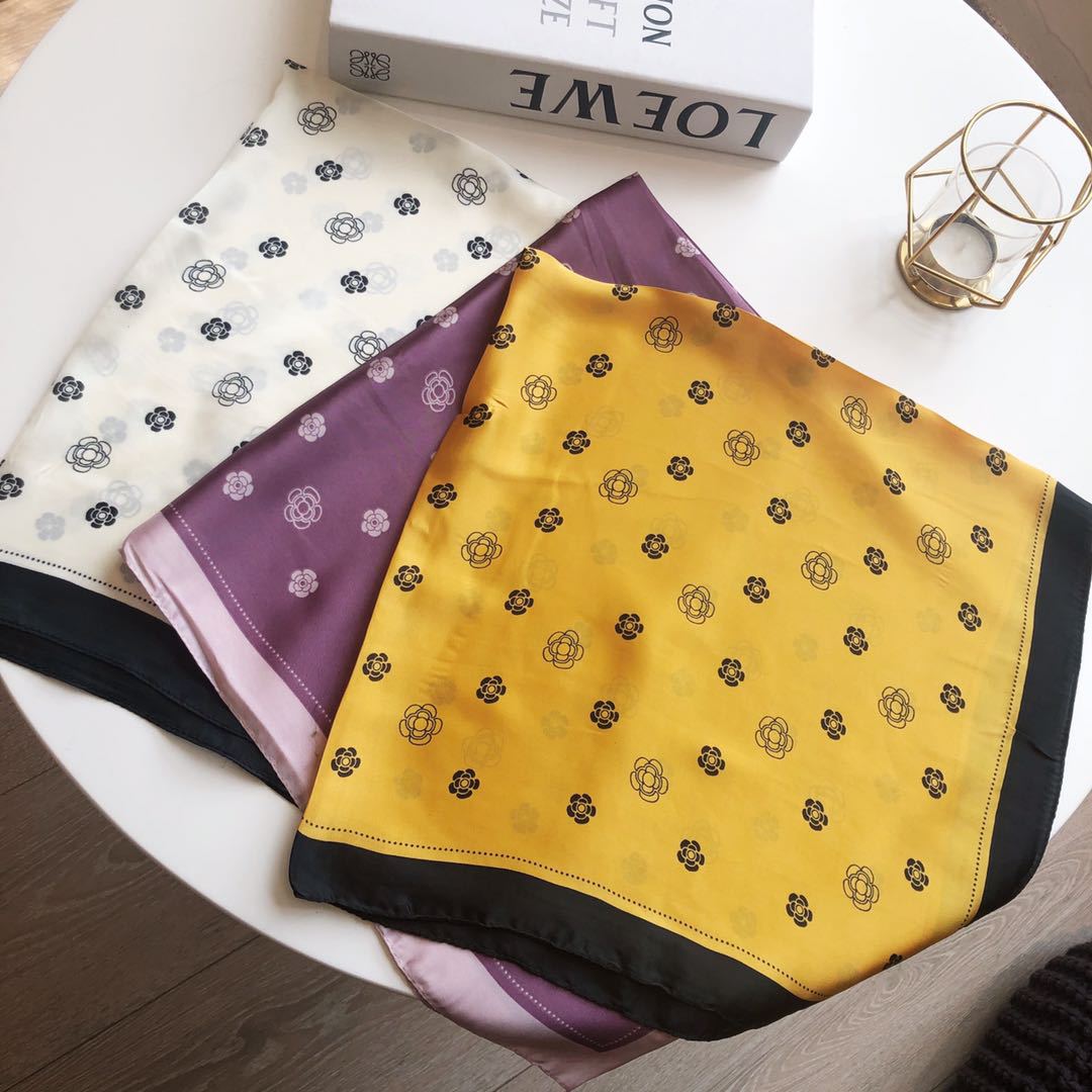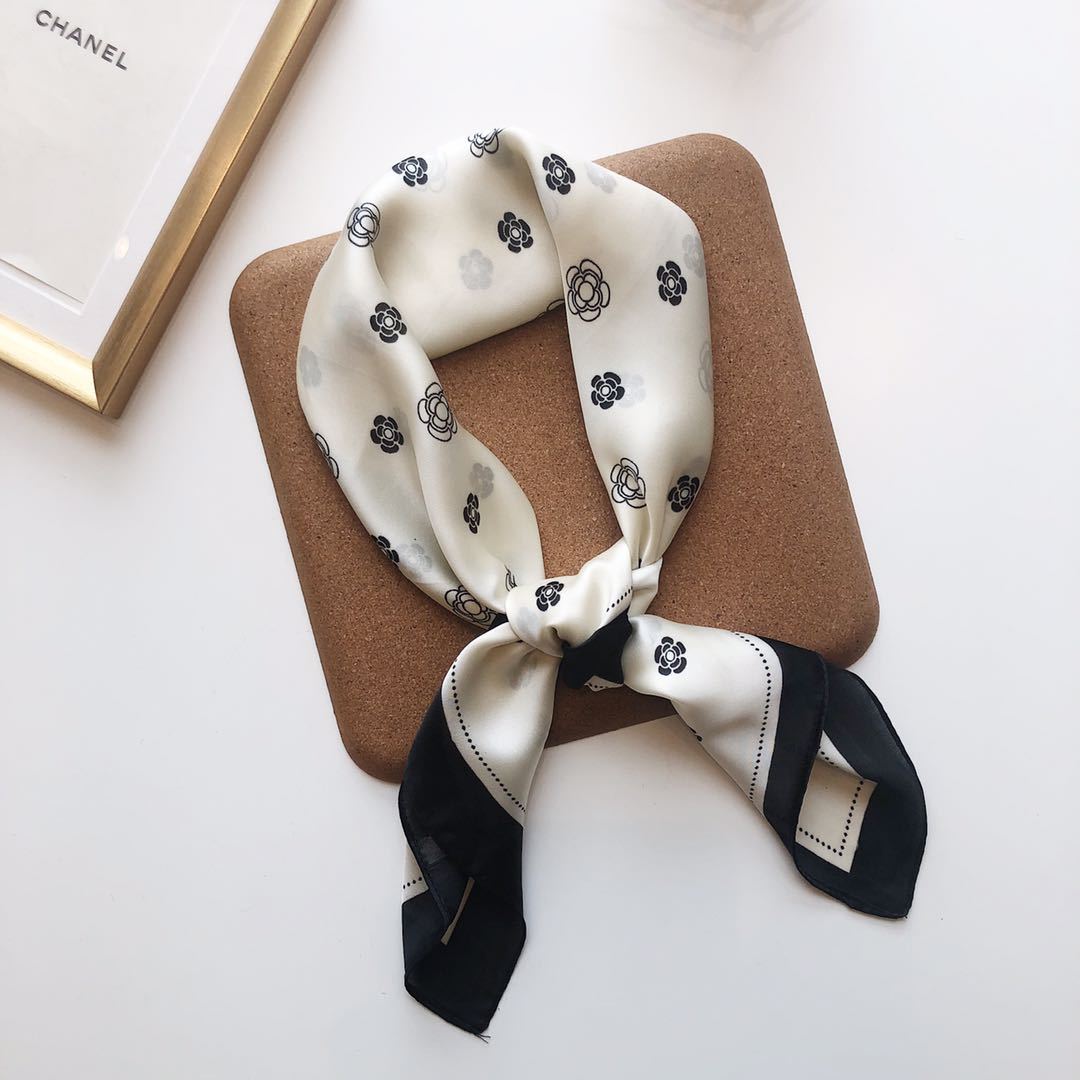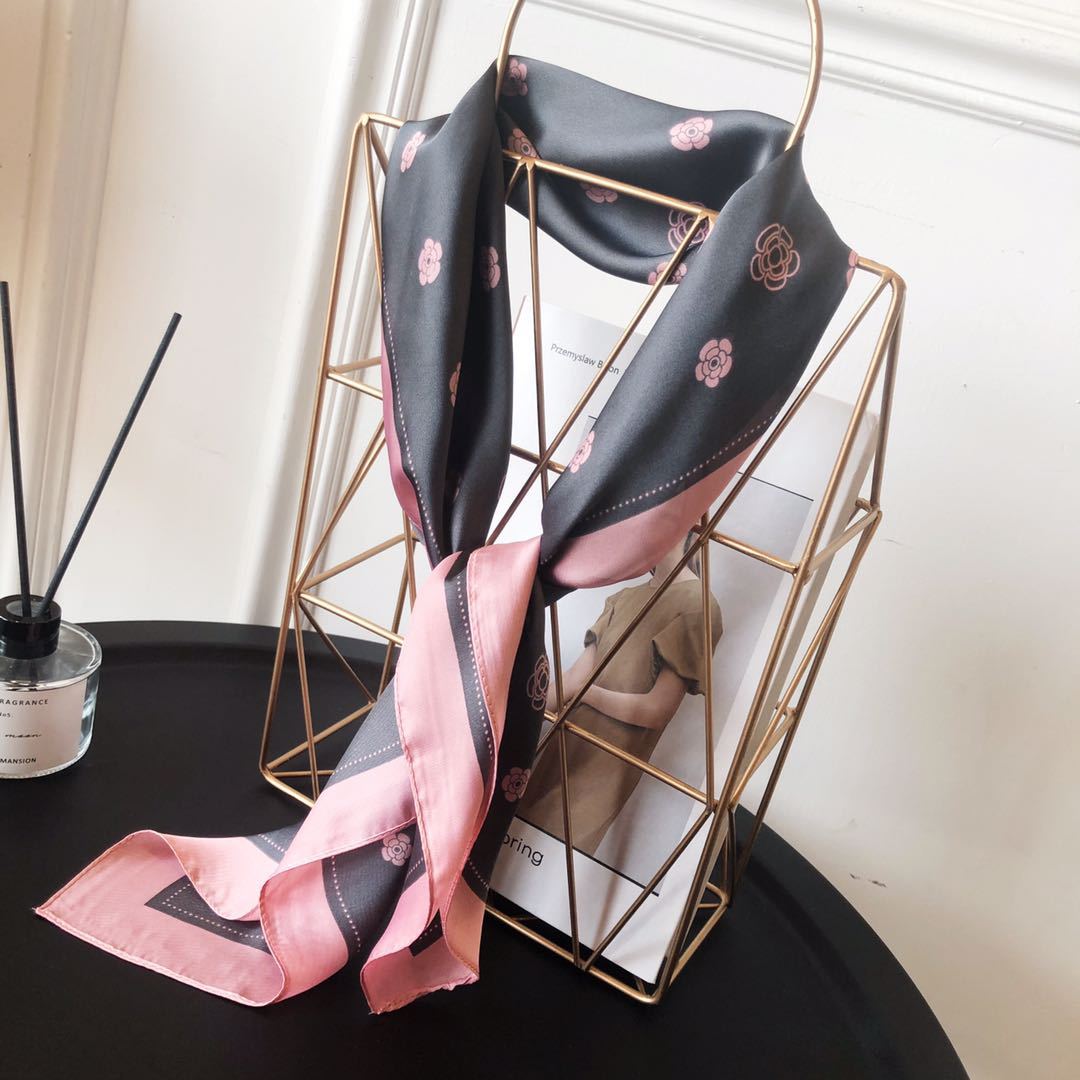 Bufanda de seda estilo coreano retro de camelia para primavera y otoño, decorativa, combinable, pequeña, bonita y cuadrada para mujer.
