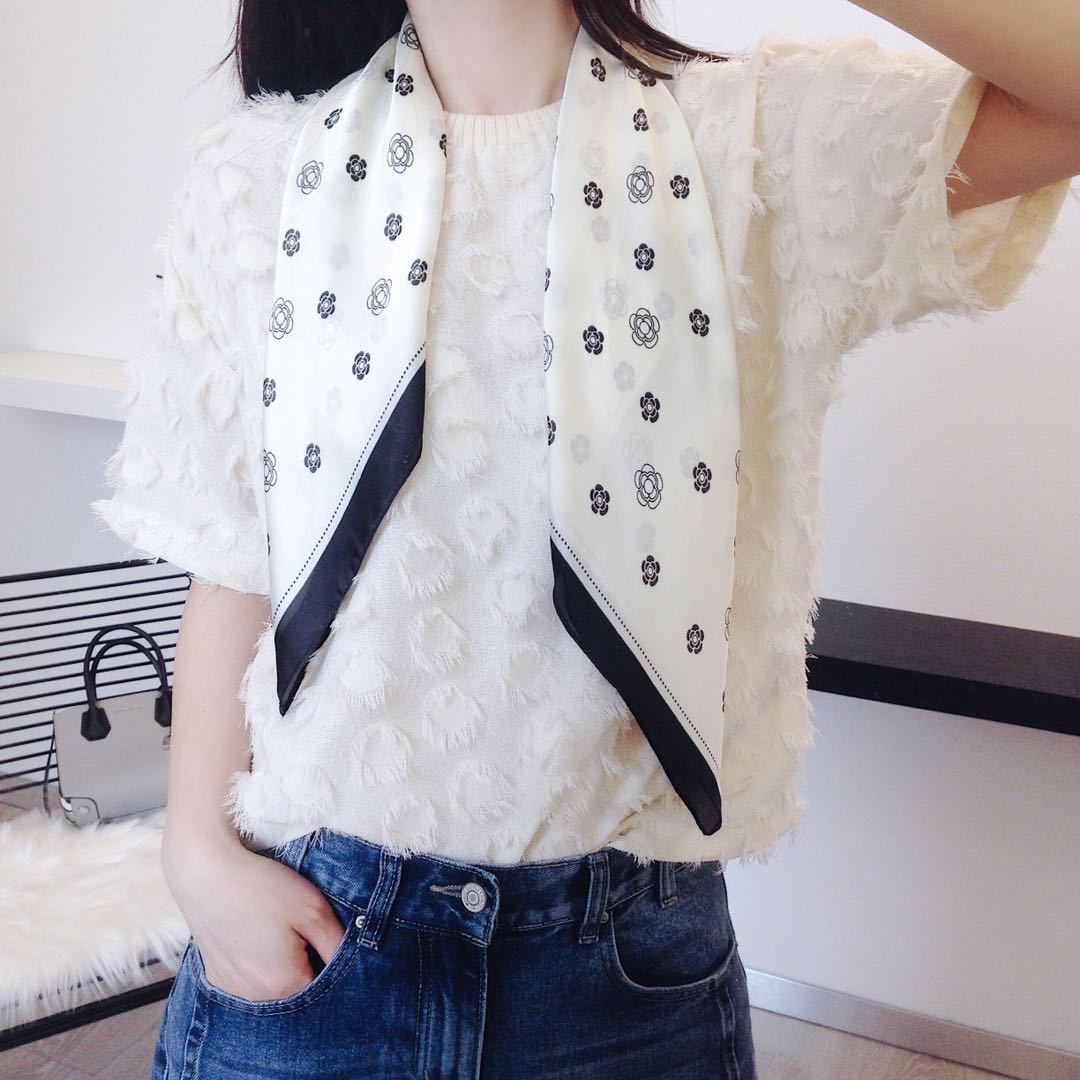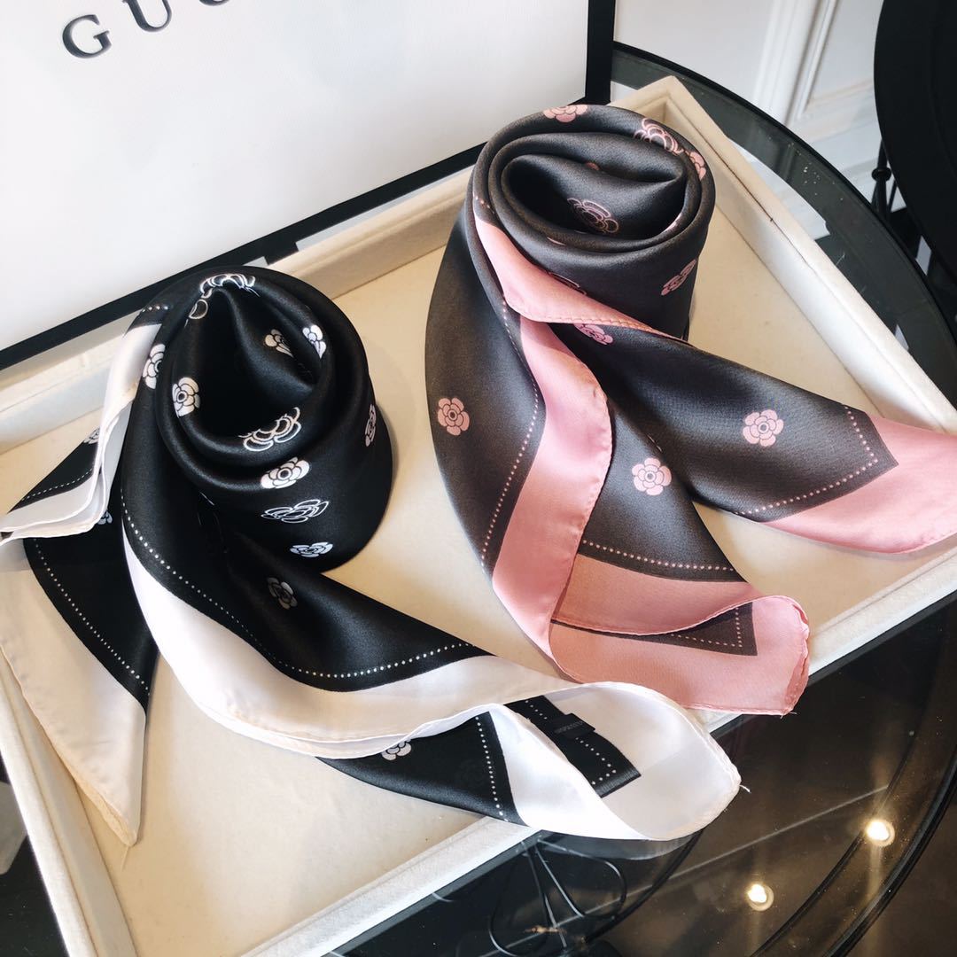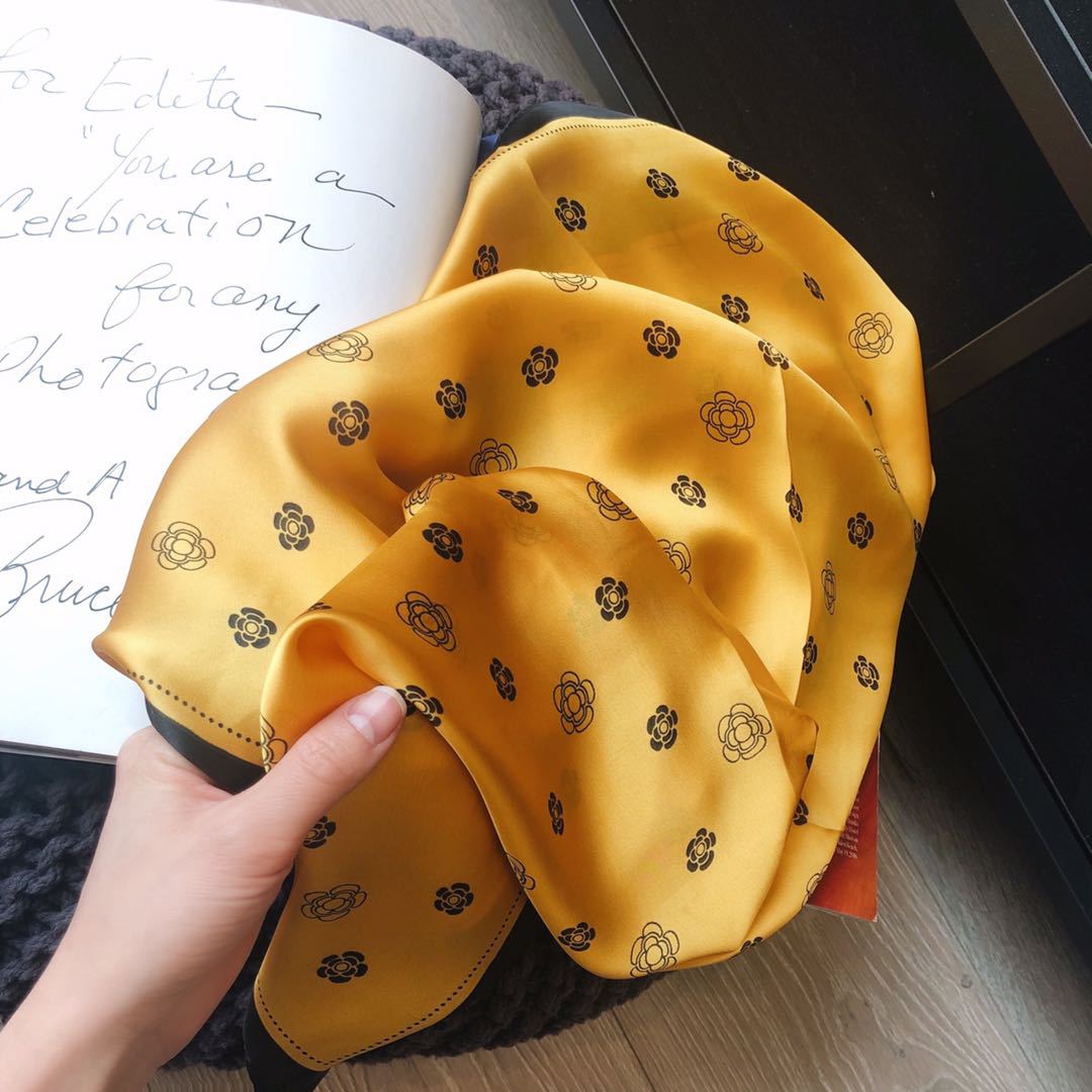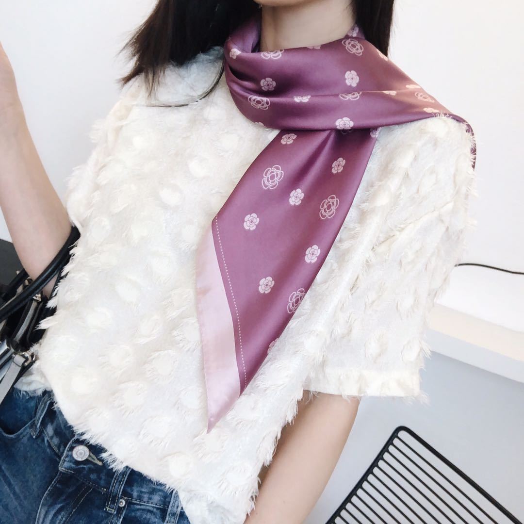 Bufanda de seda estilo coreano retro de camelia para primavera y otoño, decorativa, combinable, pequeña, bonita y cuadrada para mujer.