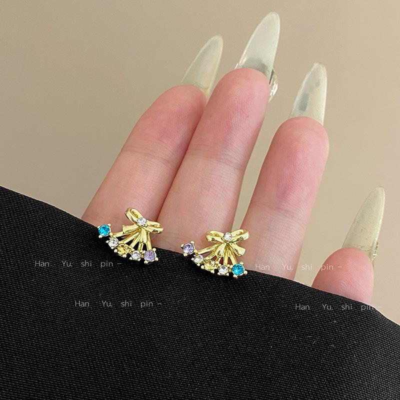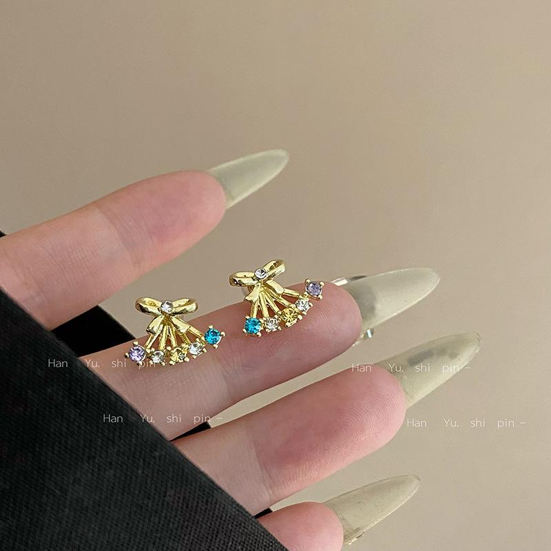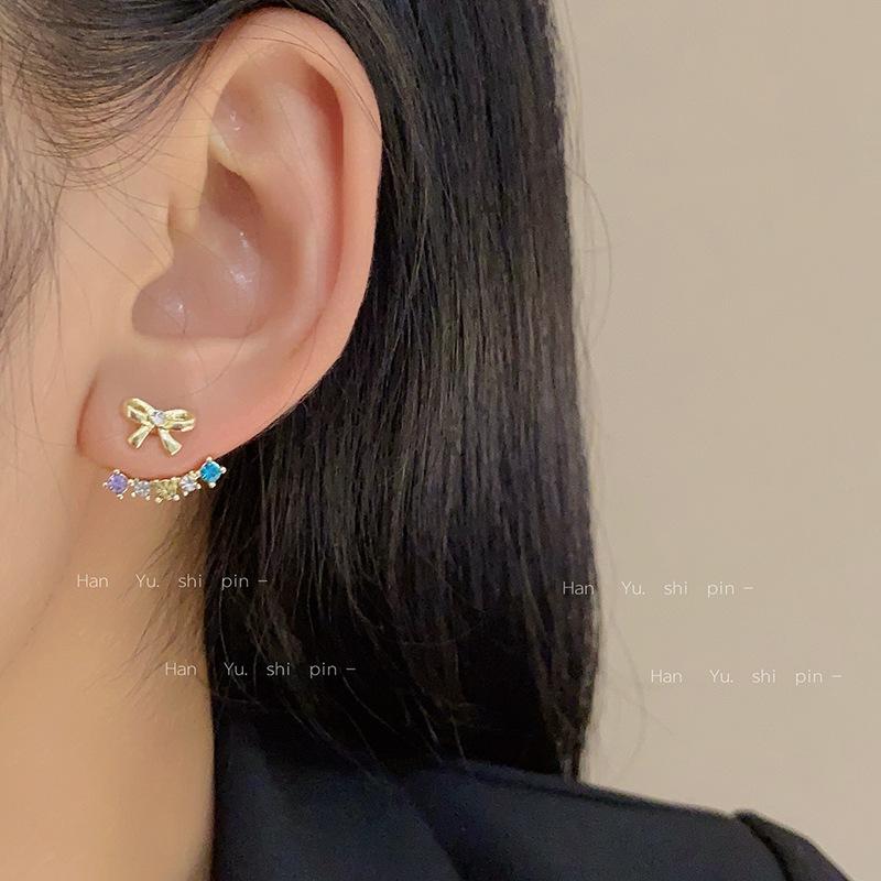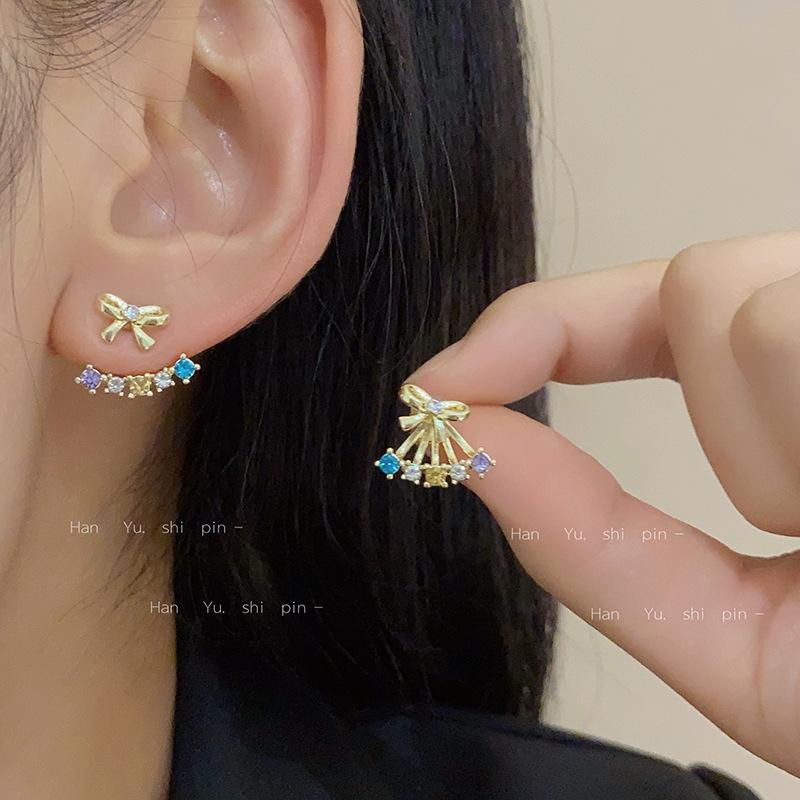 Brincos de laço coloridos verão nova moda todos os jogos dois-uso brincos de pino de prata simples requintado brincos doces
