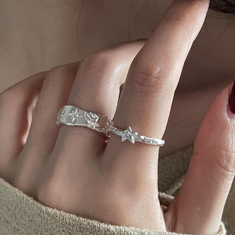 Anillo Estrella Dulce Cool para Mujer Geométrico Irregular Textura Relieve Exquisito Plata S925 Chapado Anillo Abierto para Dedo Anillo para Dedo Comida Marea