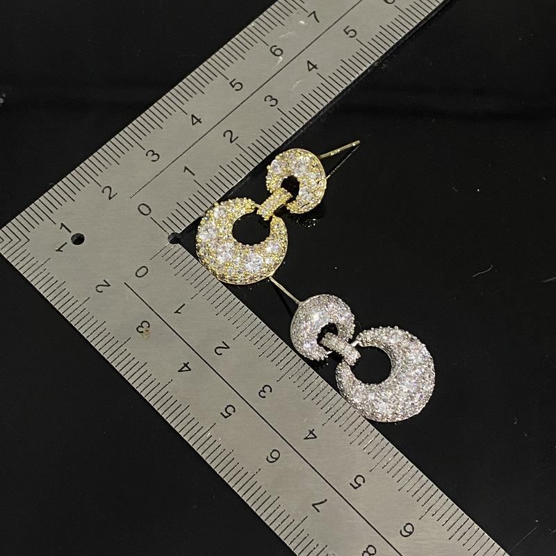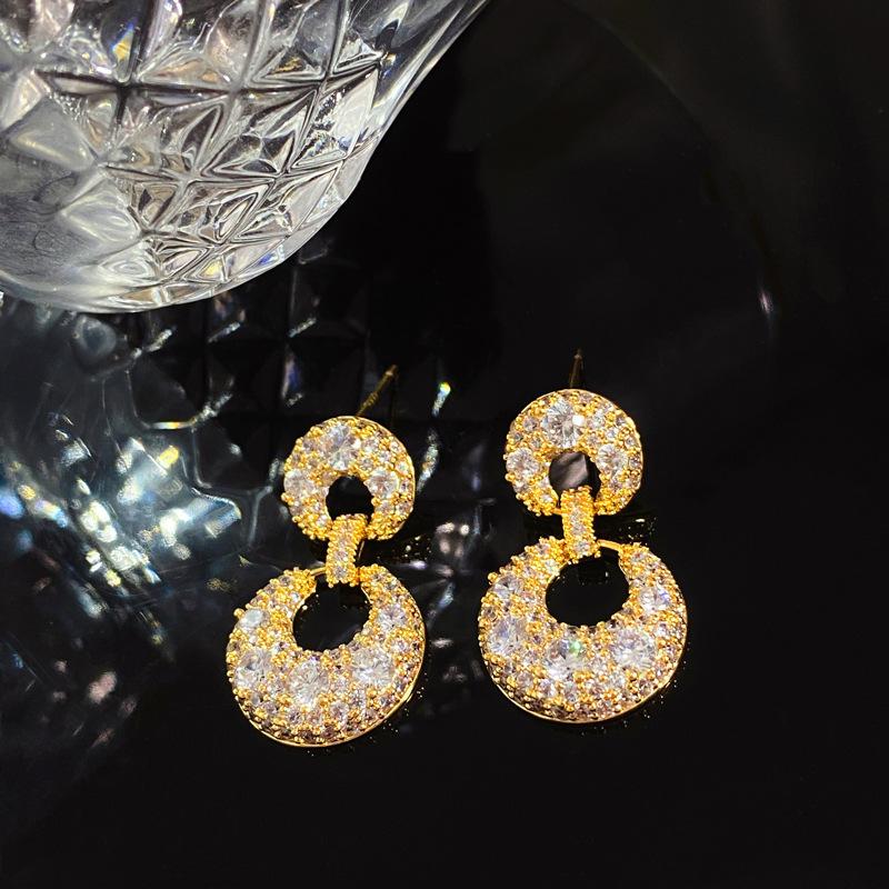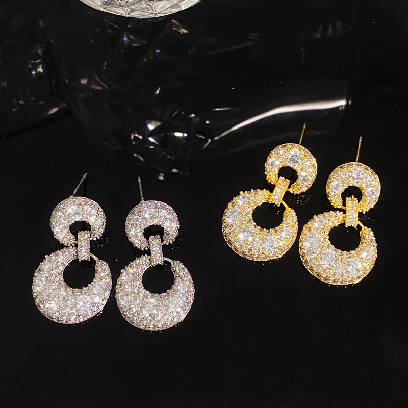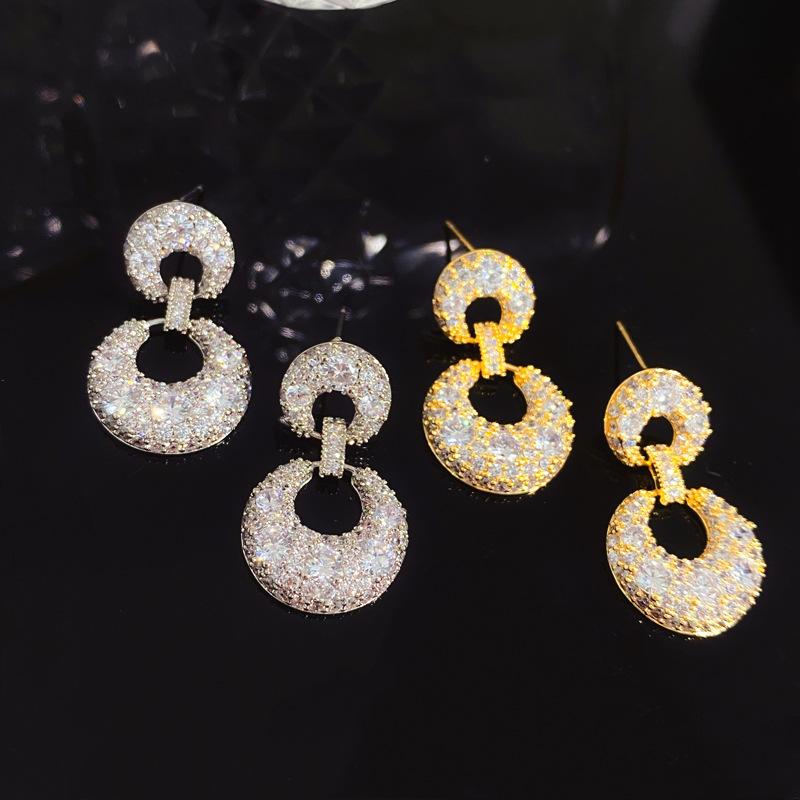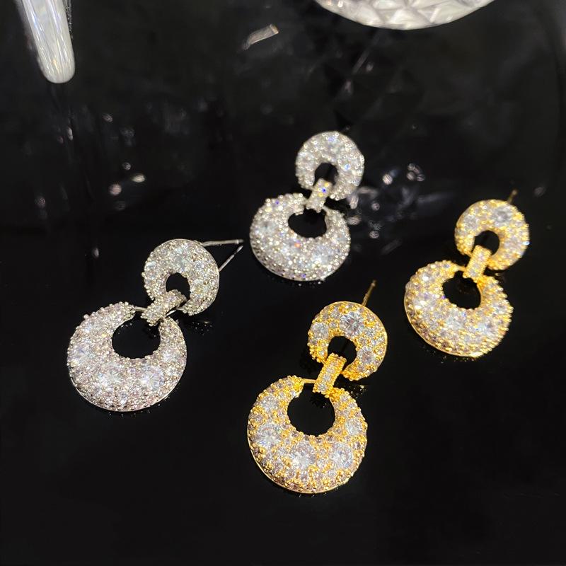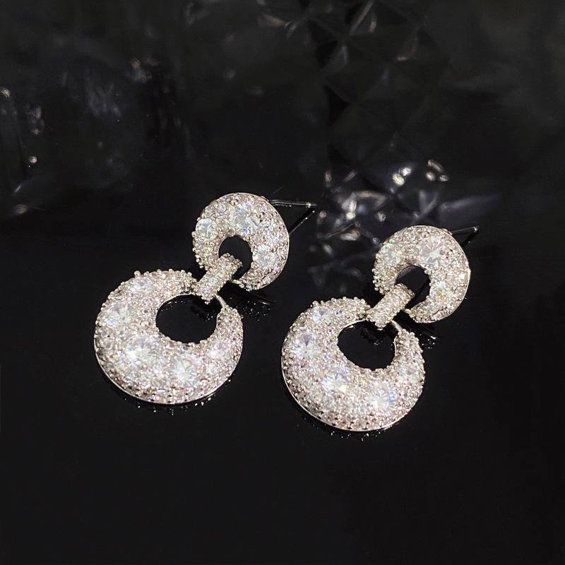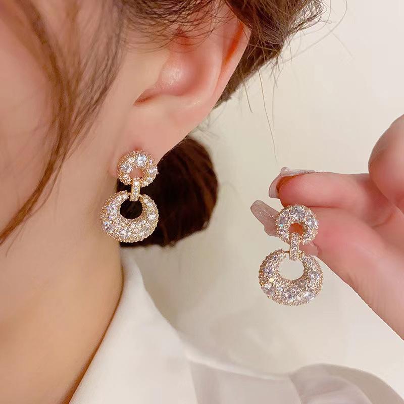 Pendientes de estilo coreano con diseño de nicho elegante y de alta calidad, de lujo, con luz y diamantes, de tamaño superbrillante y doble anillo redondo.