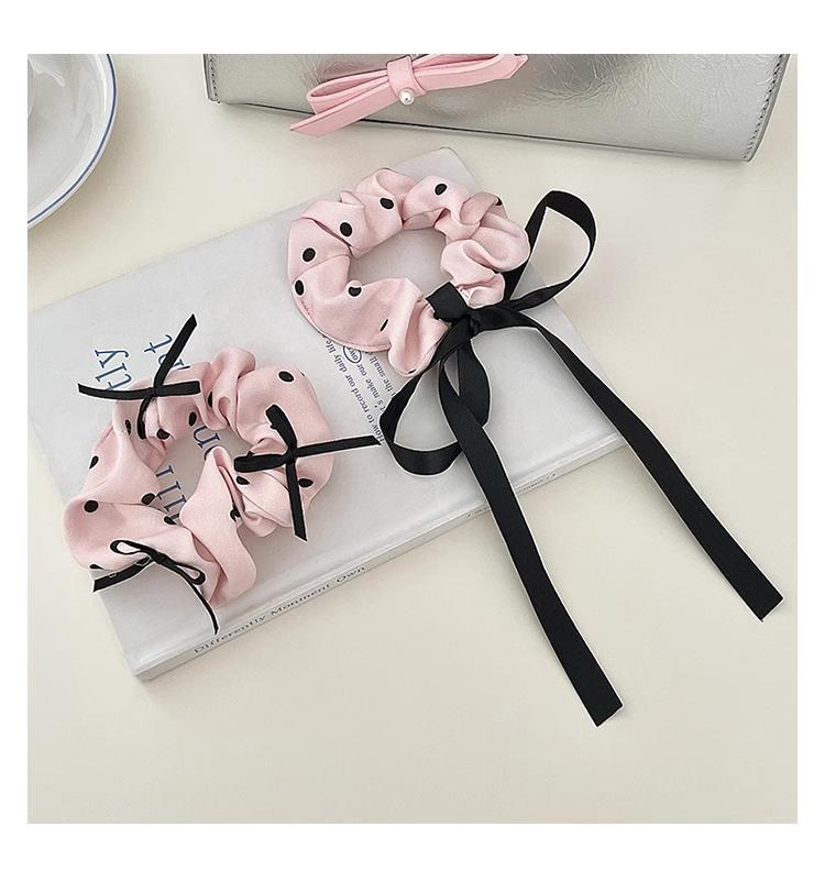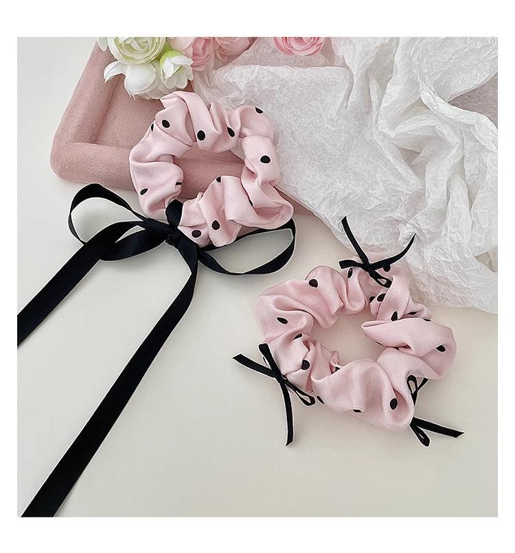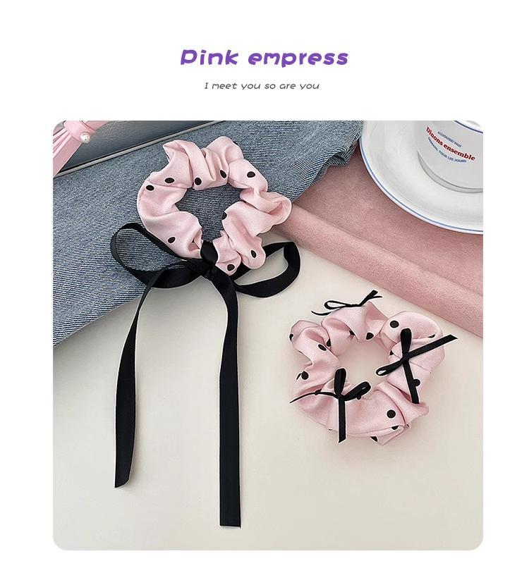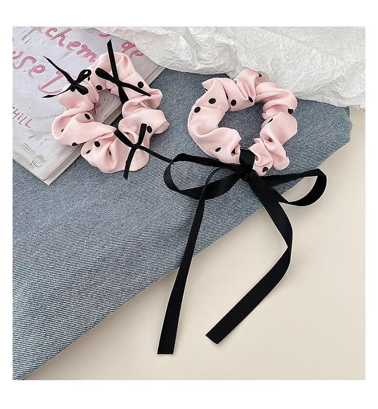 Anillo para el cabello de satén con lunares rosas para el intestino grueso, lazo de alta gama para mujer, cuerda para el cabello estilo ballet francés, accesorios para el cabello