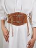 Patrón de Bola de Cuero Cinturilla Exterior con Clavo de Bronce para Mujer Decorativa Moldeadora de Cuerpo Cintura Hebilla Metálica Retro Europea y Americana Cinturilla Elástica