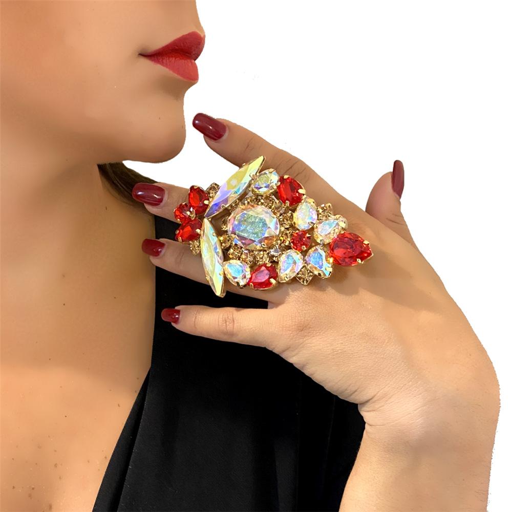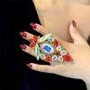 AliExpress Joyería Transfronteriza Caliente Moda Simple Geométrico Anillo de Pedrería Colorido Lujo Europeo y Americano Anillo de Pedrería