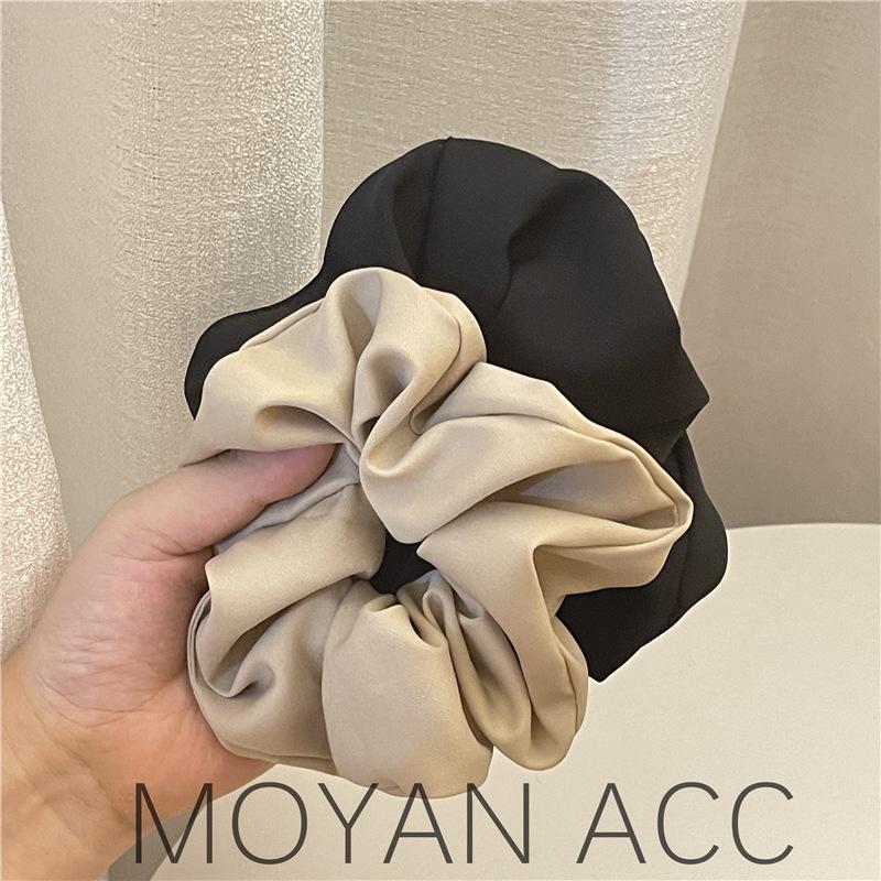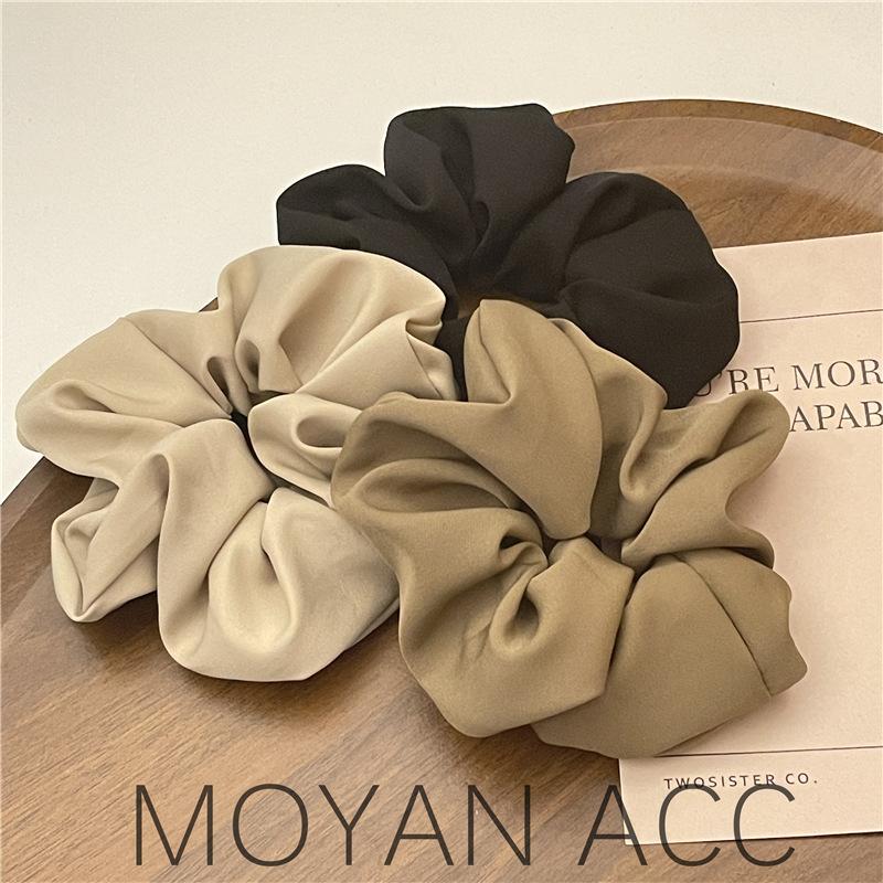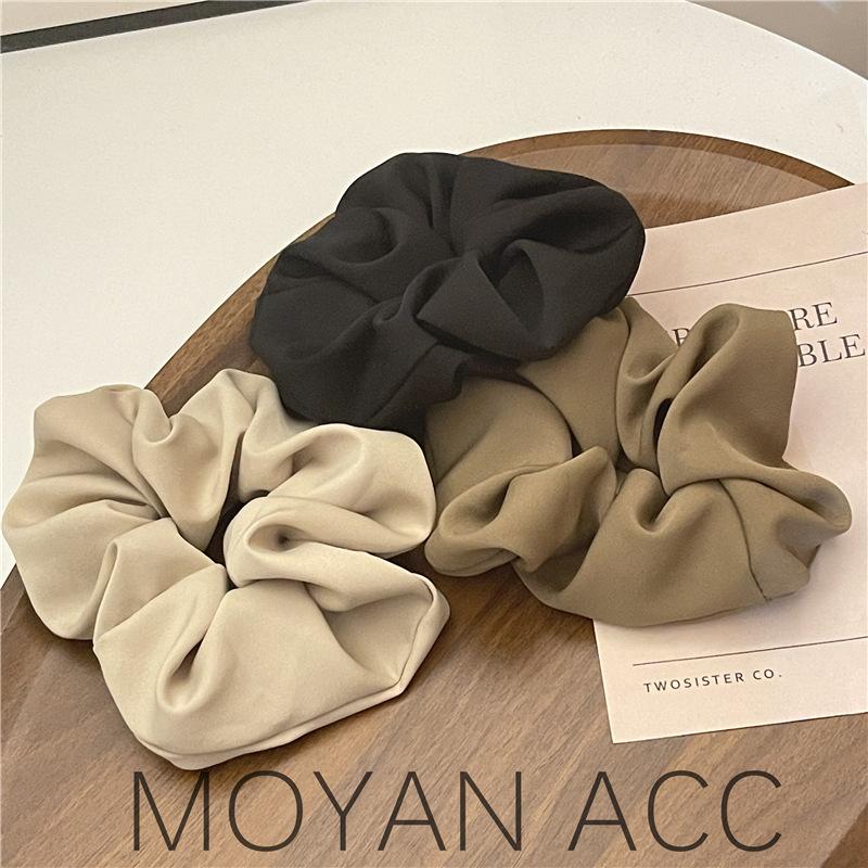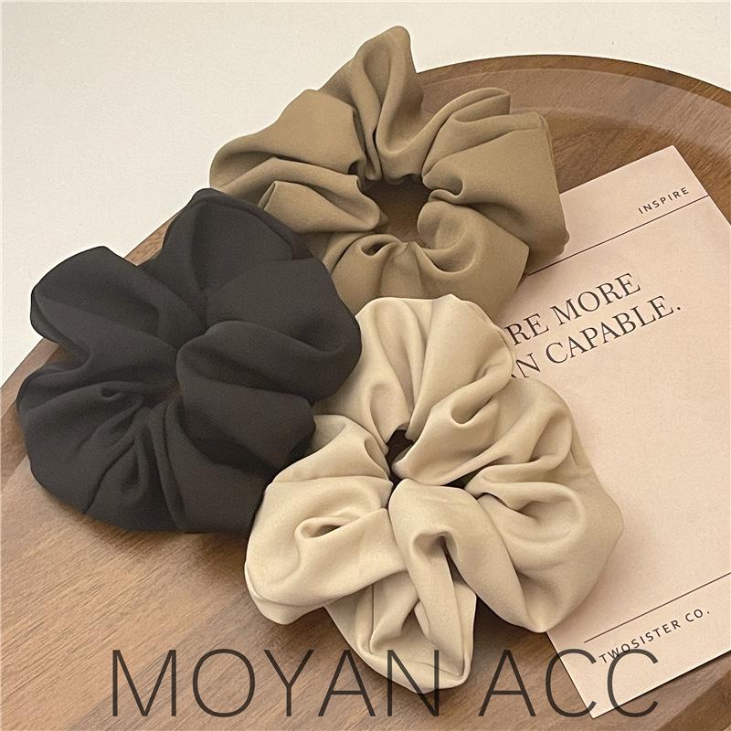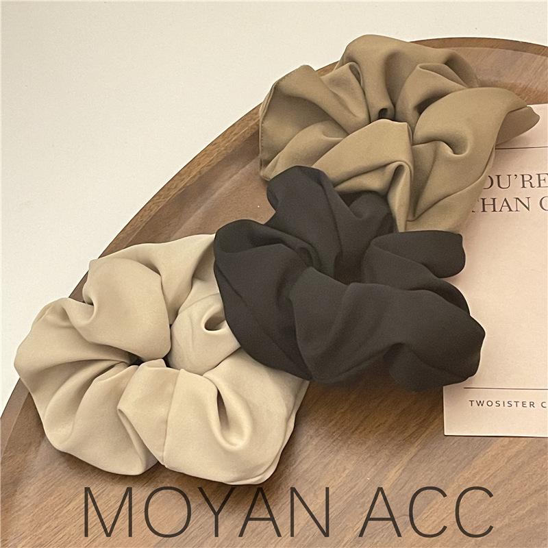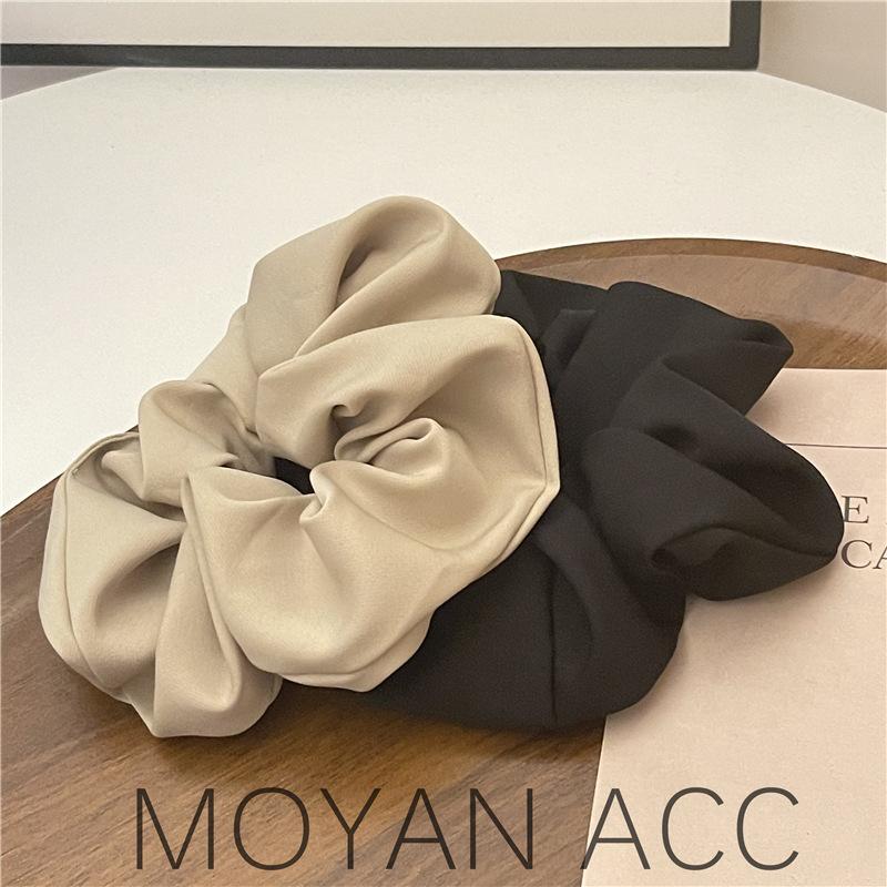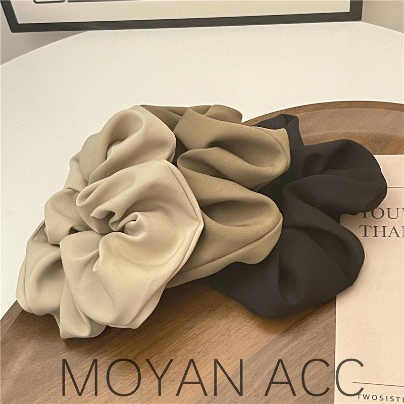 Sentido de Alta Gama ~ Anillo para el Cabello de Intestino Grueso de Color Puro Estilo Coreano, Tejido de Traje Elegante Retro, Cuerda para el Cabello Plisada, Diadema de Bola