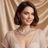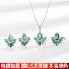 Conjunto de dos piezas de pendientes de novia grandes con esmeralda, estilo europeo y americano, con microincrustaciones de circonita y diamantes.