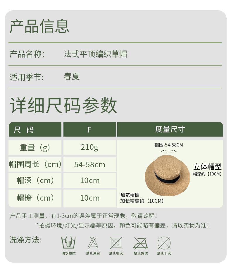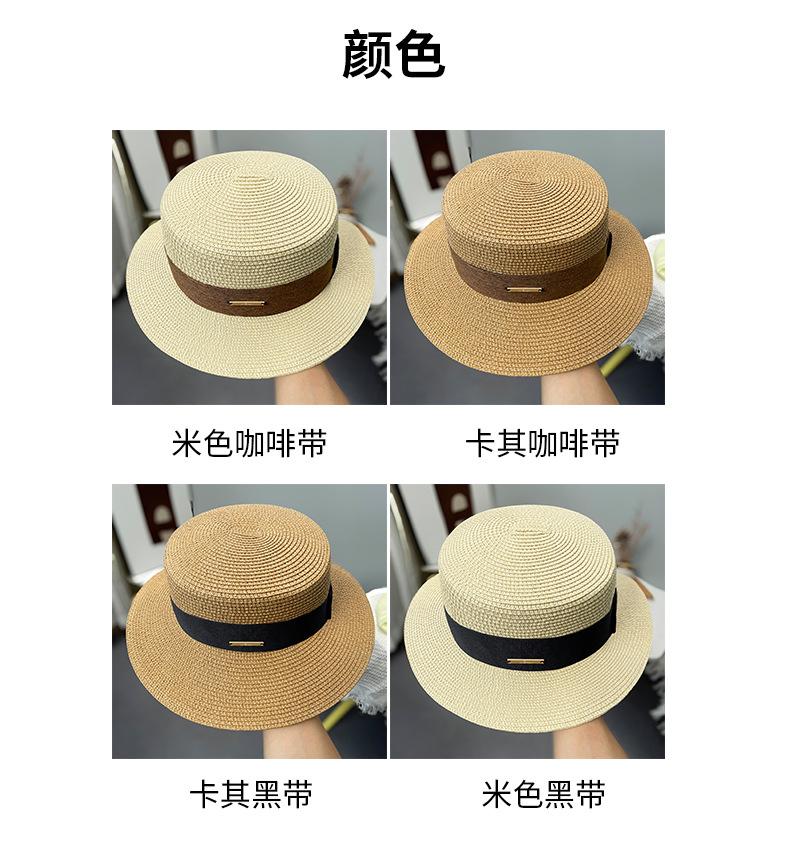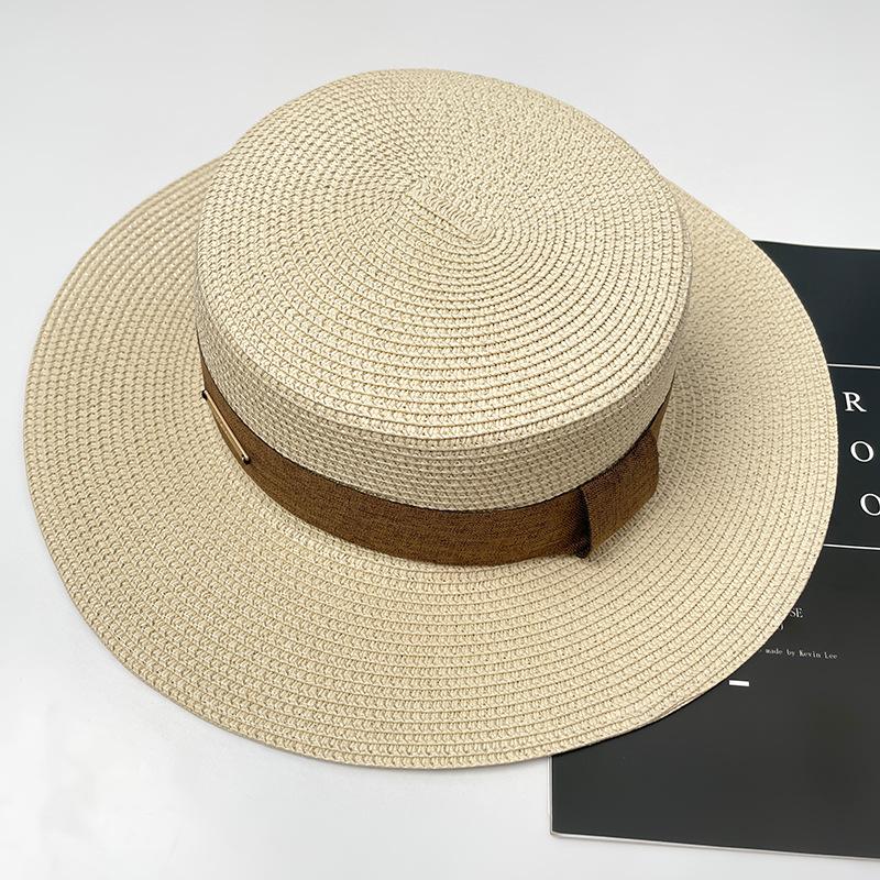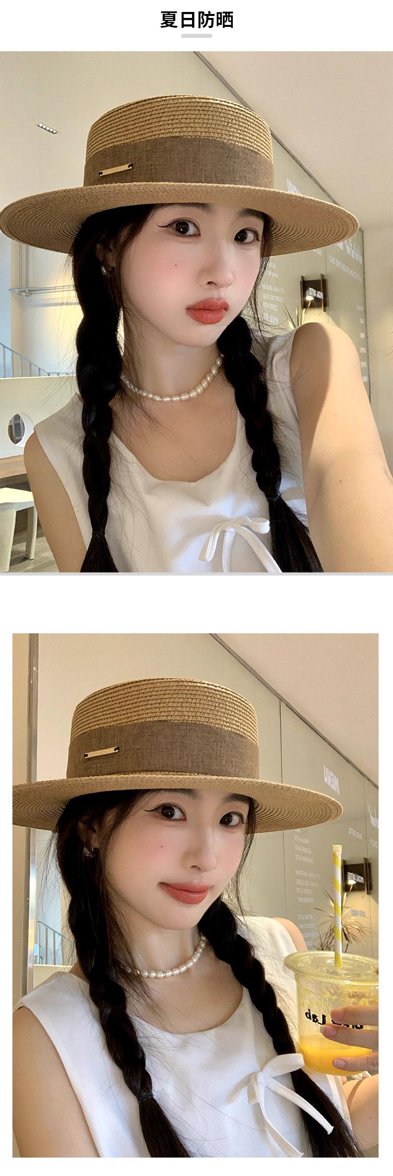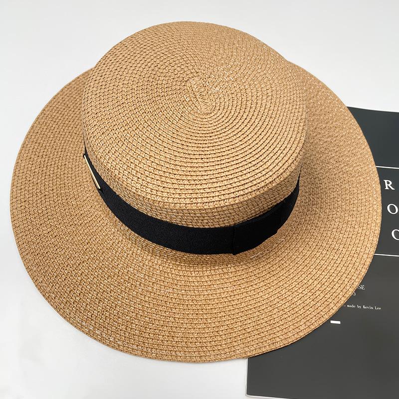 Sombrero de Paja Coreano de Copa Plana Sombrero de Paja para Mujer Sombrero Retro de Verano Sombrero de Playa para la Costa Sombrero de Sol de Ala Ancha para Protección Solar