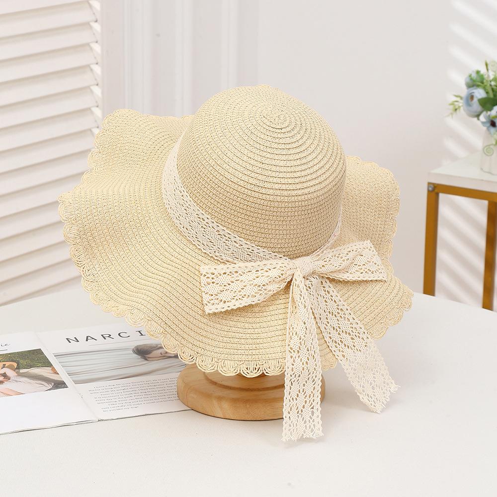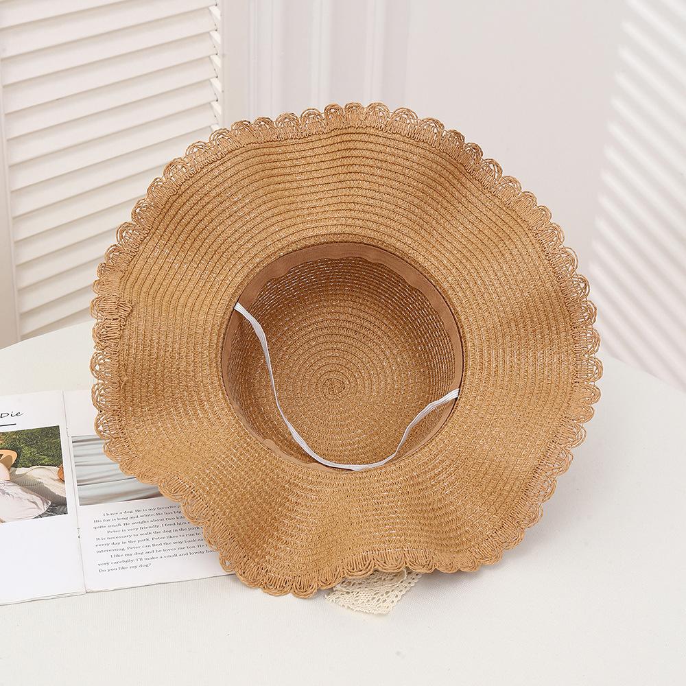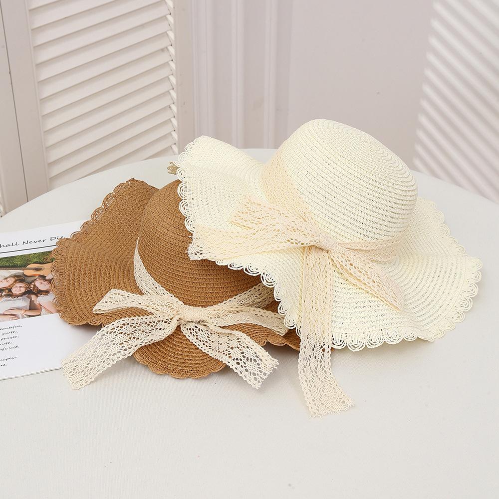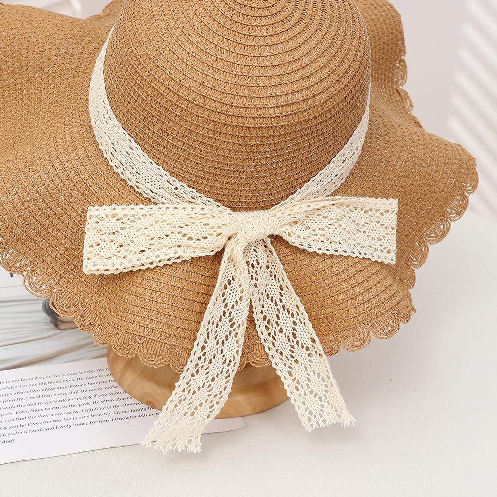 Sombrero de paja con lazo para verano, sombrero de playa con encaje, sombrero de ala grande para el sol, sombrero de mujer al por mayor