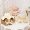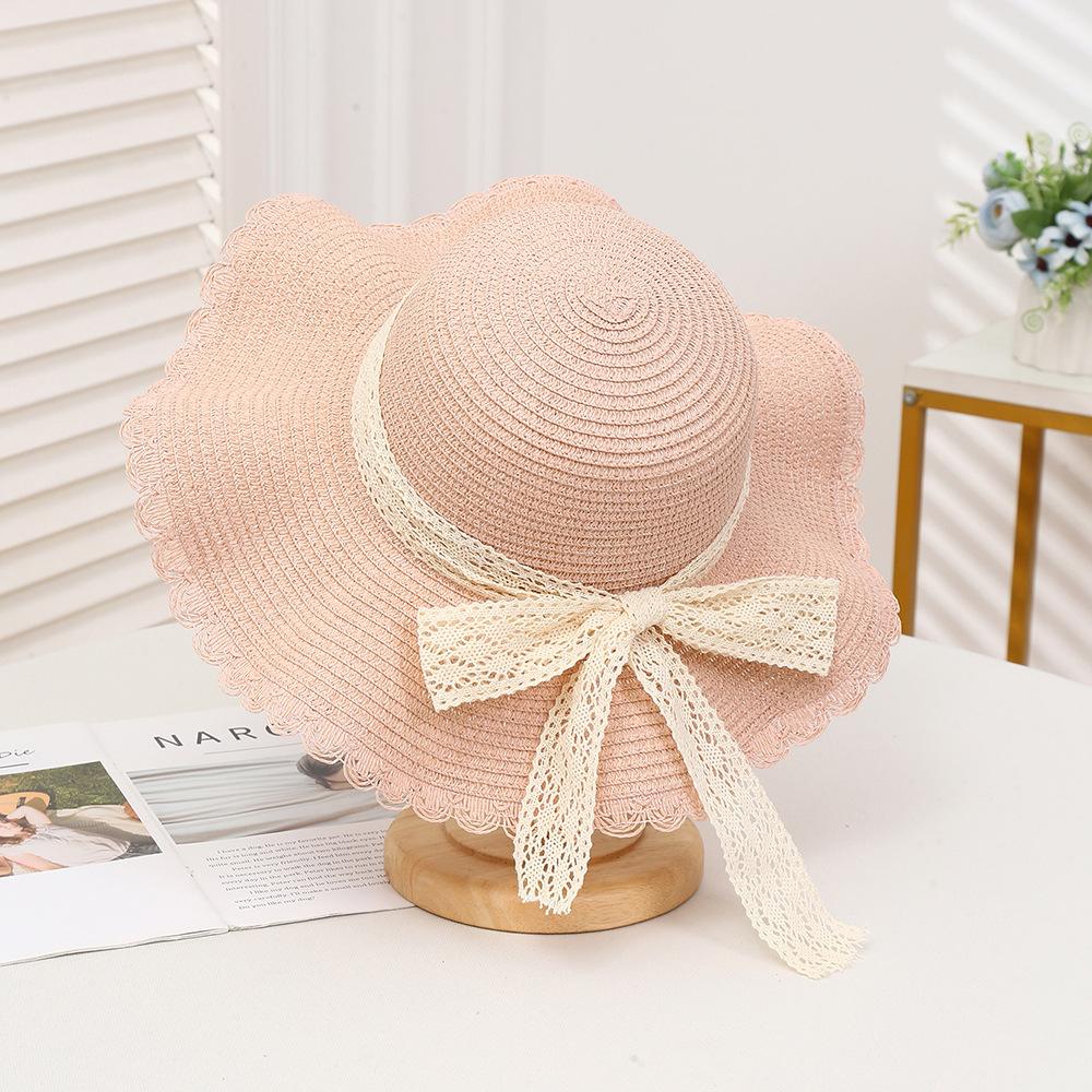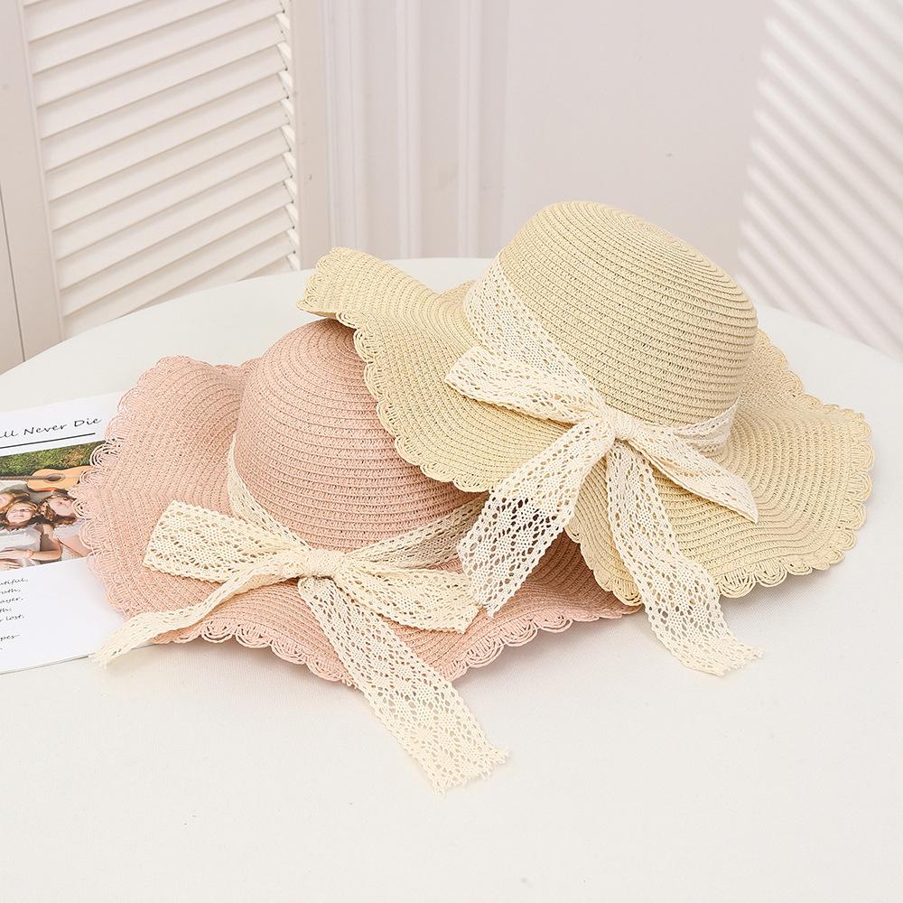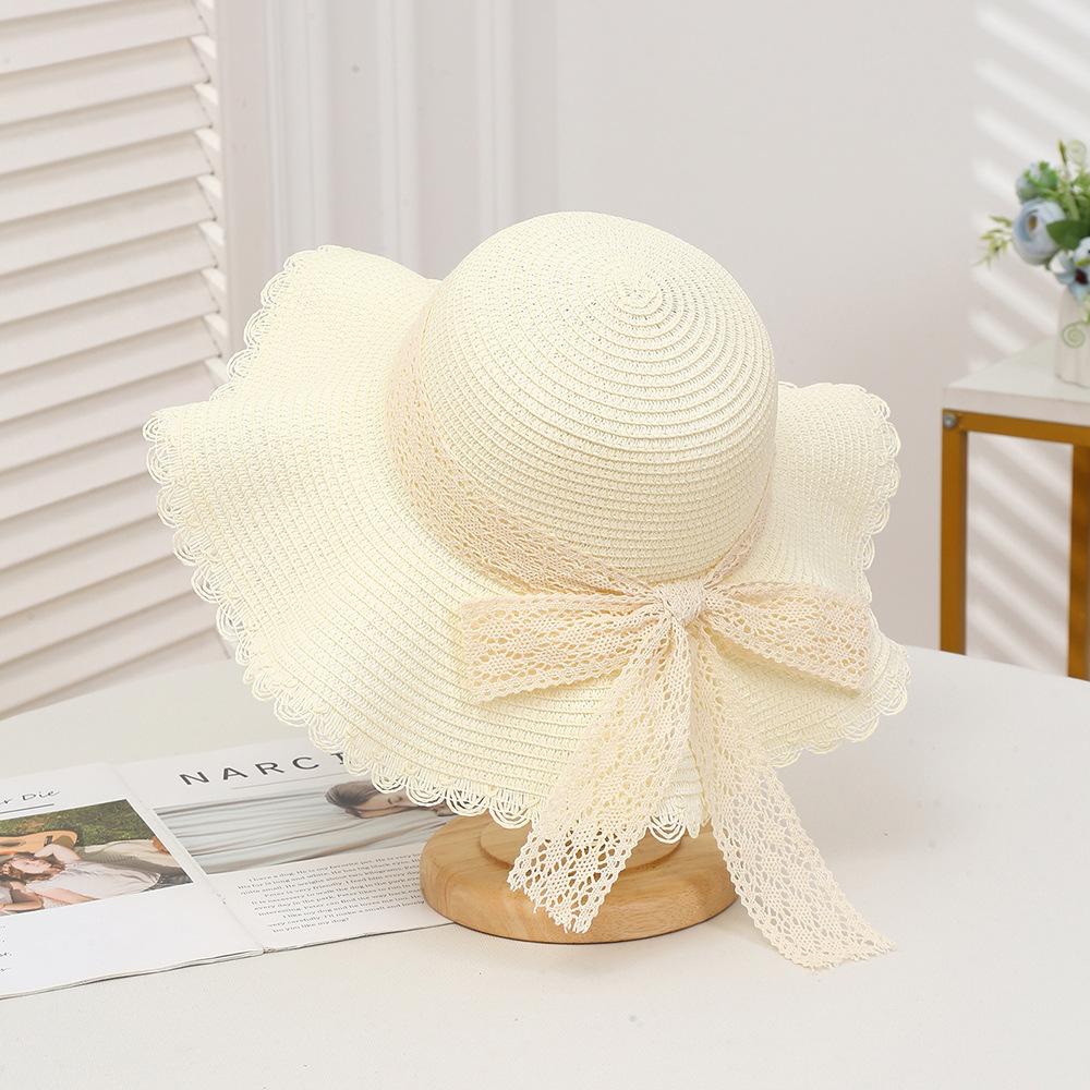 Sombrero de paja con lazo para verano, sombrero de playa con encaje, sombrero de ala grande para el sol, sombrero de mujer al por mayor