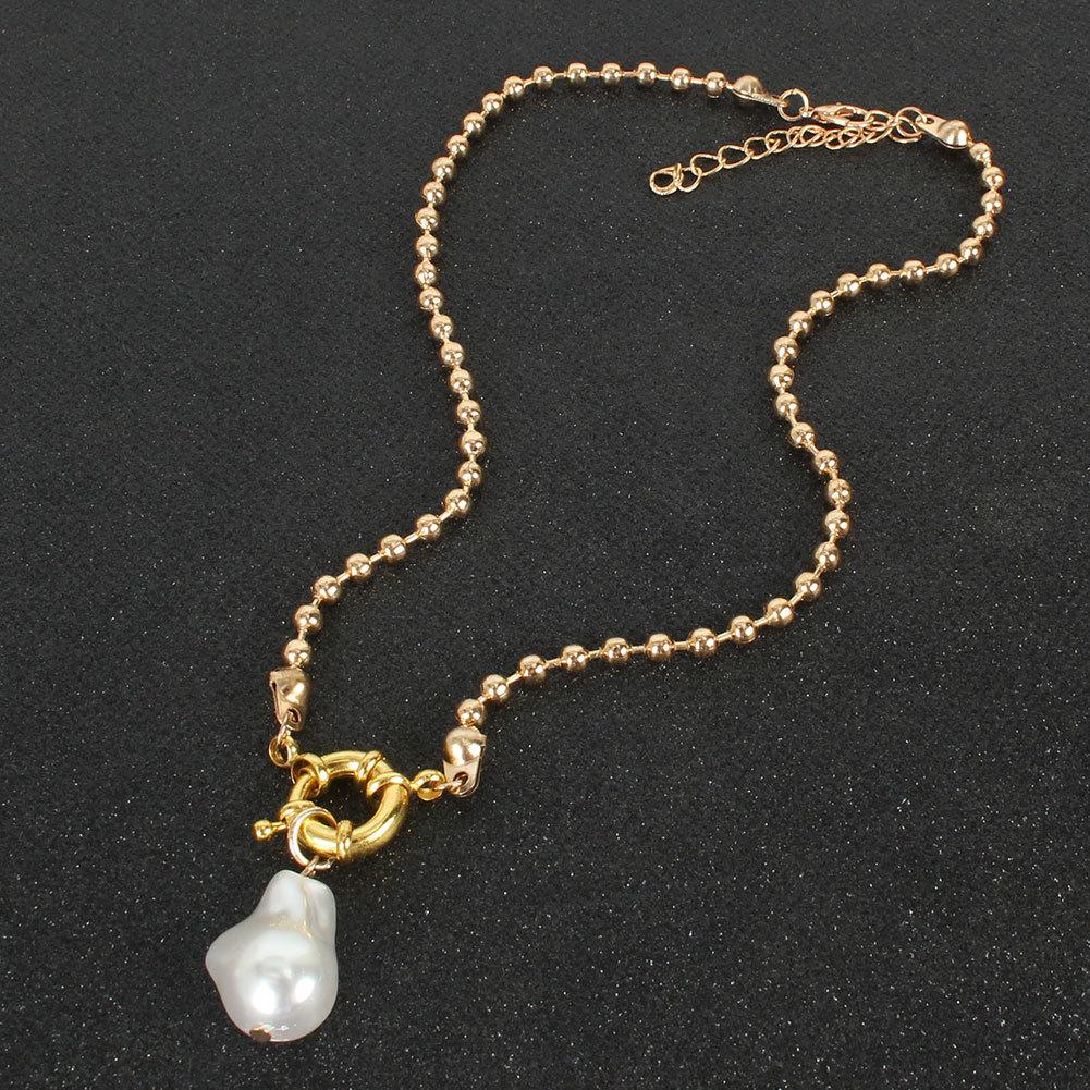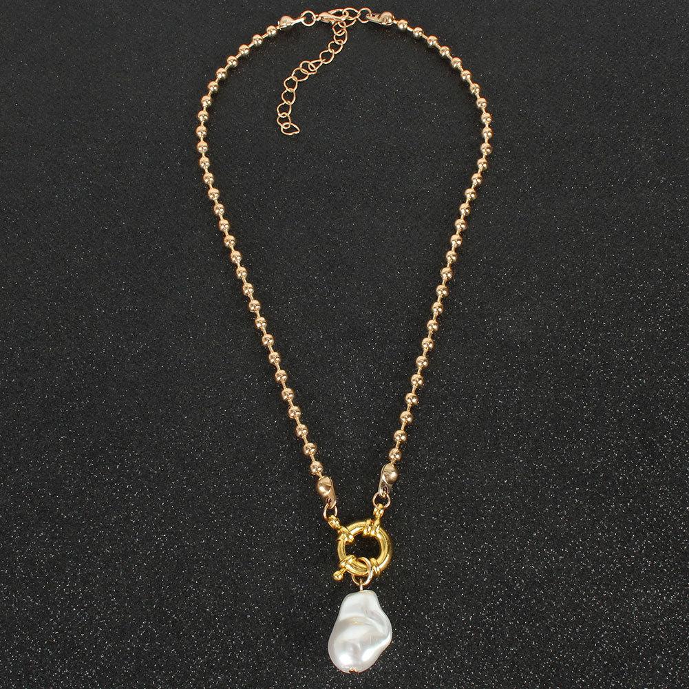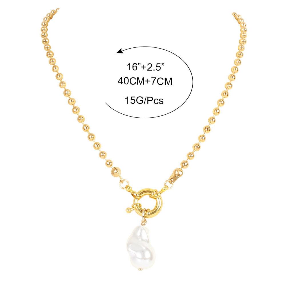 Collar con colgante de perla de imitación con cadena de bolas doradas y personalidad transfronteriza, estilo europeo y americano, 15540