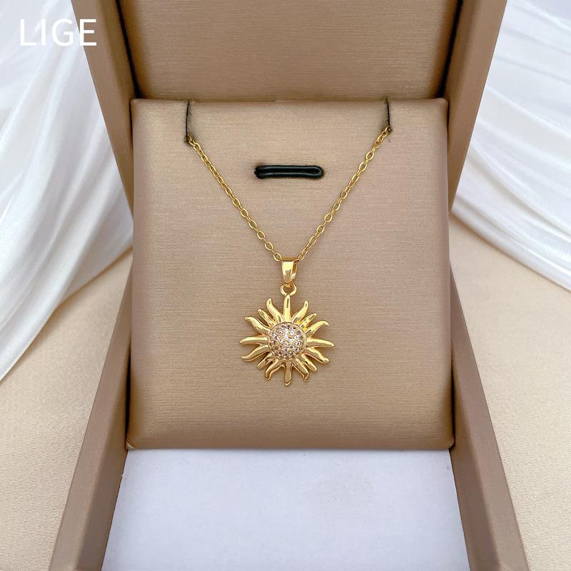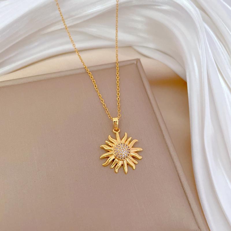 [Acero de titanio] Collar de diamantes elegante y lujoso con diseño de girasoles y cadena de clavícula para mujer, de acero de titanio.