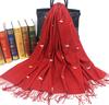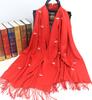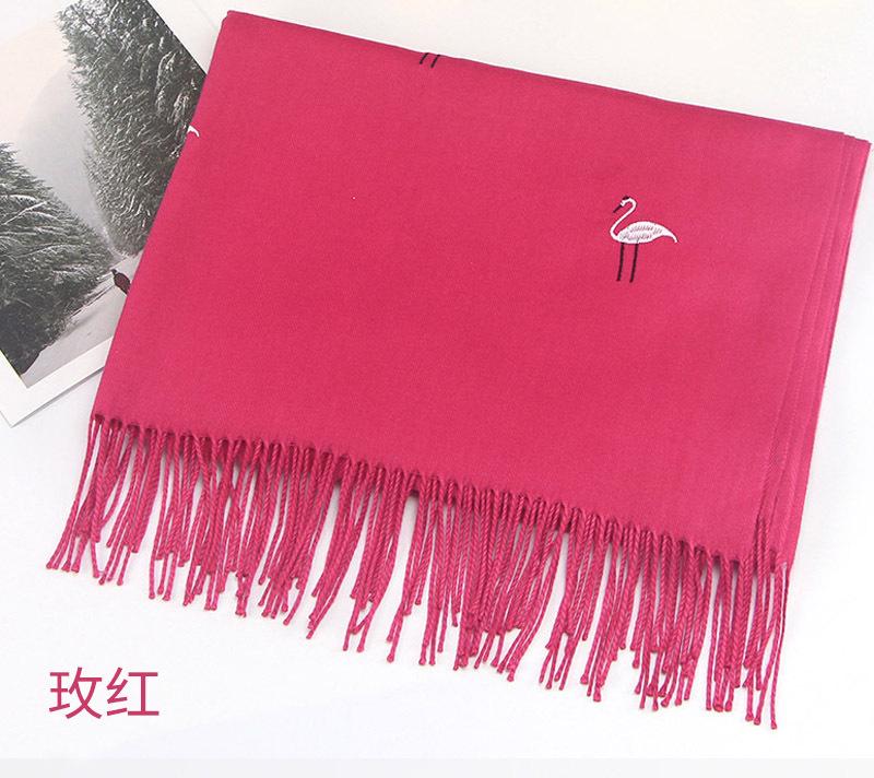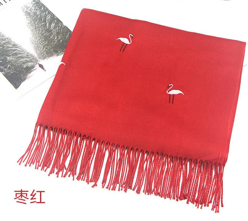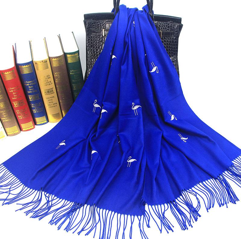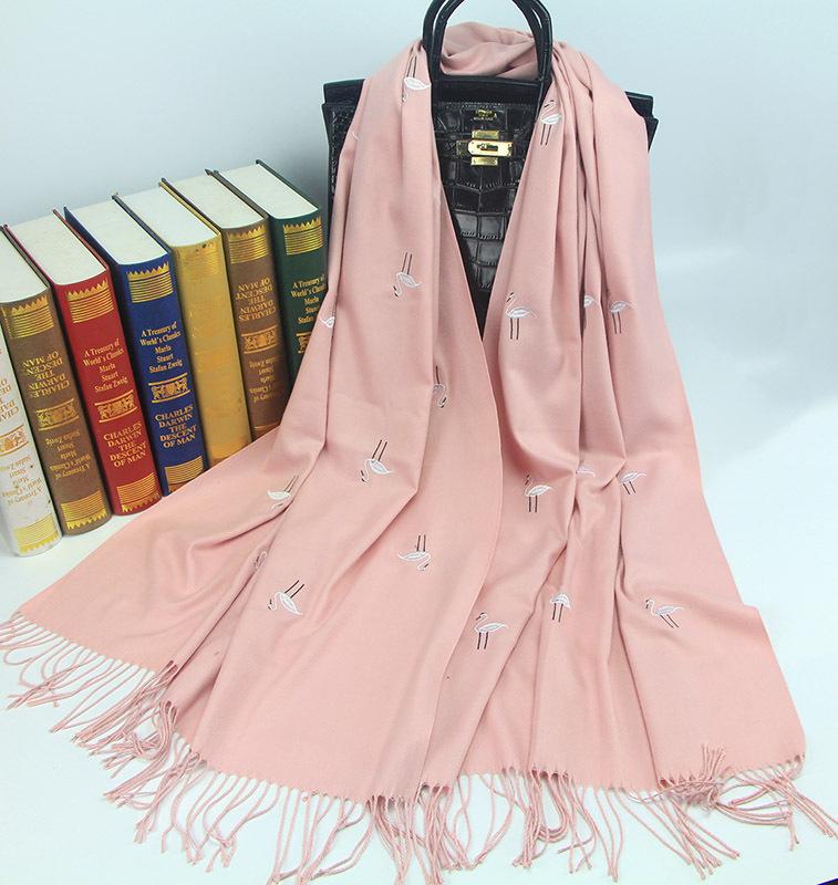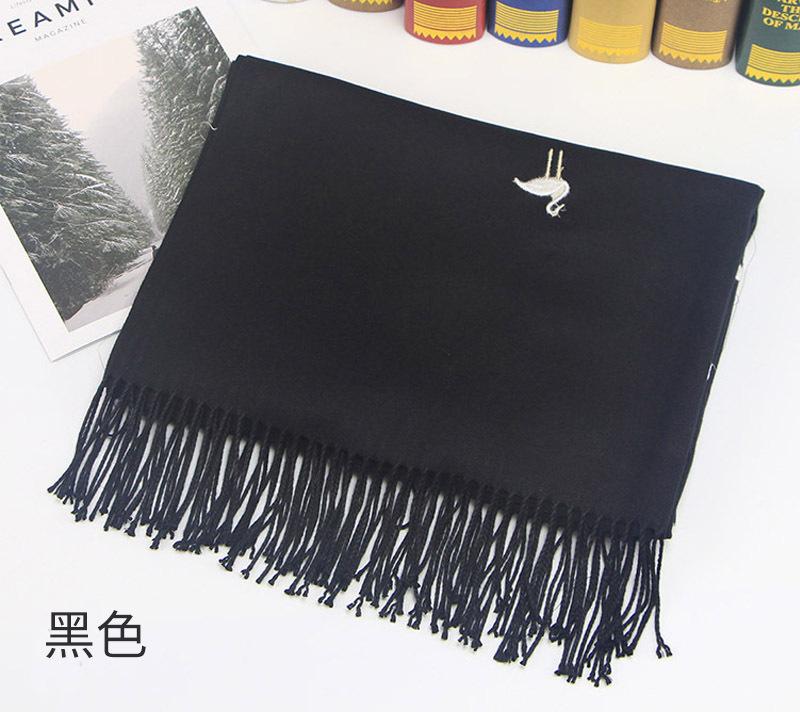 Bufanda de cachemira monocromática de otoño e invierno para mujer, bufanda con borlas gruesas y cálidas bordadas con cisne, chal de grúa, venta al por mayor