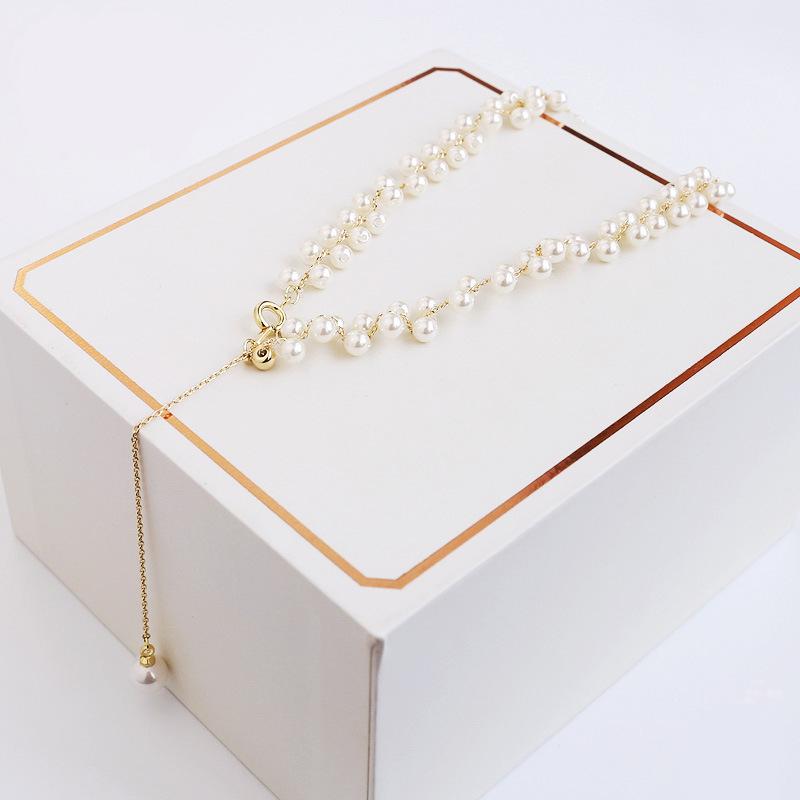 Nuevo collar de cadena con perlas de cristal de moda para mujer, elegante collar de clavícula corta estilo coreano, gargantilla de celebridad de Internet para mujer