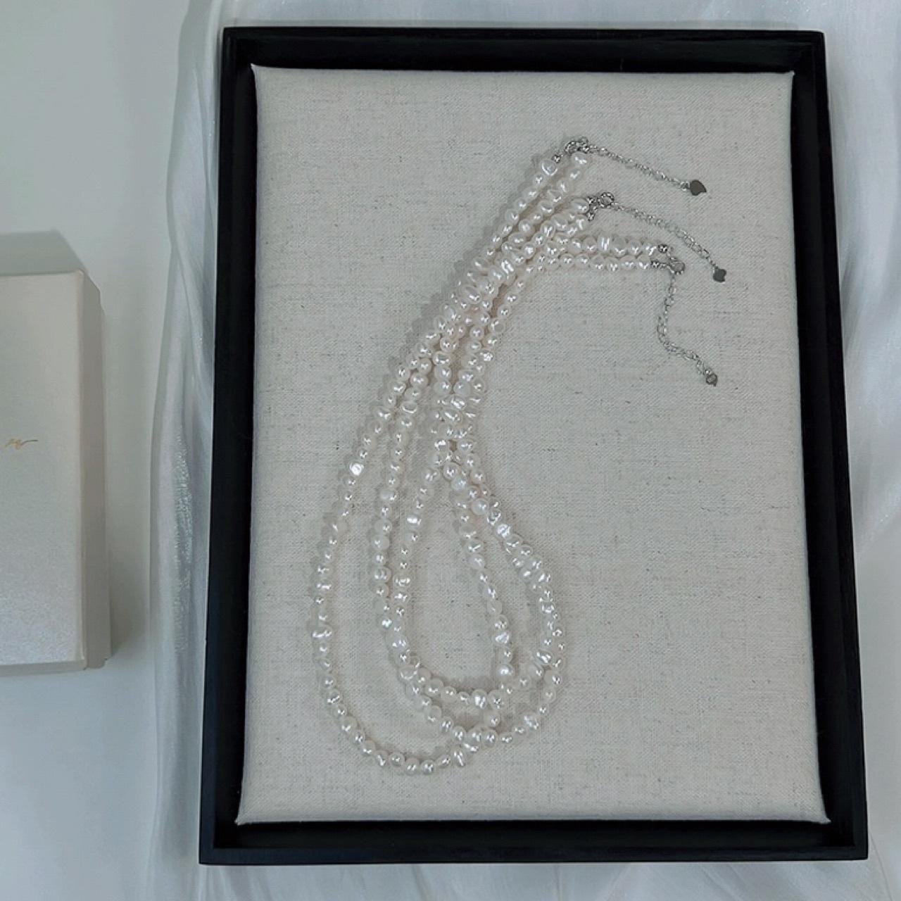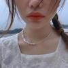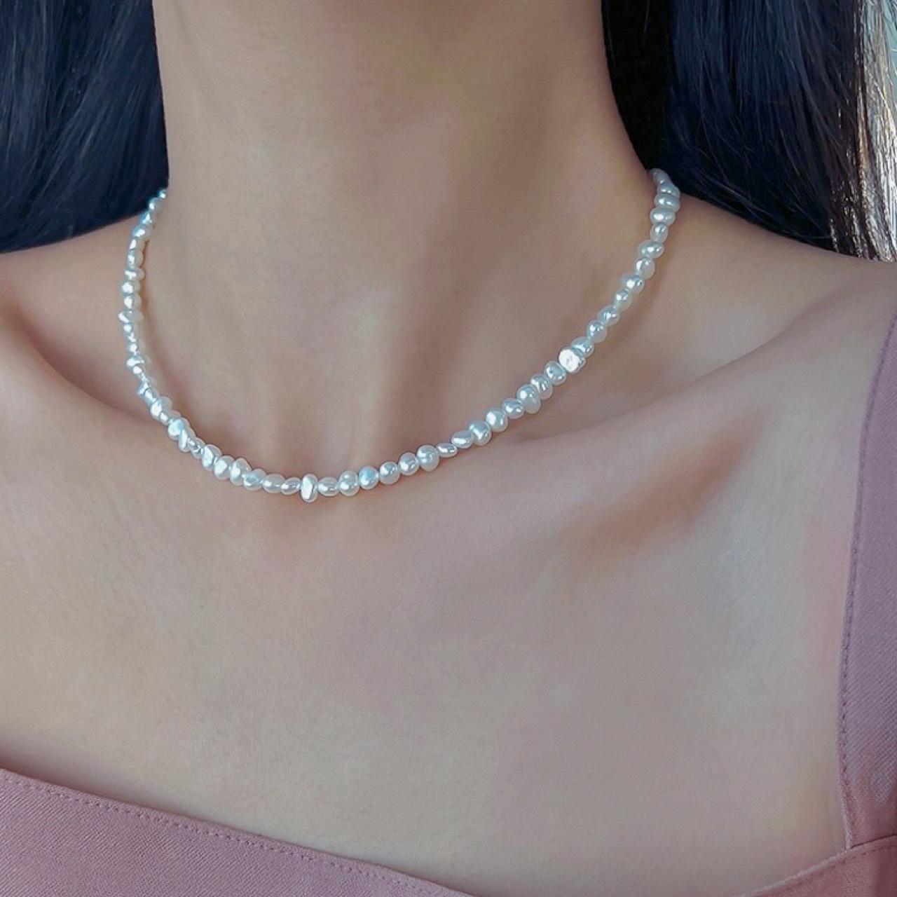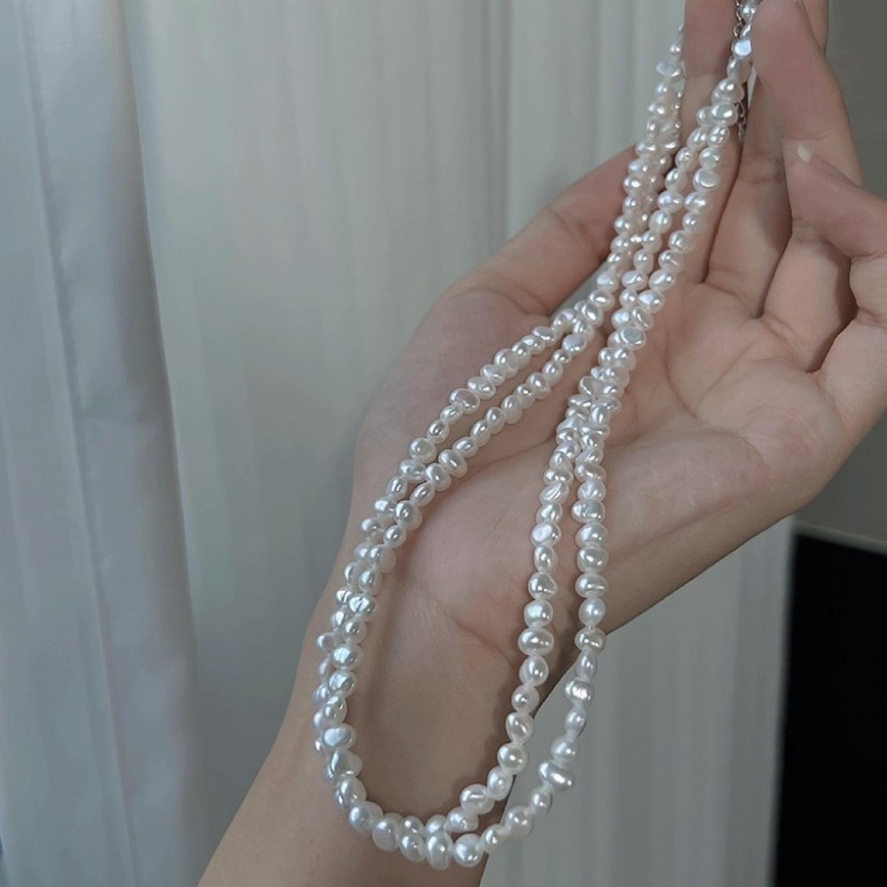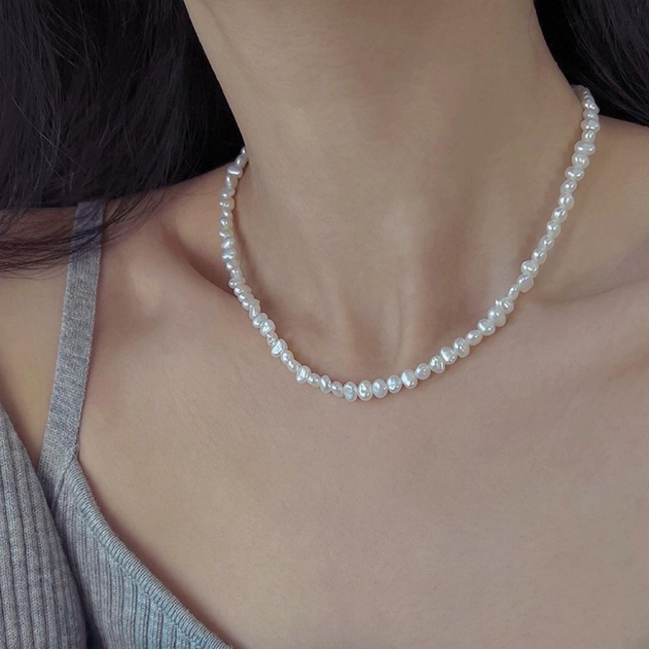 Collar de perlas de agua dulce barrocas de plata S925 con luz fuerte y roto, elegante cadena de clavícula irregular de celebridades de Internet para mujer